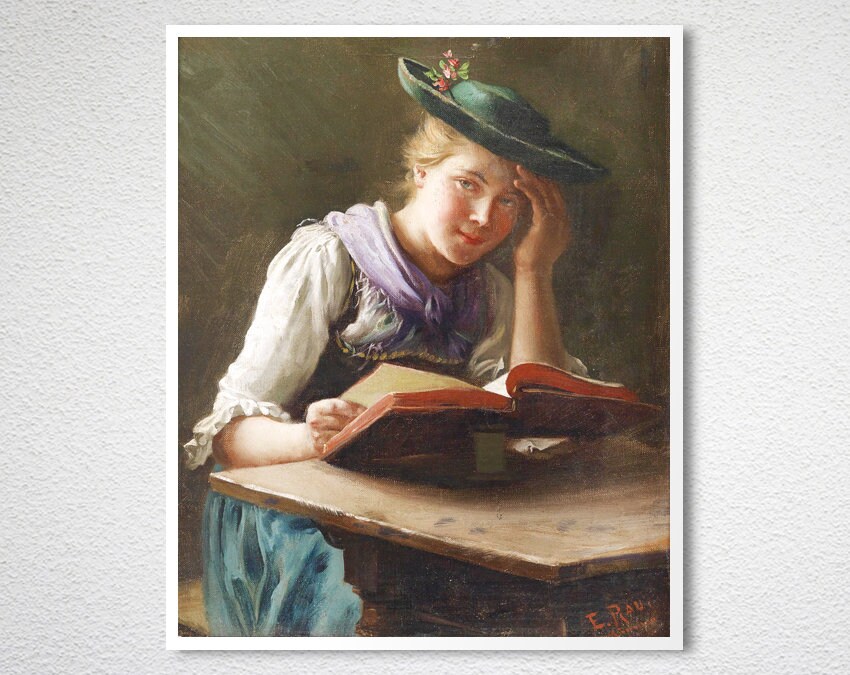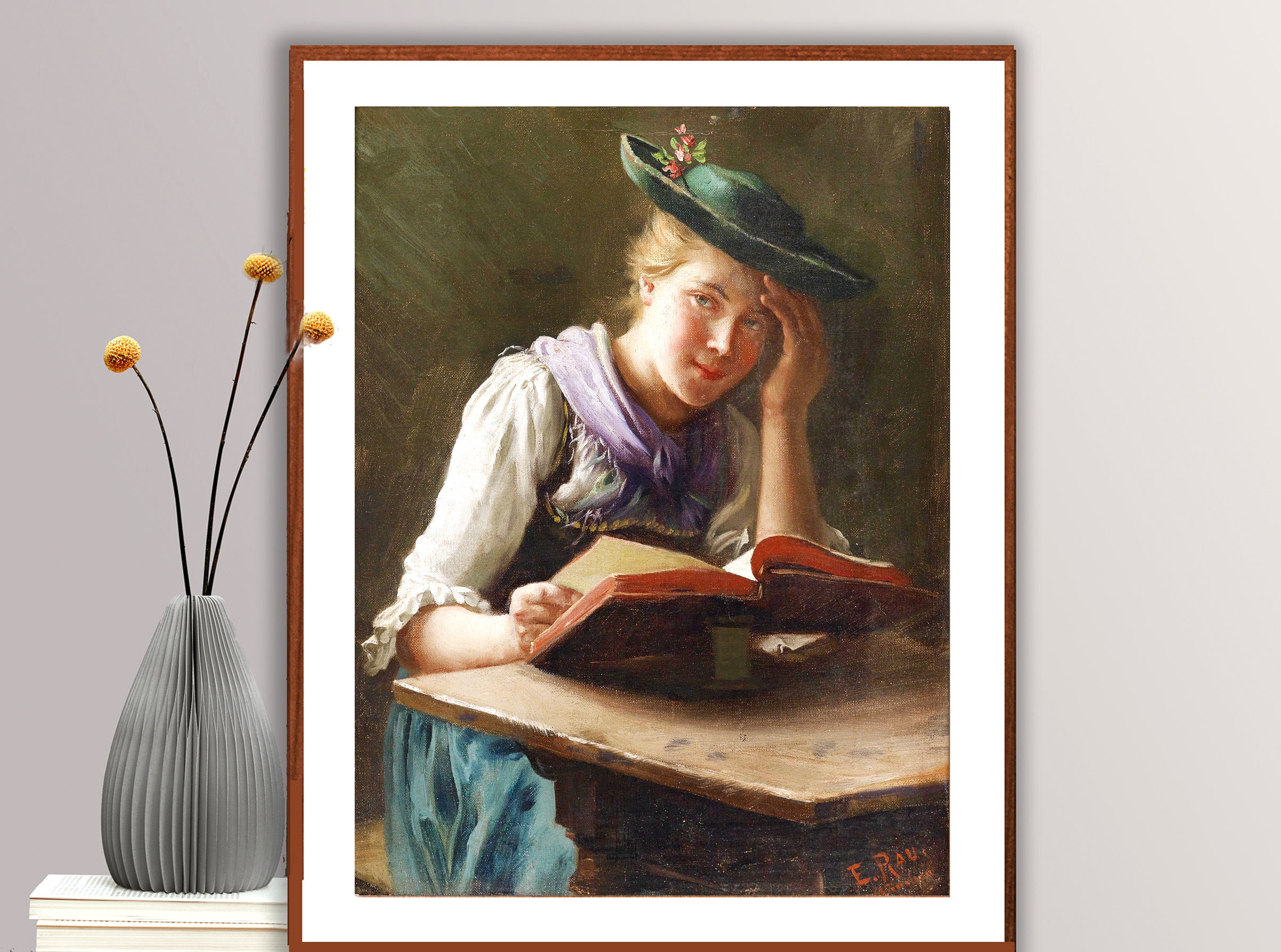 Girl Reading Art Print by Emil Karl Rau: Vintage Wall Decor