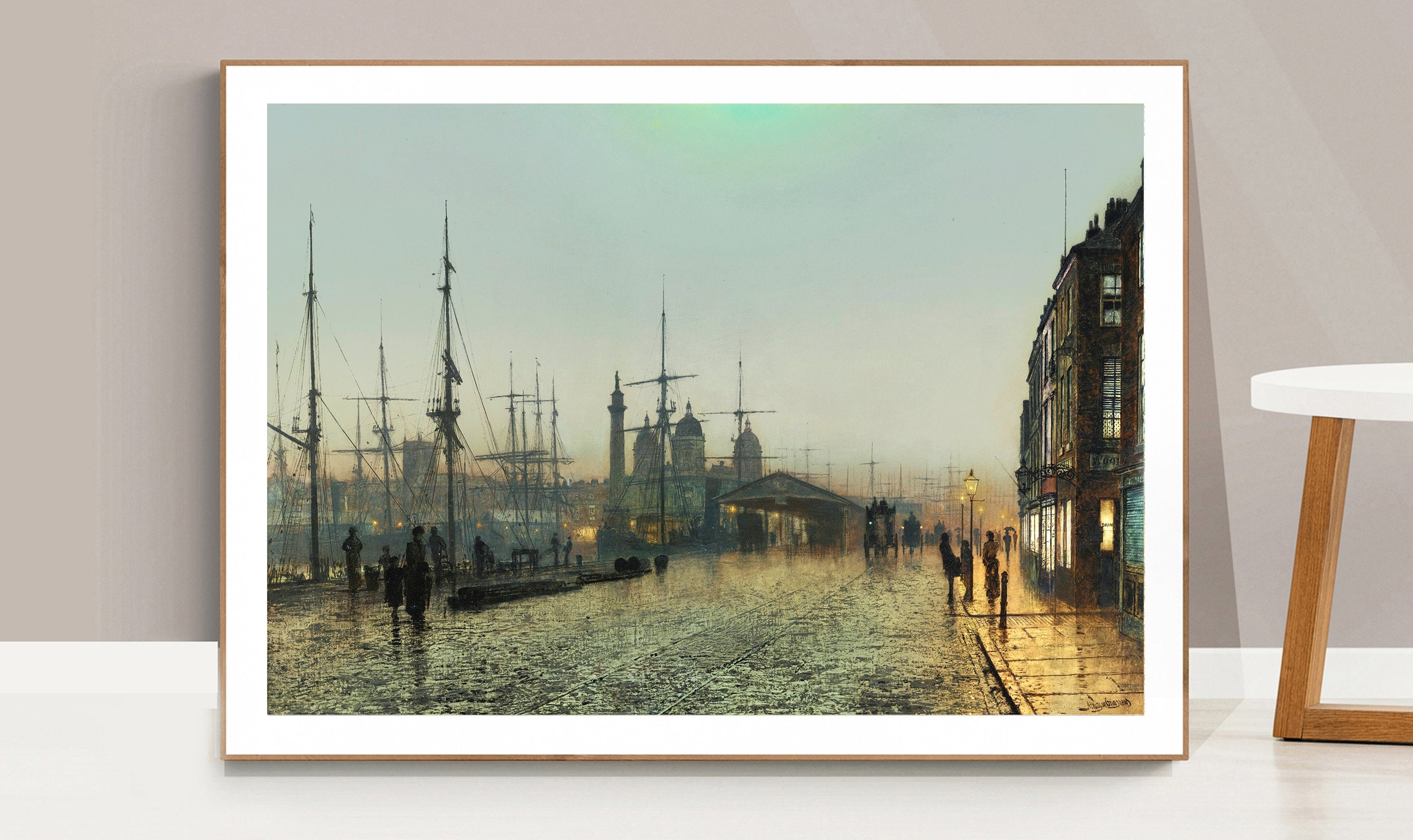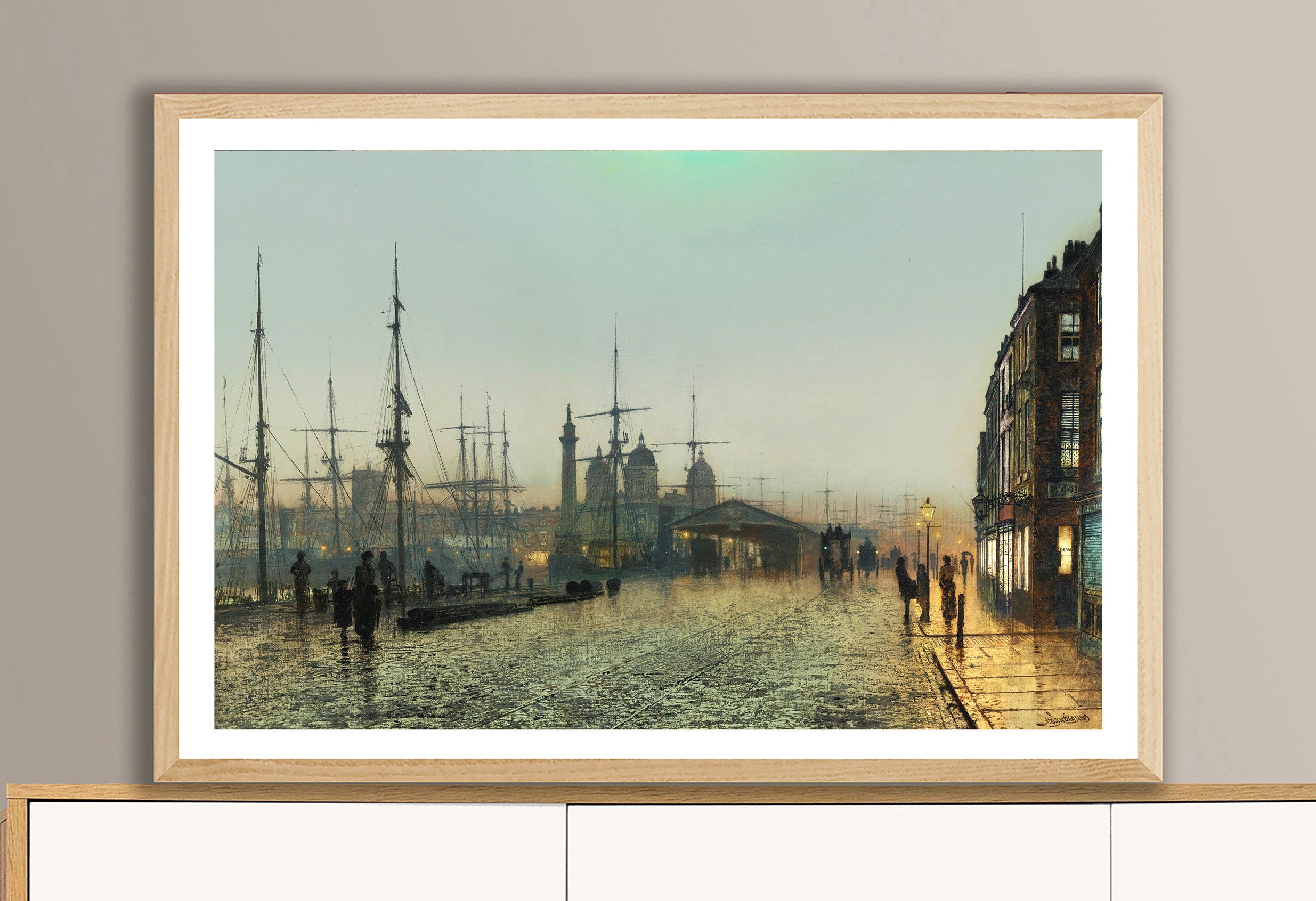 Hull Docks at Night by John Atkinson Grimshaw Fine Art Print - Poster Paper or Canvas Print