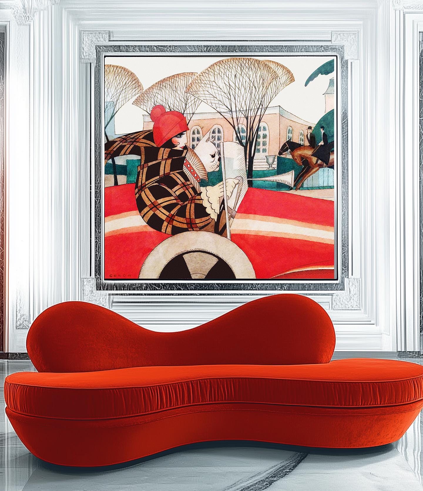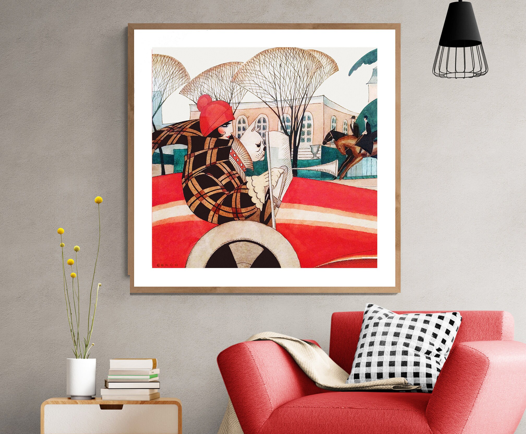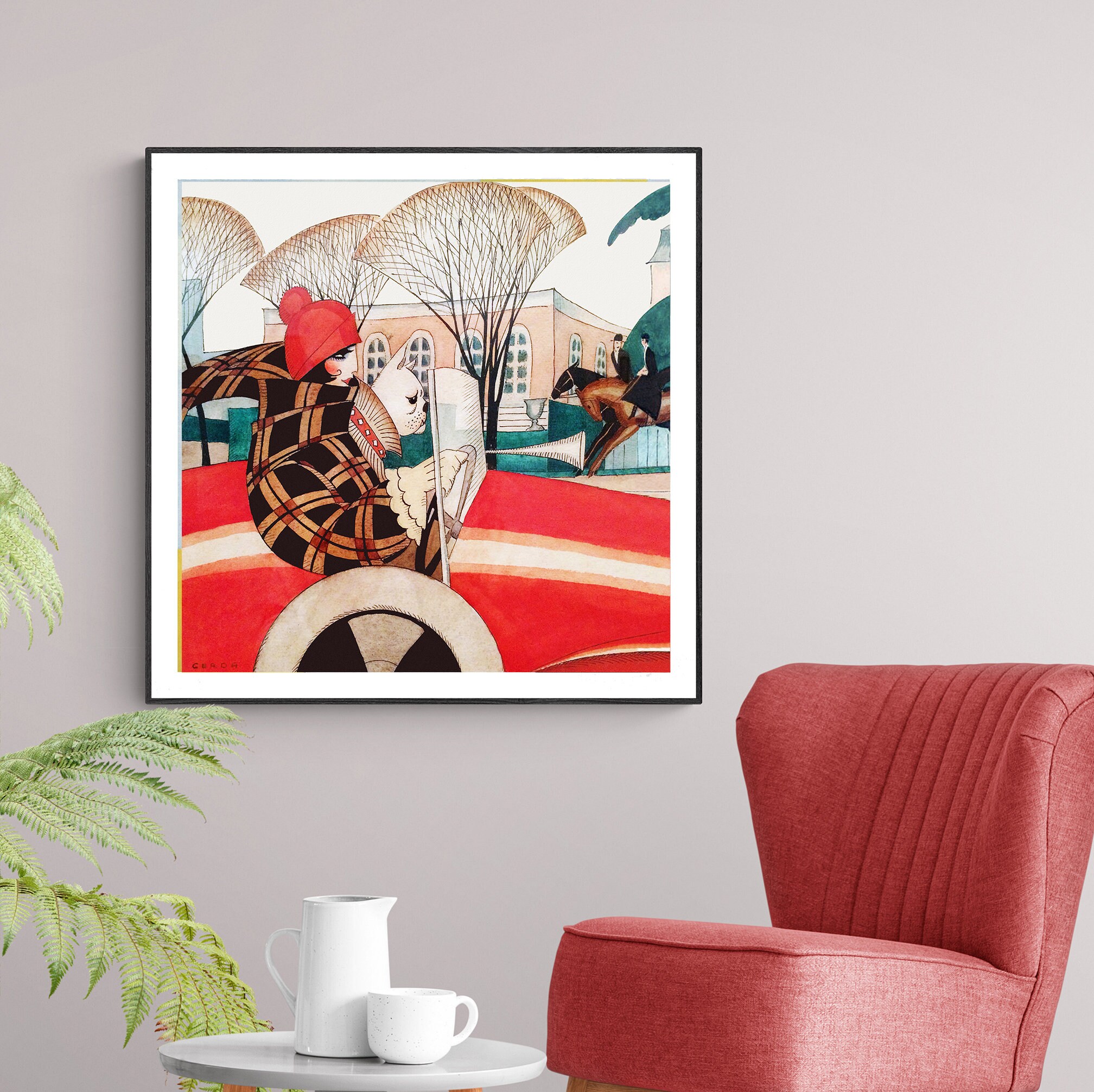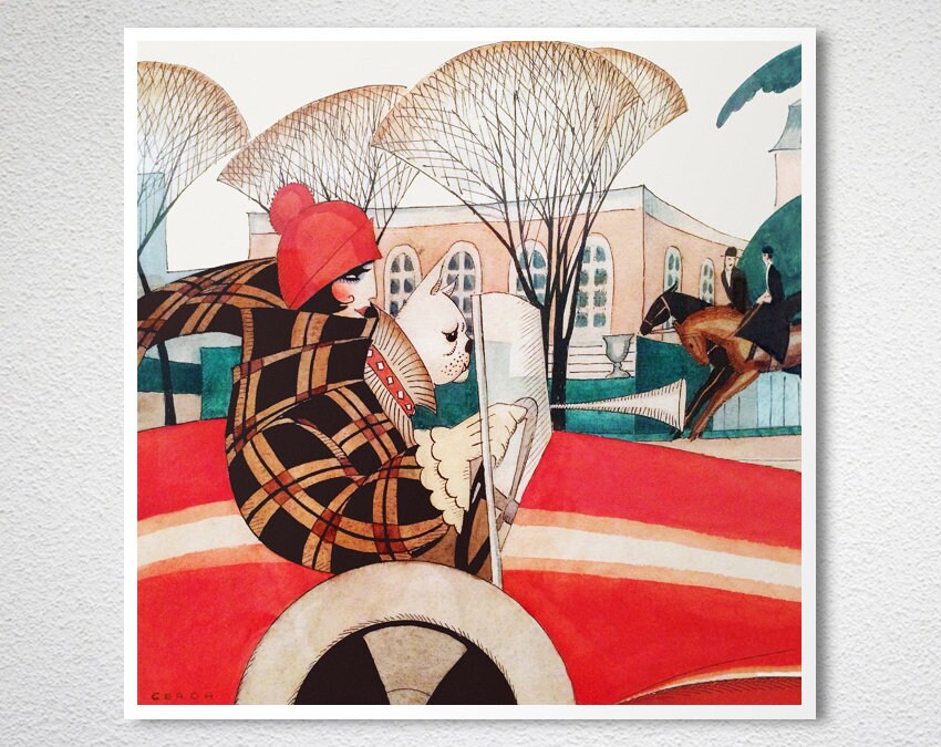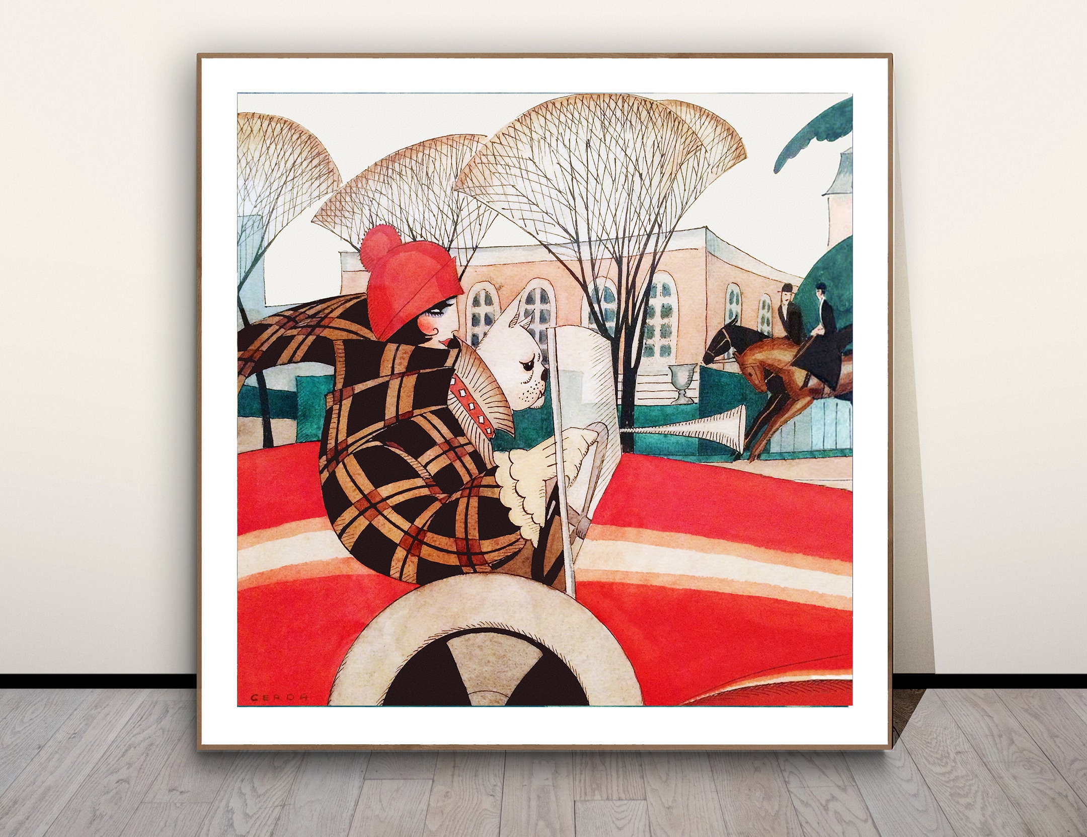 Girl and Pug in an Automobile by Gerda Wegener Fine Art Print - Poster Paper or Canvas Print