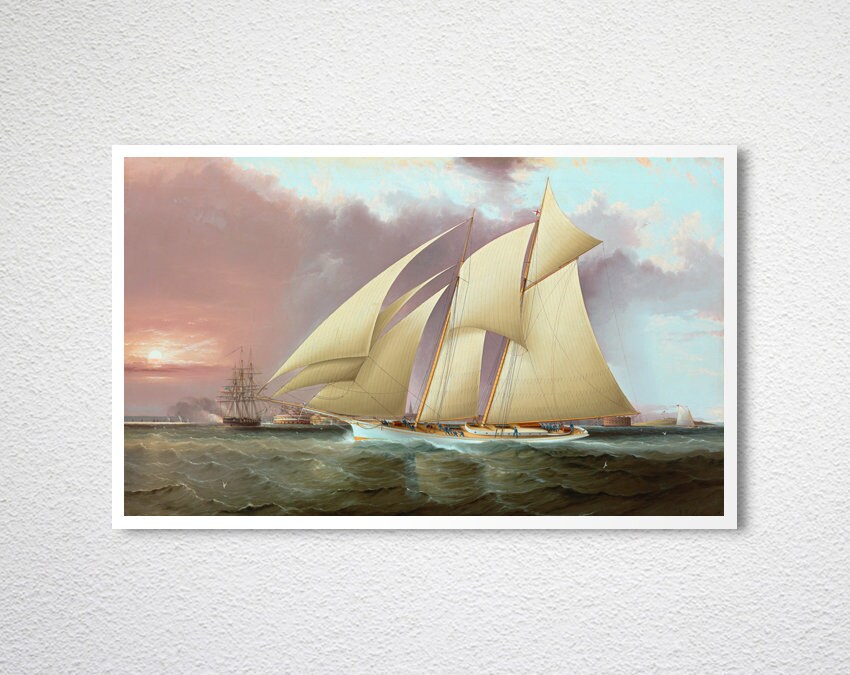 The Yacht Magic Defending America's Cup by James Edward Buttersworth Fine Art Print - Poster Paper or Canvas Print / Gift Idea