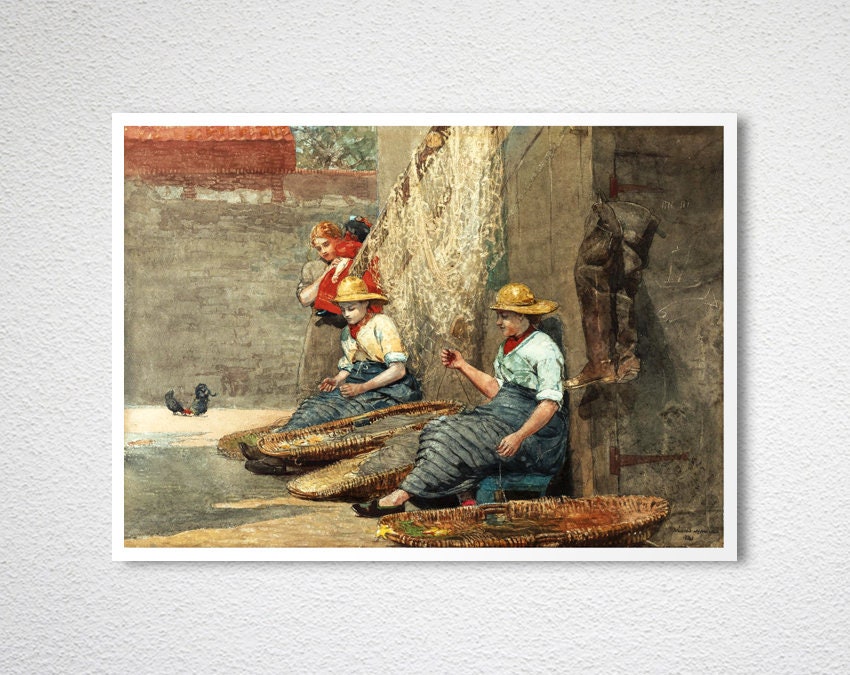 Fishergirls Coiling Tackle by Winslow Homer Fine Art Print - Poster Paper or Canvas Print