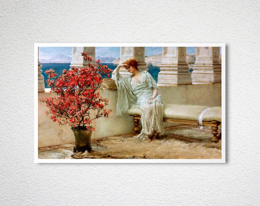 Her Eyes are with Her Thoughts and They are Far Away by Sir Lawrence Alma Tadema Fine Art Print - Poster Paper or Canvas Print