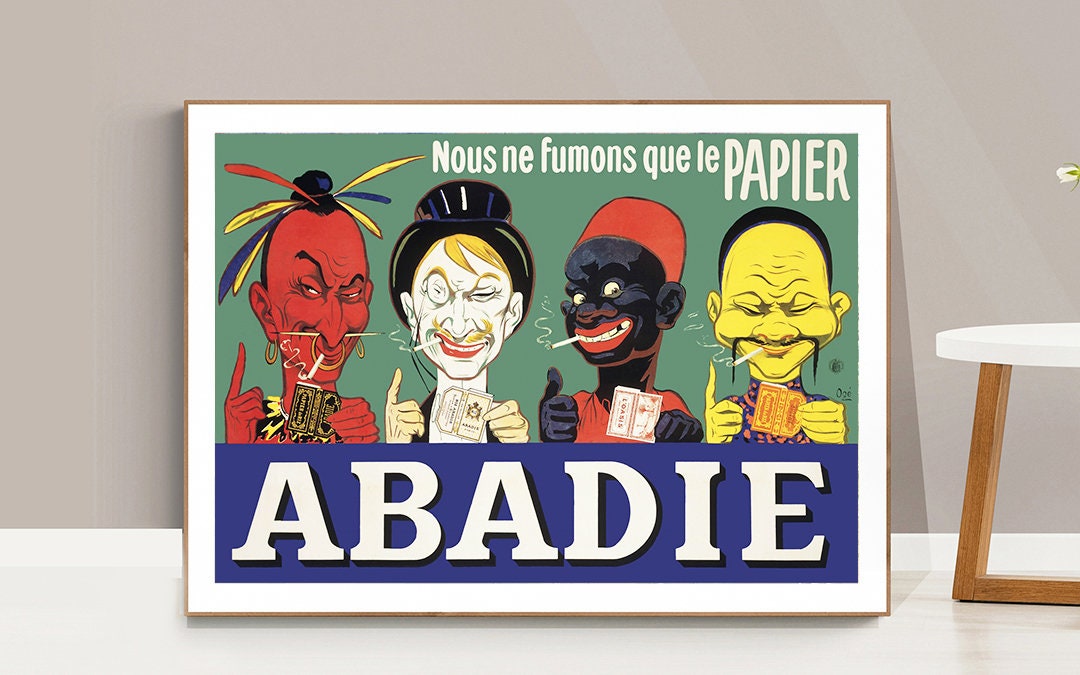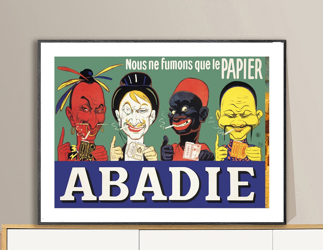 Vintage Abadie Papier a Cigarettes Advertisement Art Print - Reproduction of a Retro Artwork, Decorative Purposes Wall Decor - Poster Paper or Canvas Print