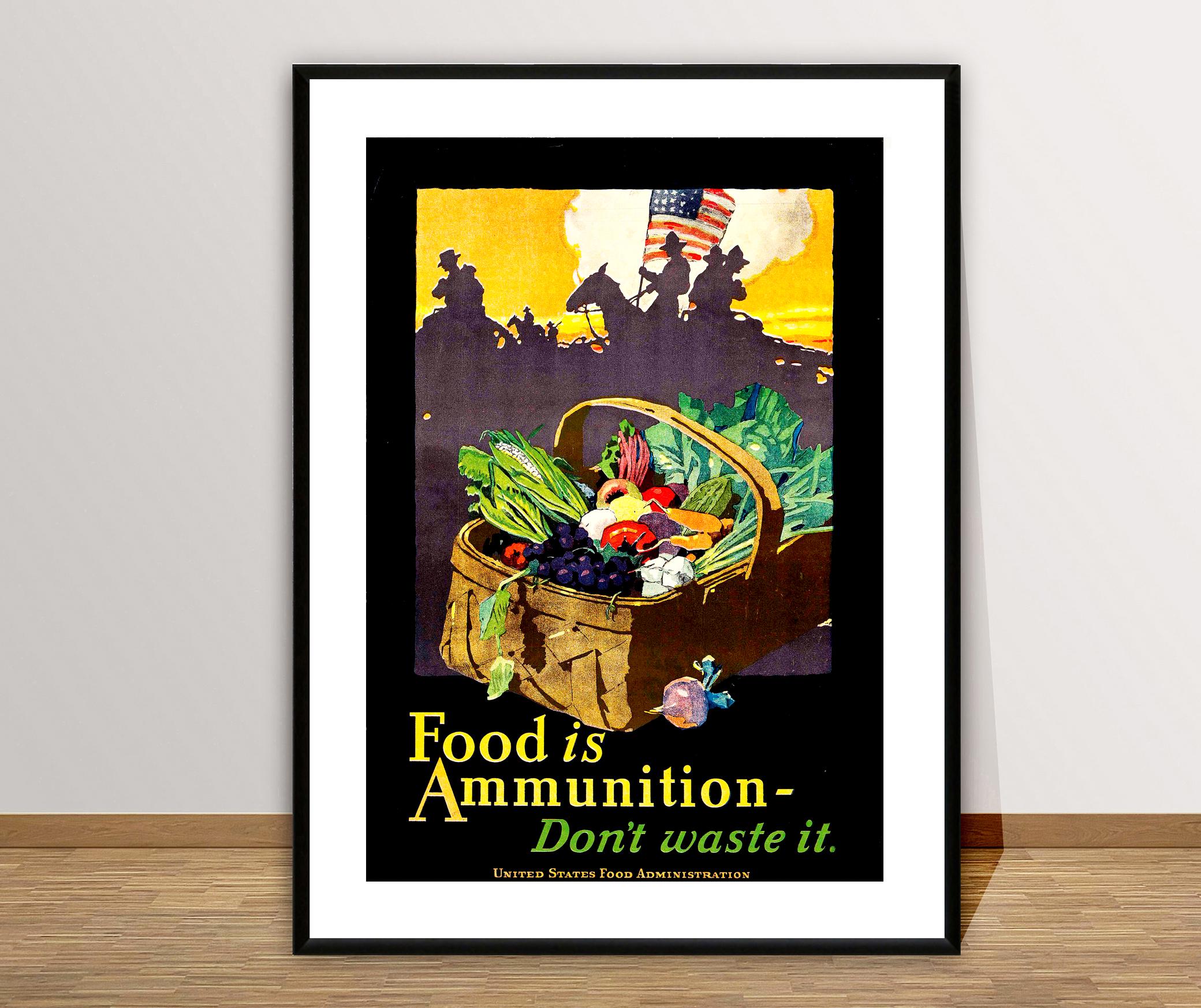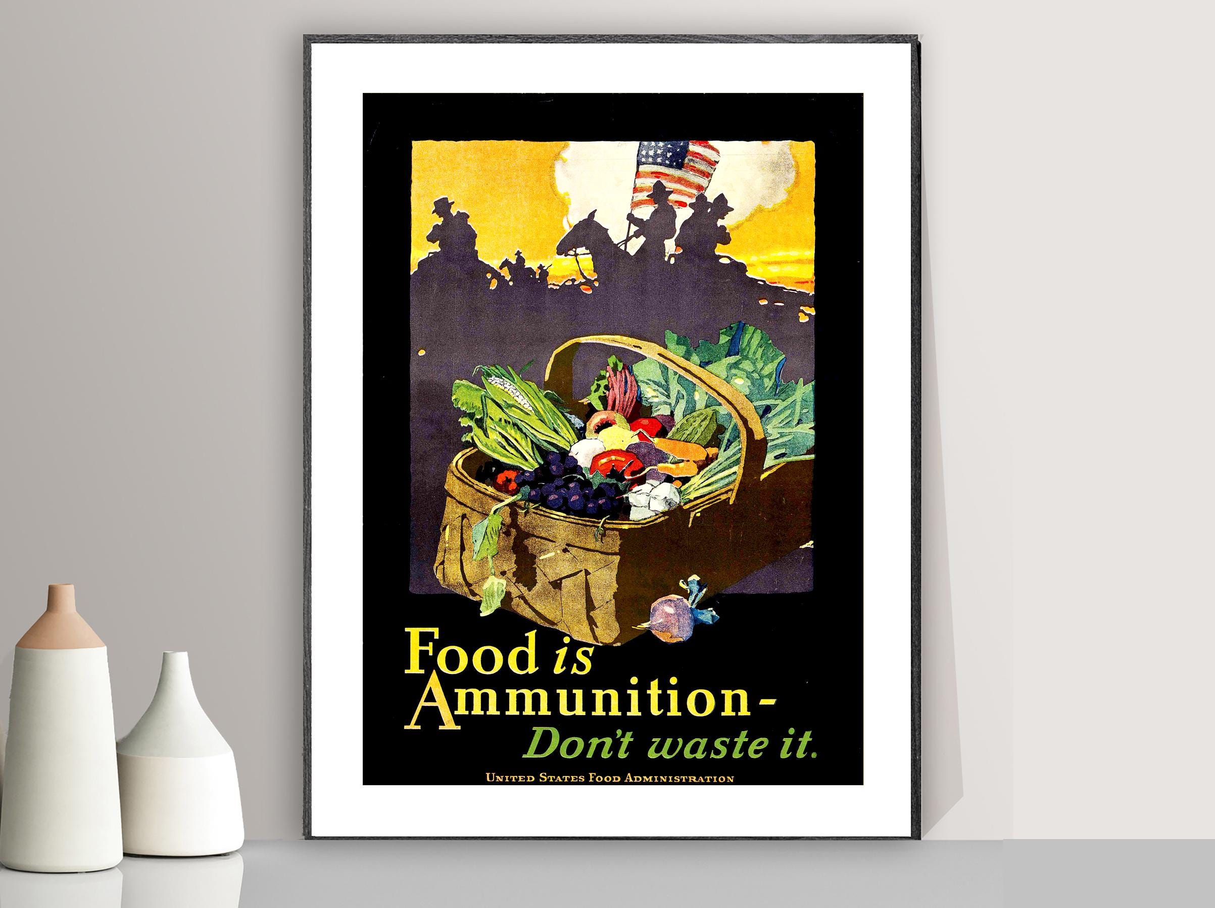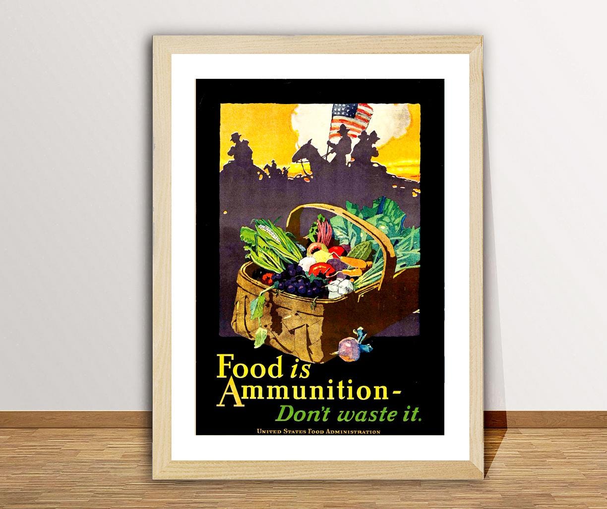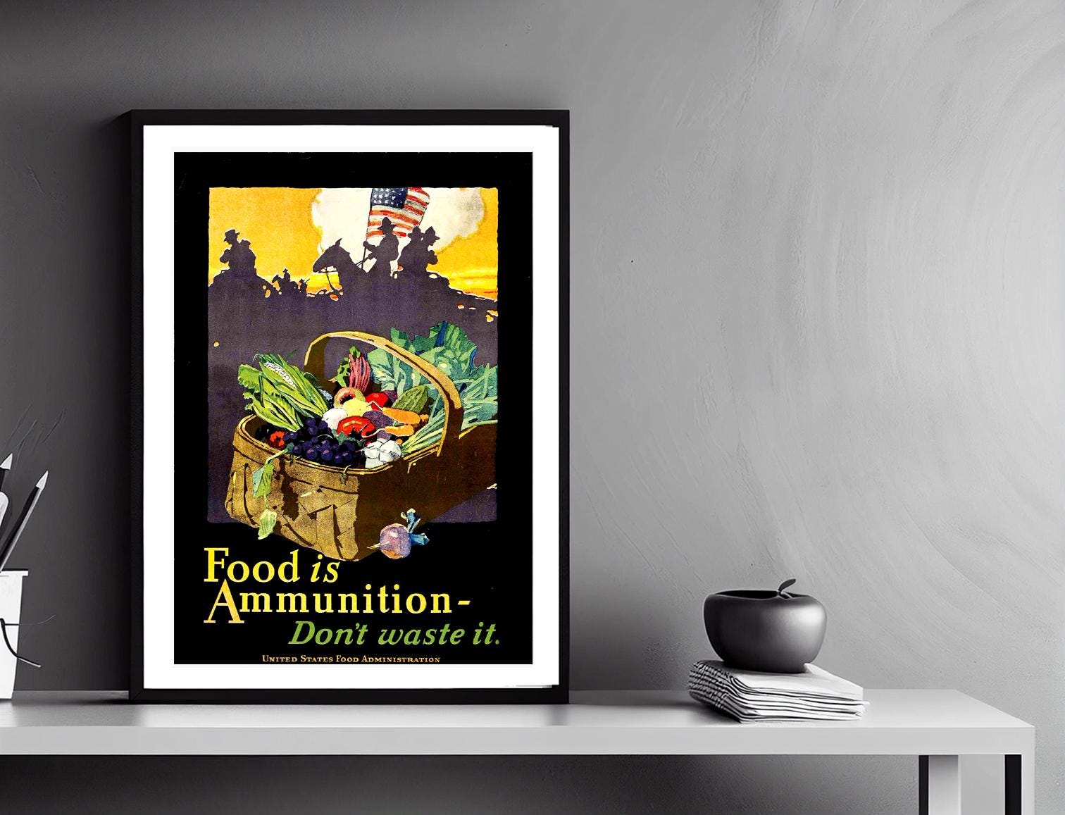 Food is Ammunition, Don't Waste It, Vintage Print, Motivational Artwork, WPA Painting, Café Wall Décor, Retro Wall Art