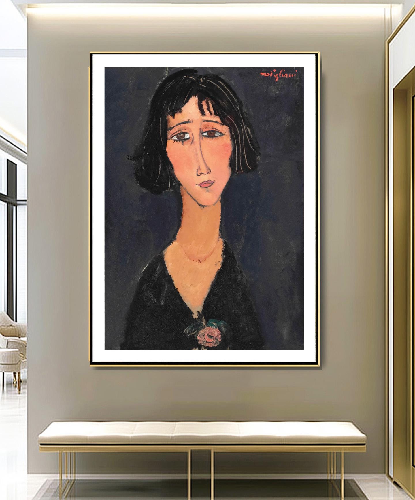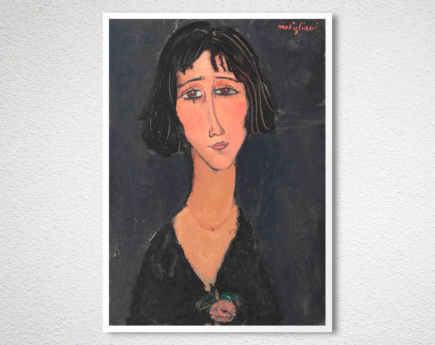 Young Woman with Rose by Amedeo Modigliani Fine Art Print - Poster Paper or Canvas Print / Gift Idea / Wall Decor