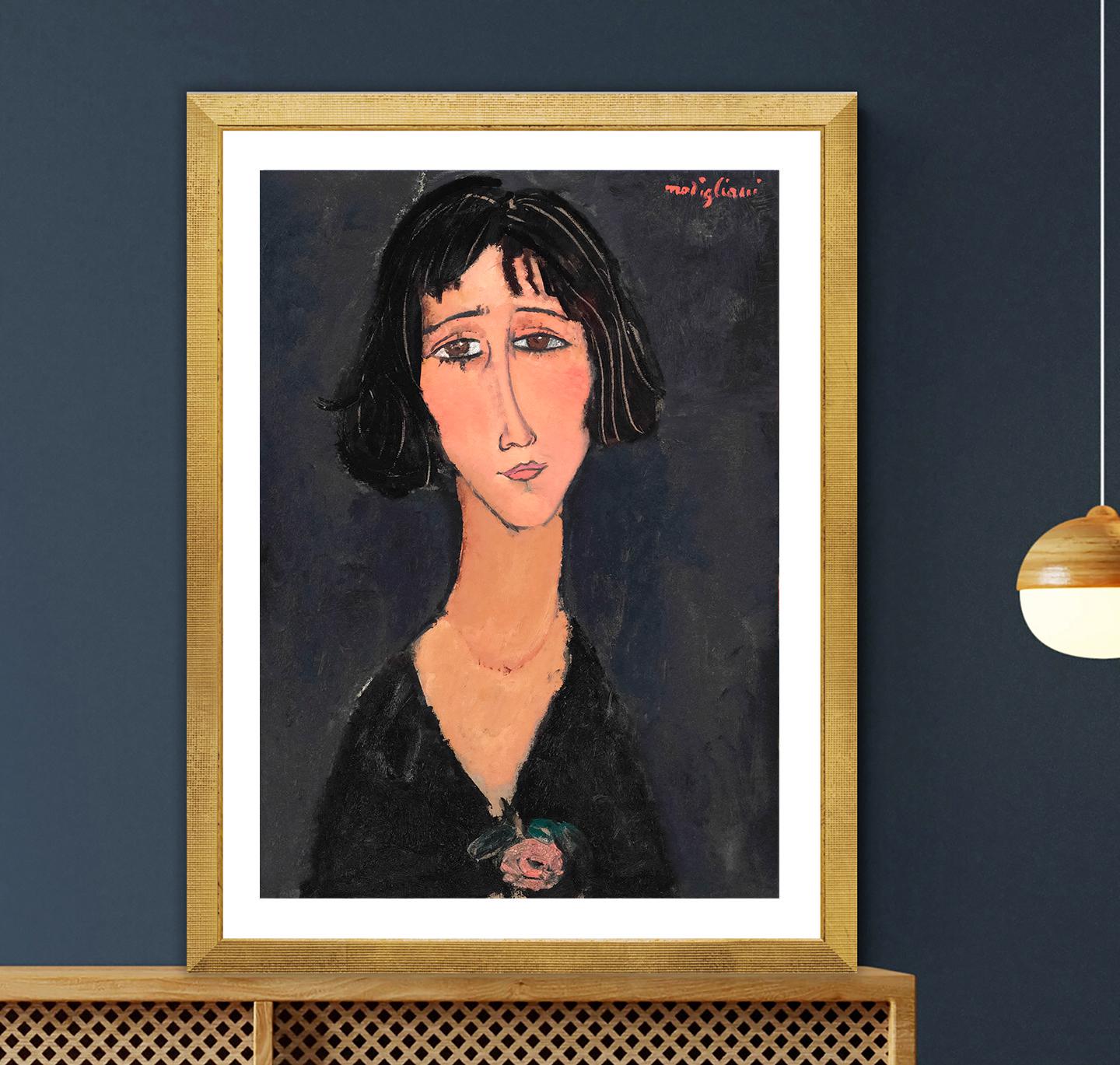 Modigliani Woman with Rose Fine Art Print: Figurative Painting