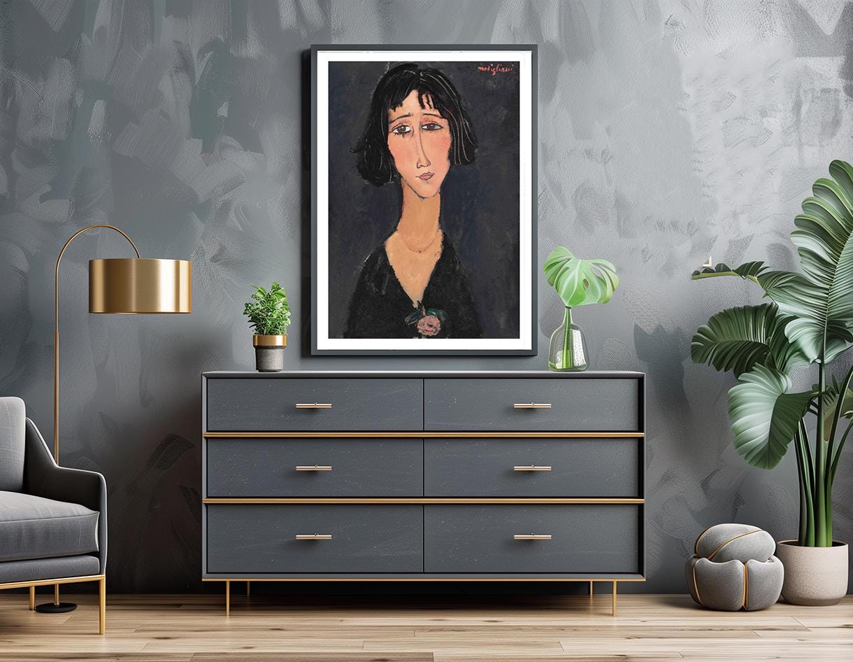 GICLEE printed on high quality paper, cotton canvas or adhesive sticker paper. A high quality reproduction of painting by Amedeo Modigliani. Professional packaging for safe shipping. All images (dimensions) include a white border. (The white border can be removed. Please write a note when ordering.)