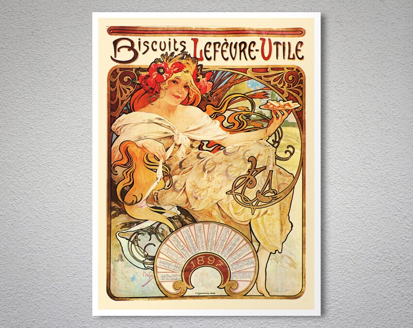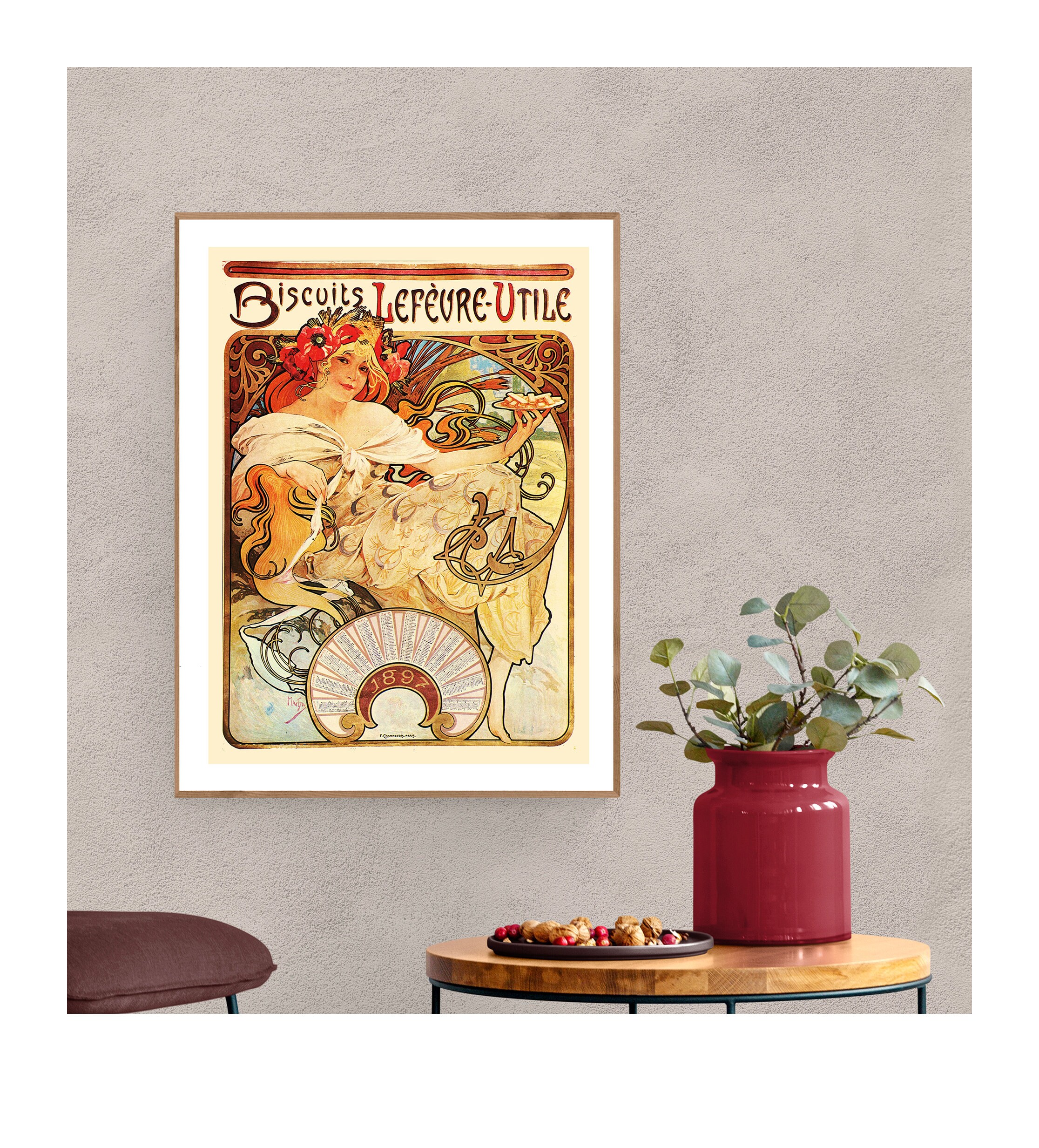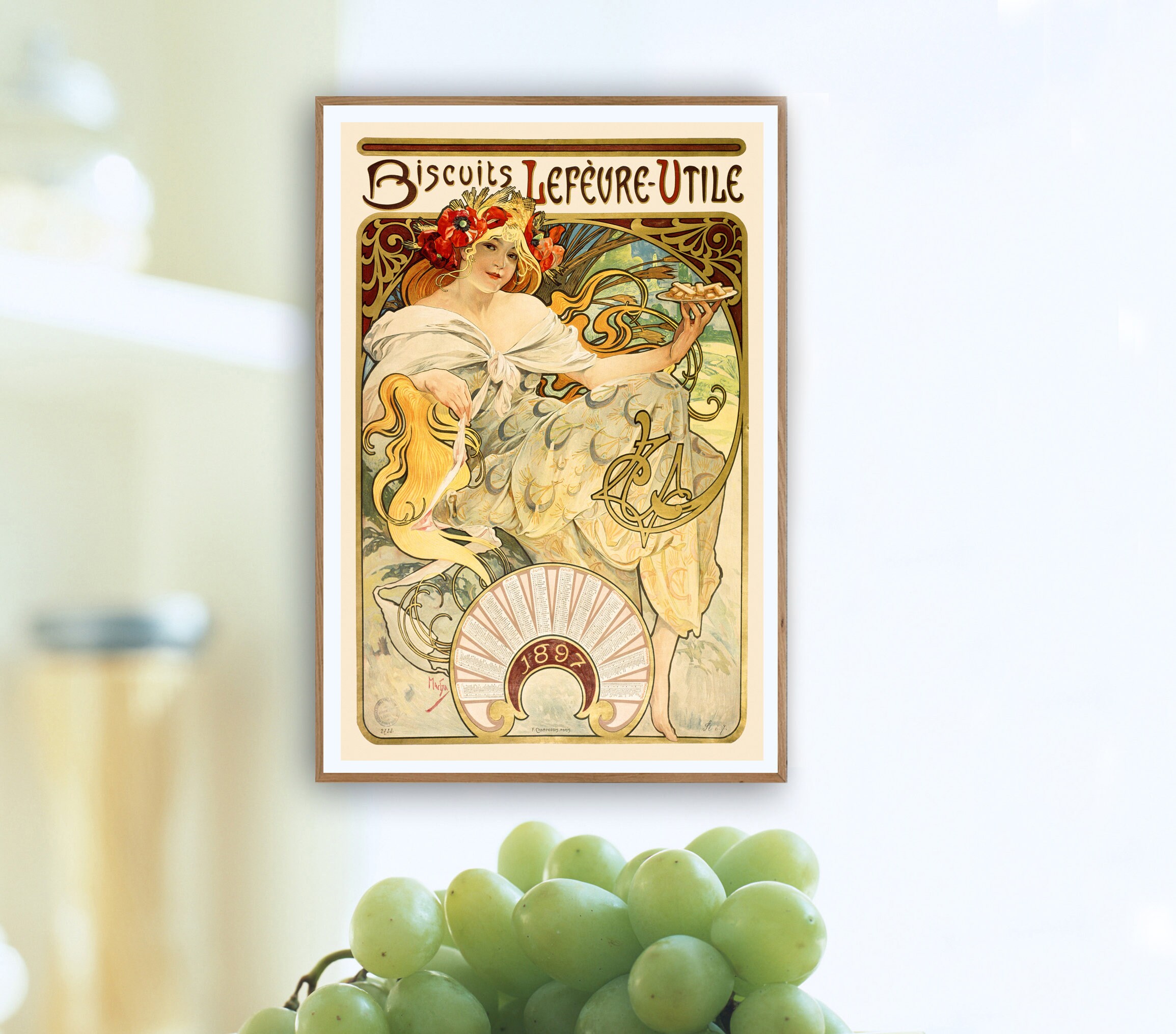 Biscuits Lefevre Utile Food&Drink Poster by Alphonse Mucha - Poster Paper, Canvas Print / Gift Idea / Wall Decor