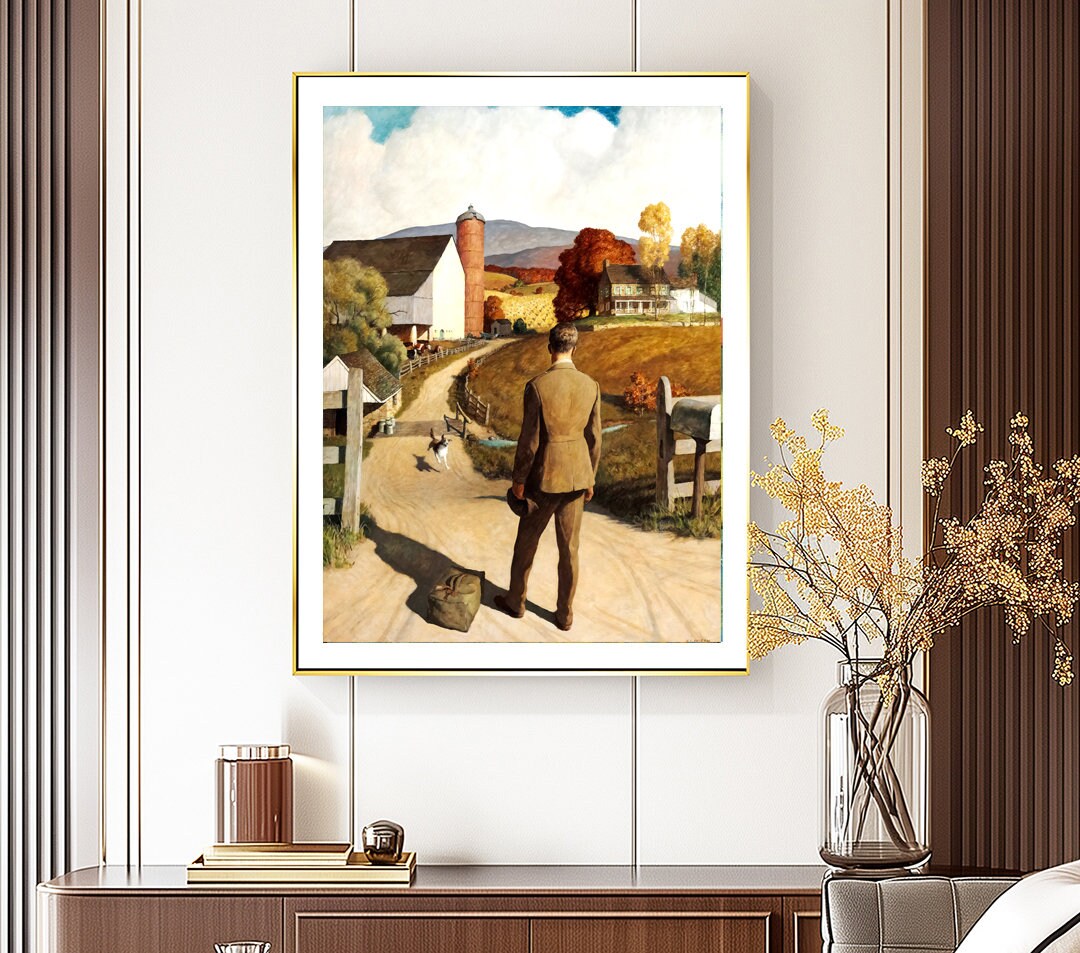 Printed on high quality paper, cotton canvas or adhesive sticker paper. A high quality reproduction of painting by Newell Convers Wyeth. Professional packaging for safe shipping. Natural white border will be added to the image for mounting and framing.