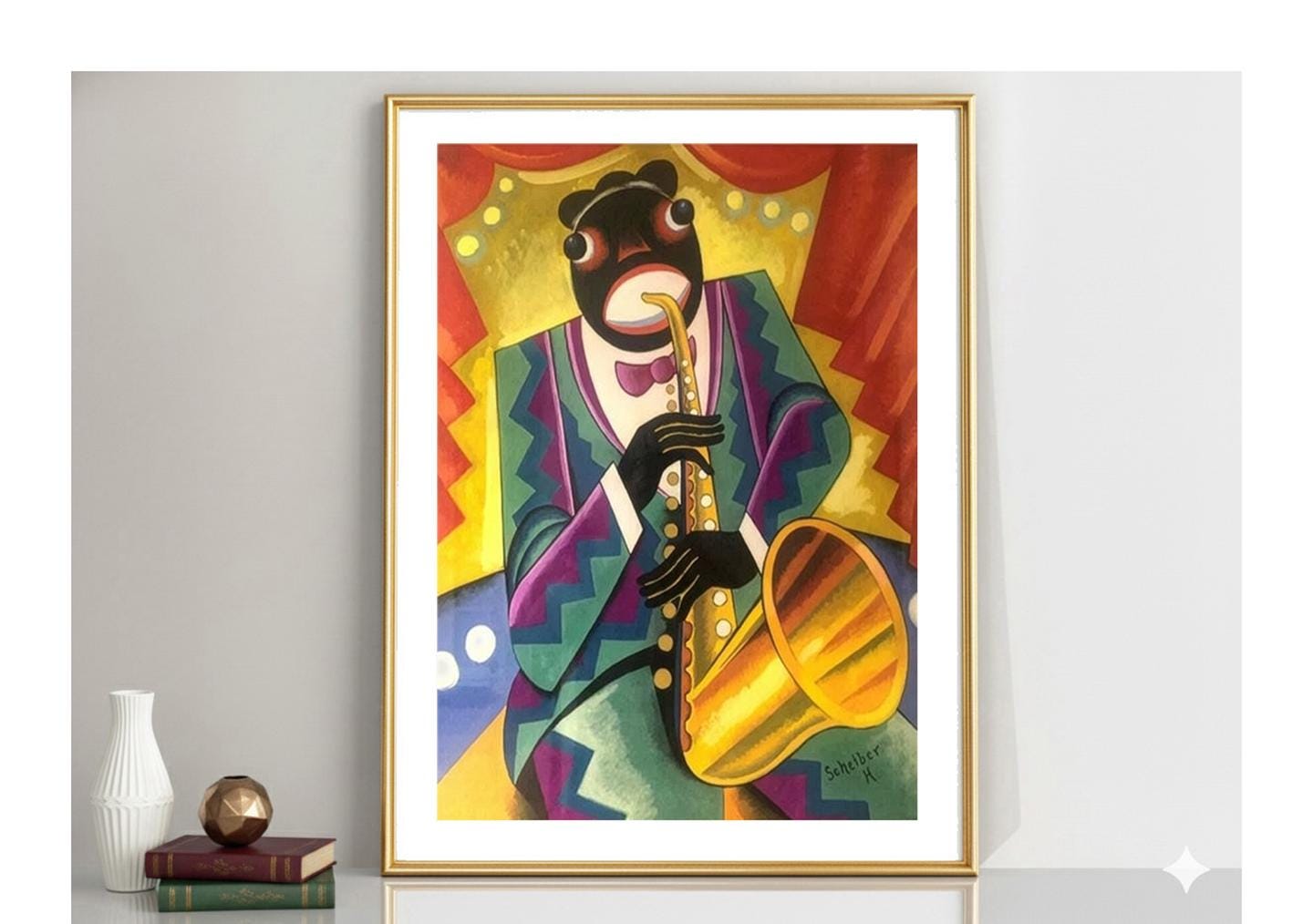 Jazz Saxophone Player by Hugo Scheiber Art Print - Poster Paper or Canvas Print / Gift Idea / Wall Decor
