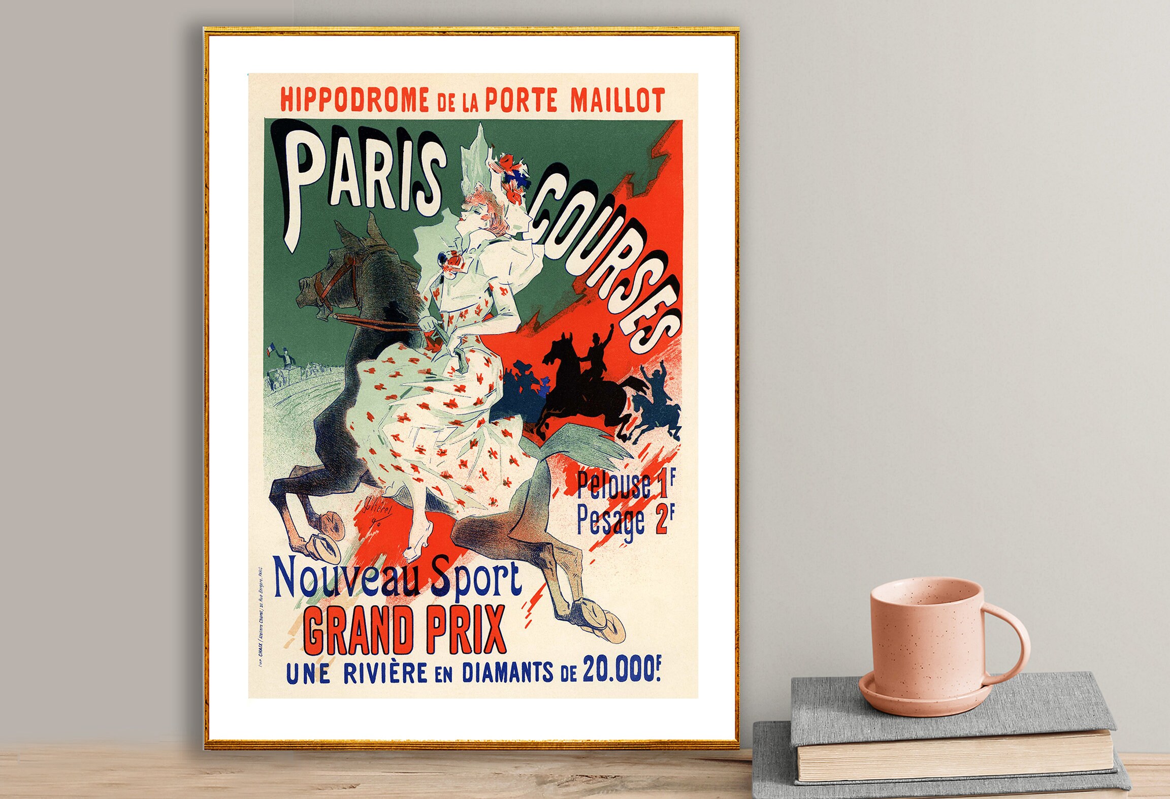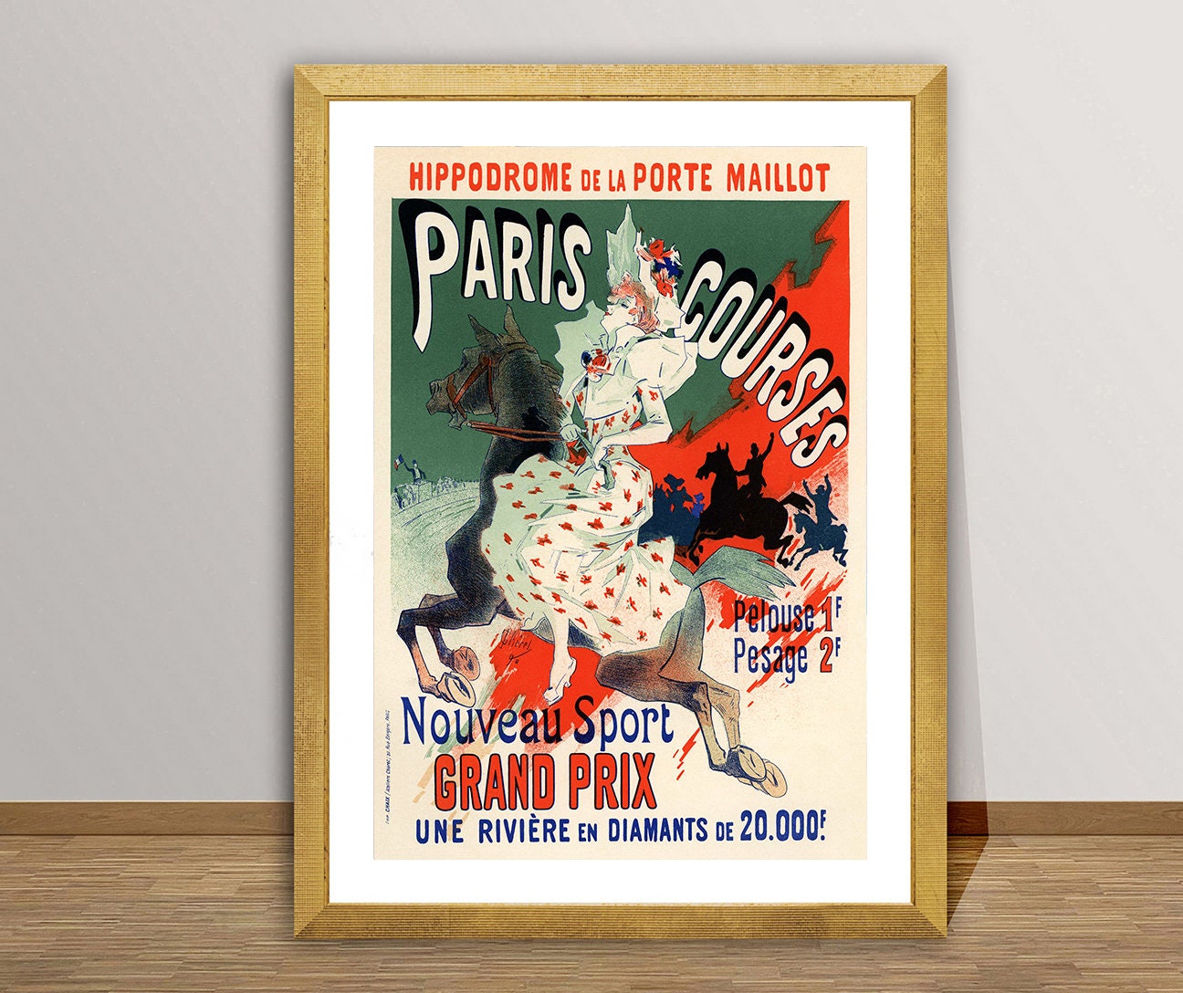 Paris Courses Nouveau Sport Grand Prix Vintage Poster by Jules Cheret - Poster Paper or Canvas Print