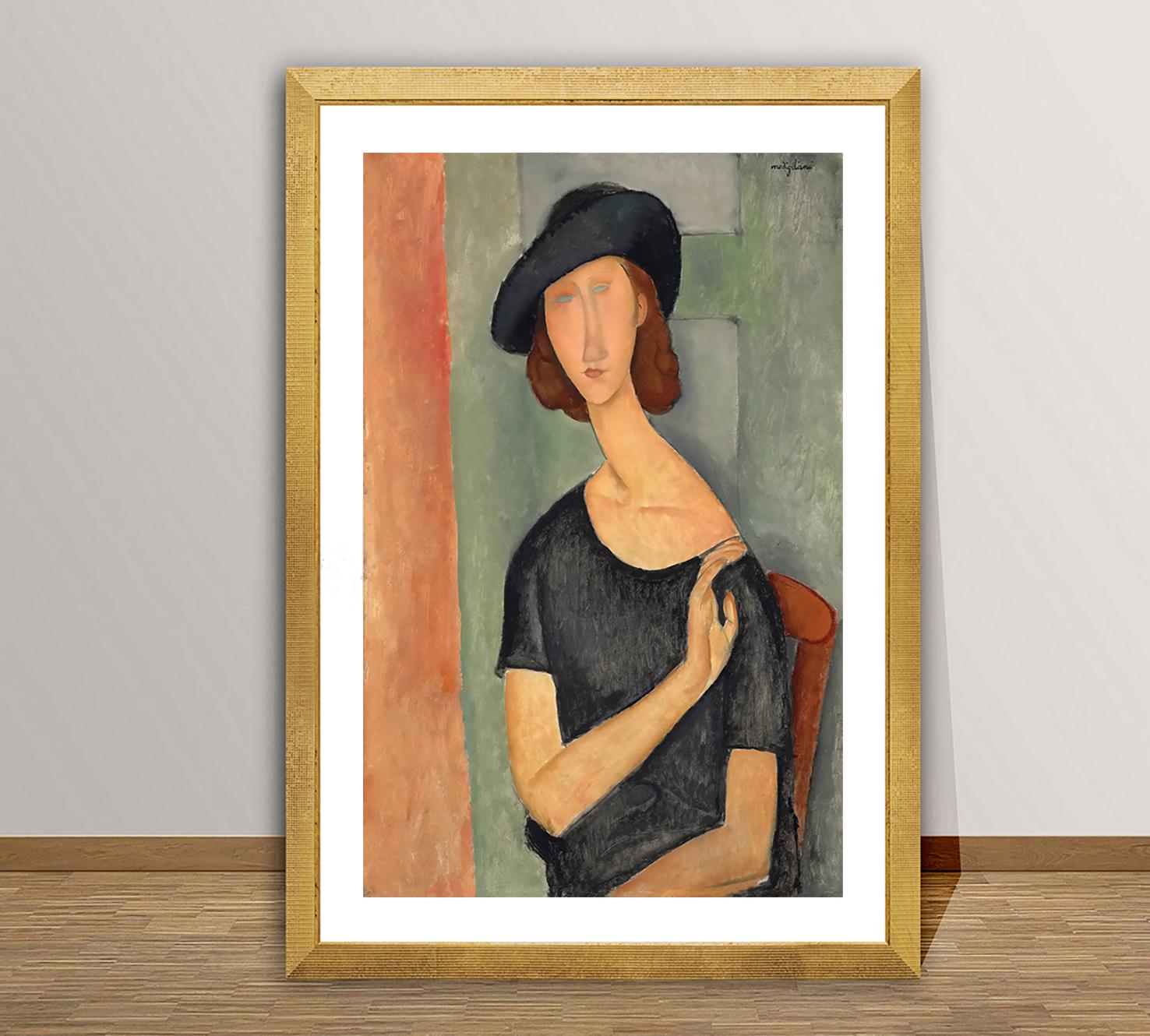 Jeanne Hebuterne (Au Chapeau) by Amedeo Modigliani - Poster Paper or Canvas Print