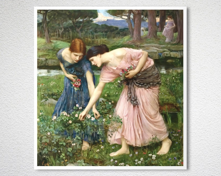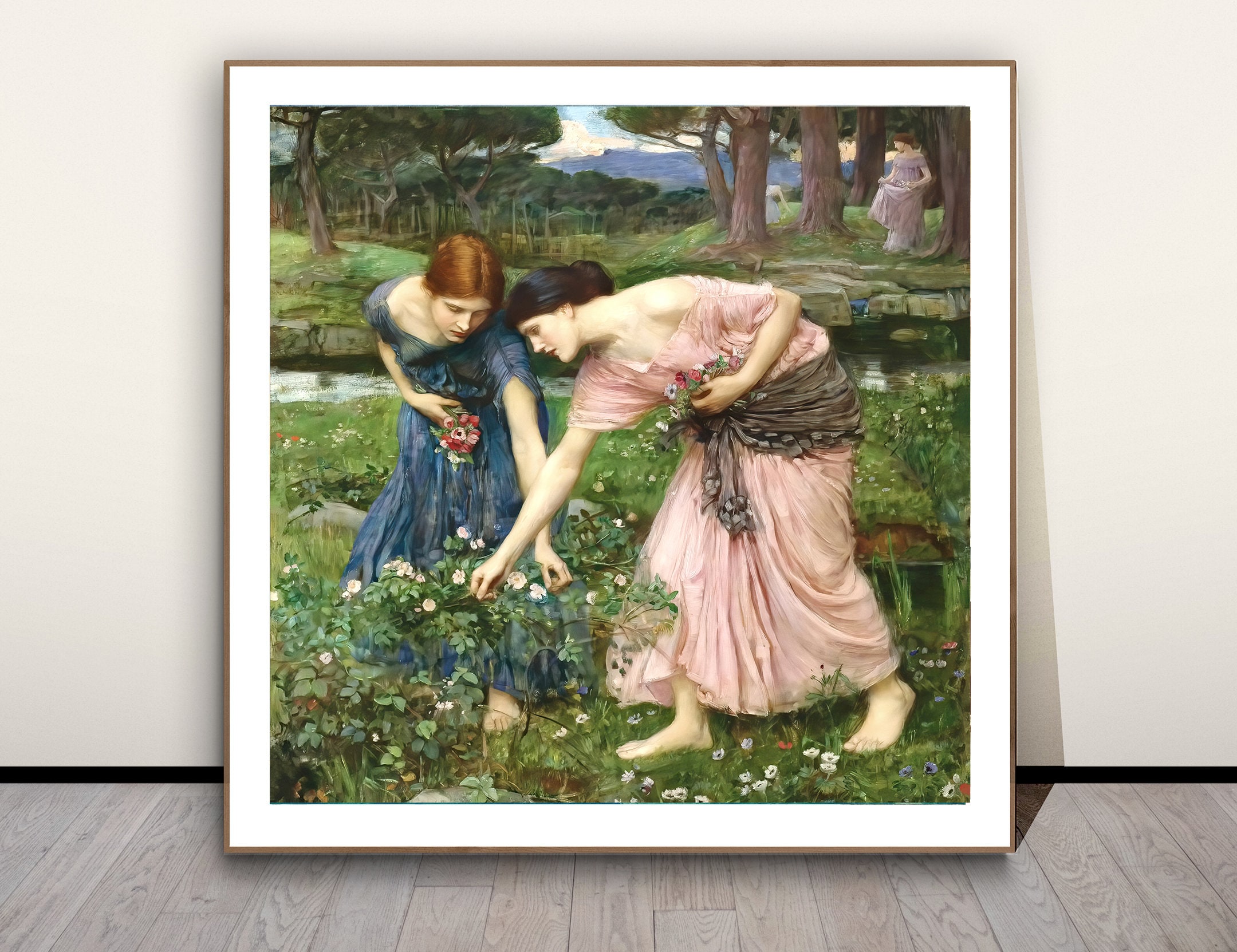 Waterhouse 'Gather Ye Rosebuds' Fine Art Print: Pre-Raphaelite Landscape