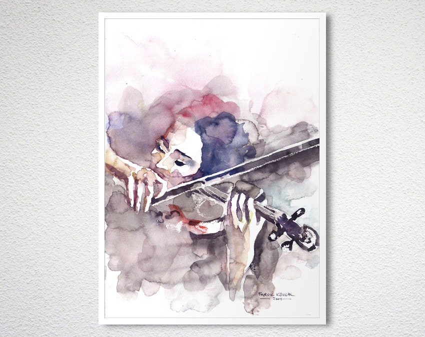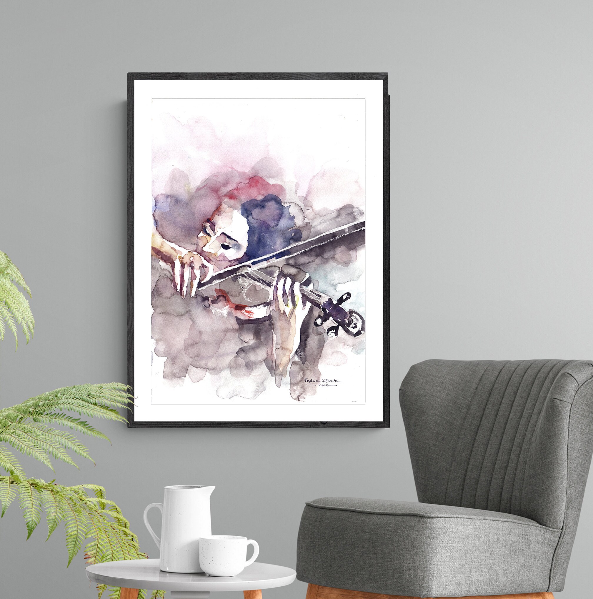 Violin Prelude Watercolor (Aquarell) Painting by Faruk Koksal Fine Art Print - Poster Paper or Canvas Print