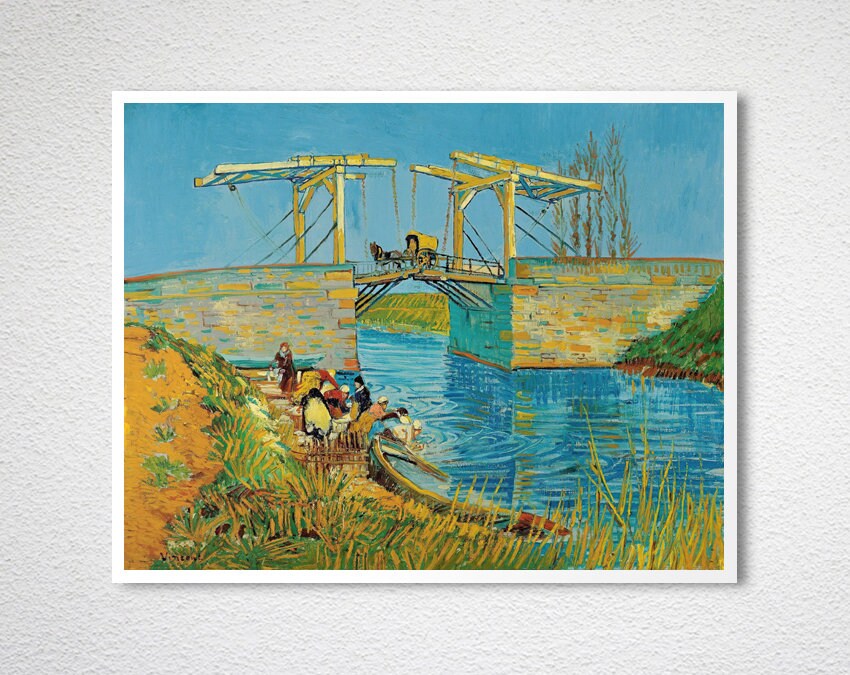 The Langlois Bridge at Arles with Women Washing by Vincent Van Gogh Fine Art Print - Poster Paper or Canvas Print