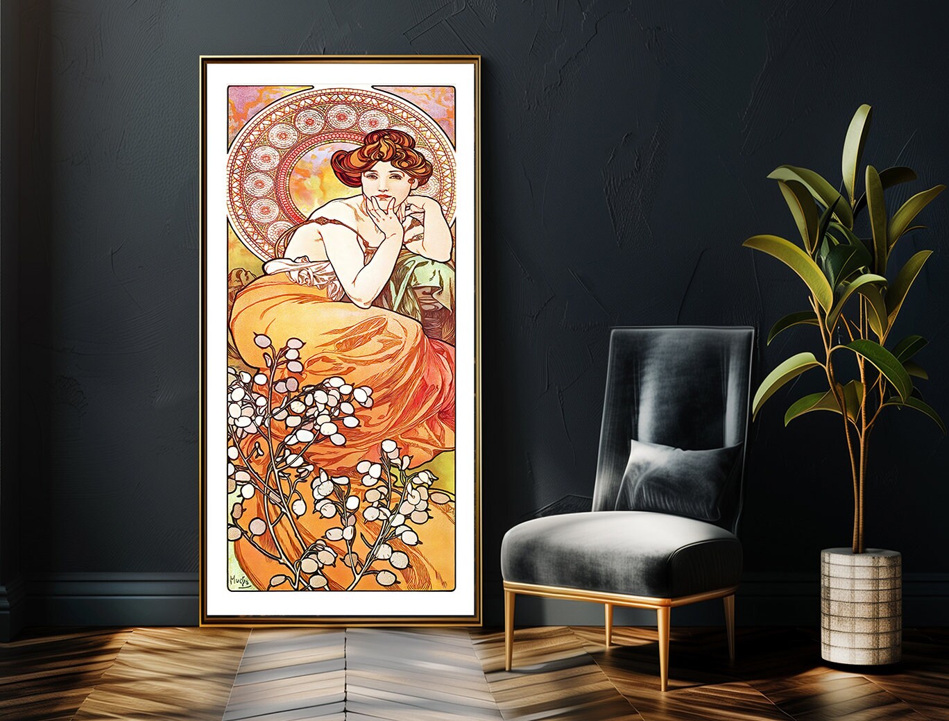 The Precious Stones, Topaz by Alphonse Mucha Fine Art Print - Poster Paper or Canvas Print / Gift Idea / Wall Decor