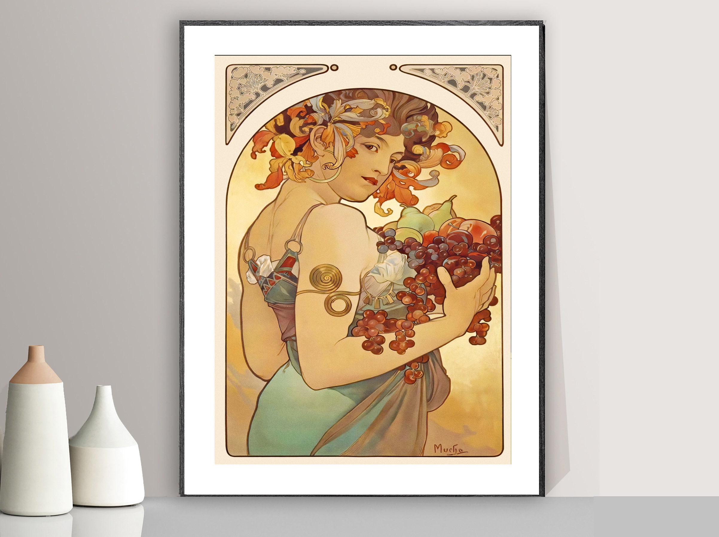 Alphonse Mucha Fruits Print: Vintage Art Nouveau Poster