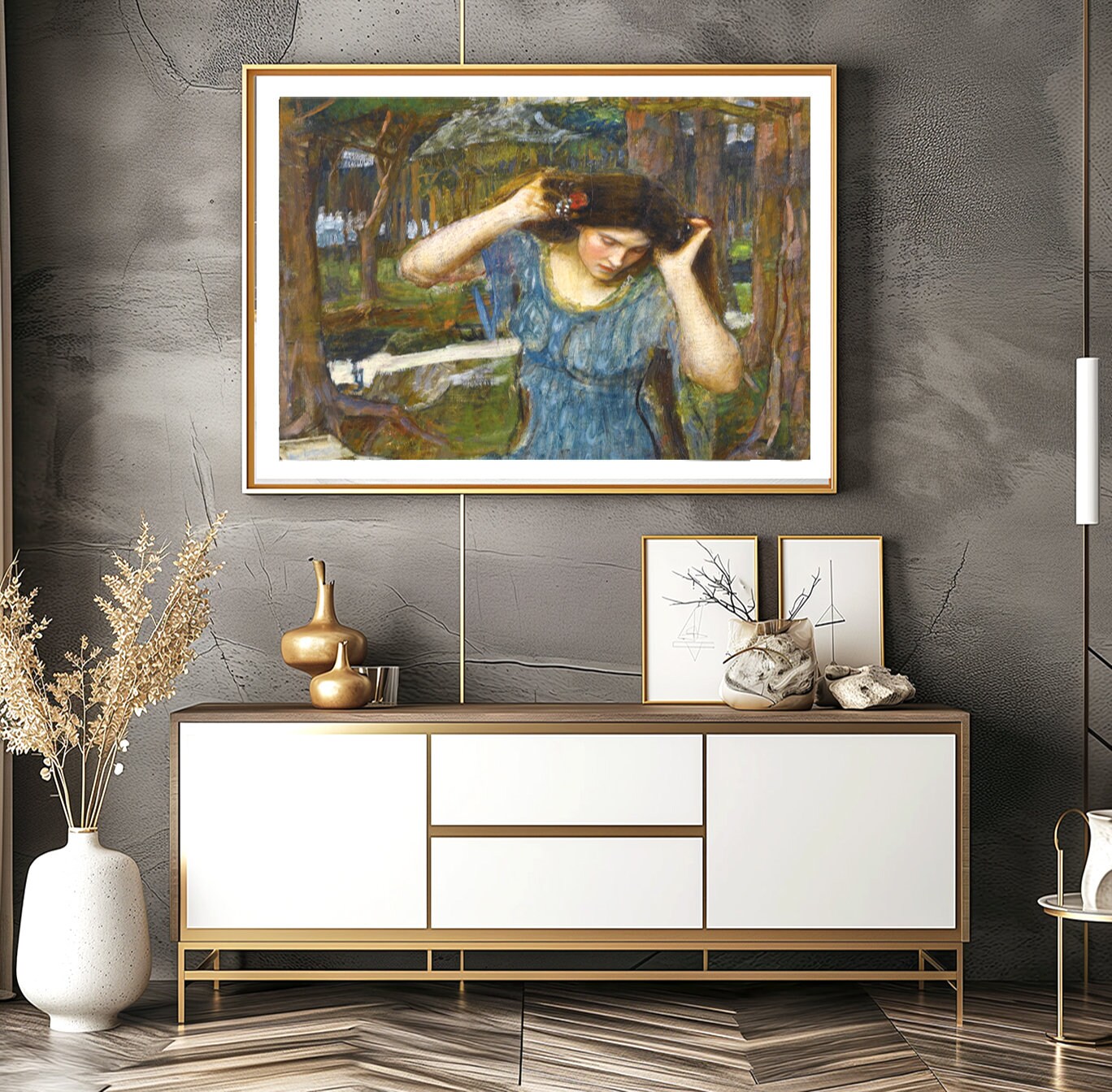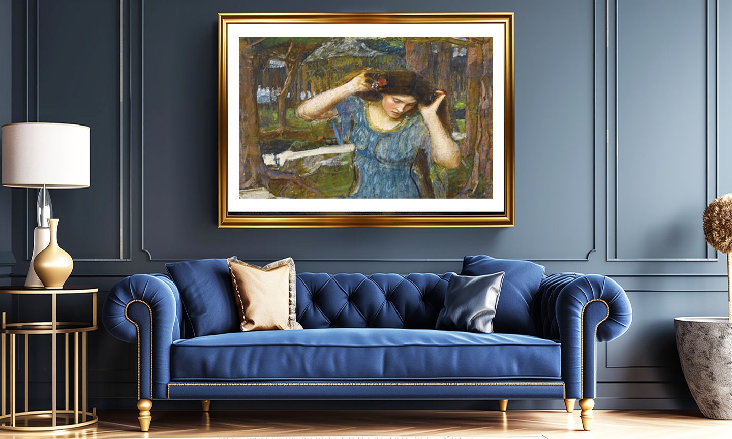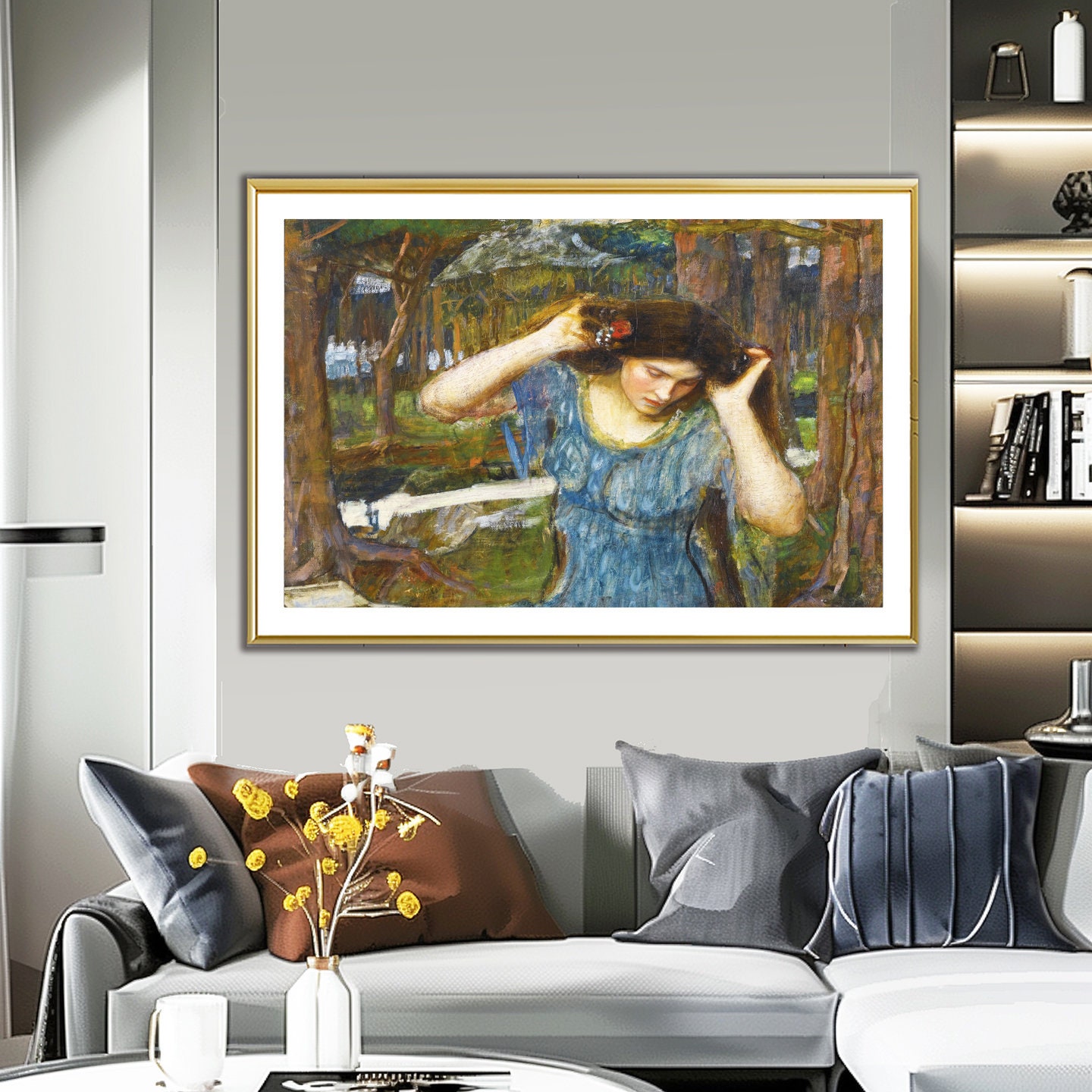 Printed on high quality paper, cotton canvas or adhesive sticker paper. A high quality reproduction of painting by John William Godward. Professional packaging for safe shipping. Natural white border will be added to the image for mounting and framing.