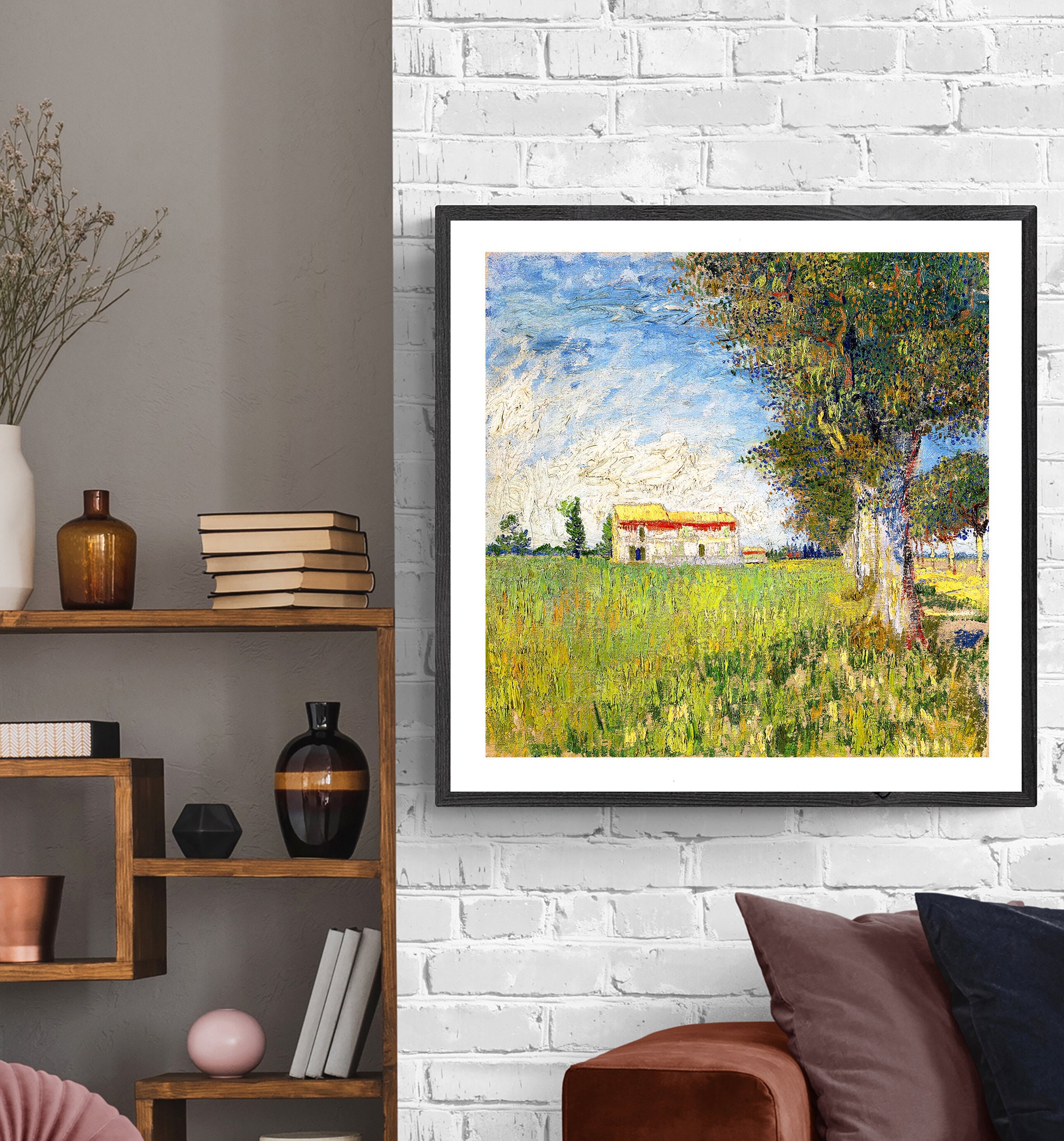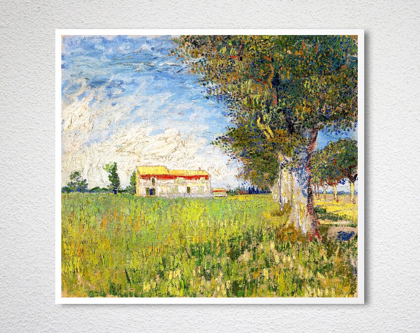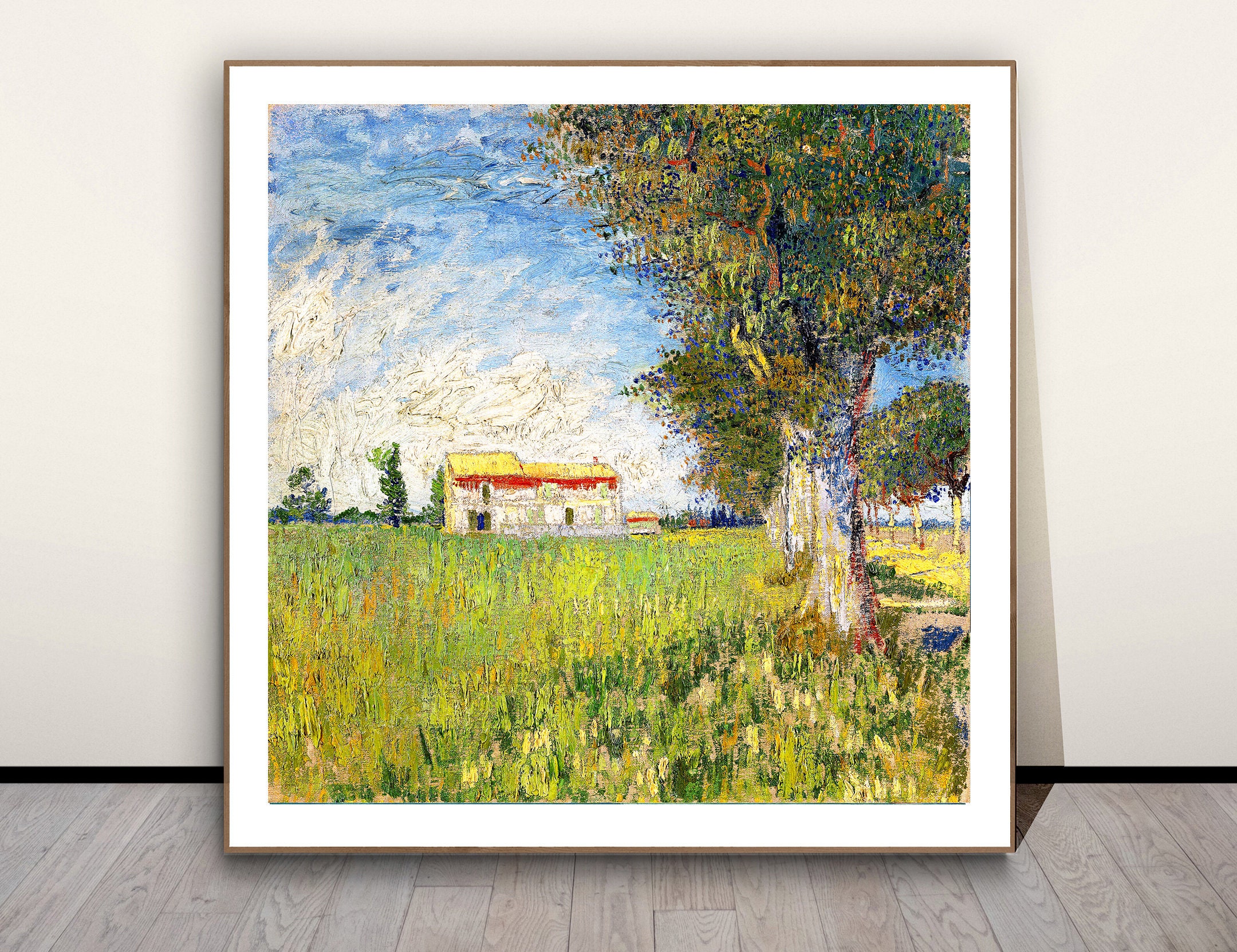 Farmhouse in a Wheat Field by Van Gogh, Fine Art Print, Landscape Painting, Impressionist Poster, Spring Décor, Nature Wall Art