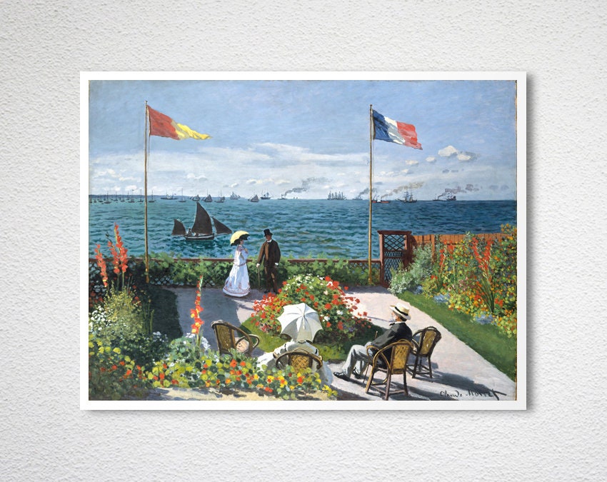 Claude Monet Print: Garden at Sainte Adresse, Impressionist Seascape Art