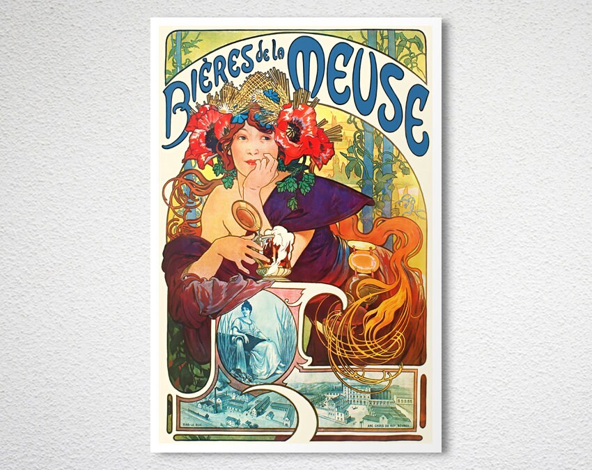 Bieres de la Meuse Food&Drink Poster by Alphonse Mucha - Poster Paper or Canvas Print