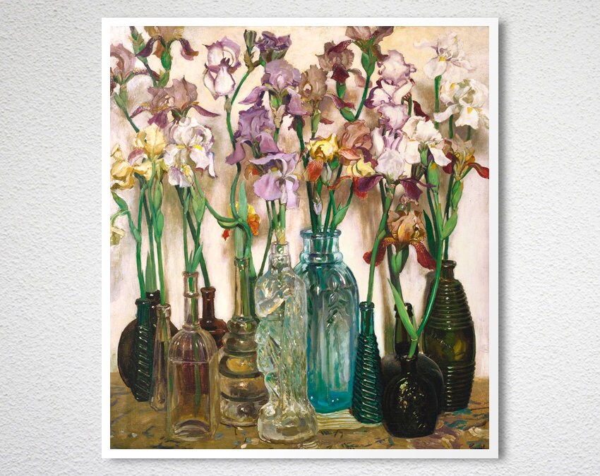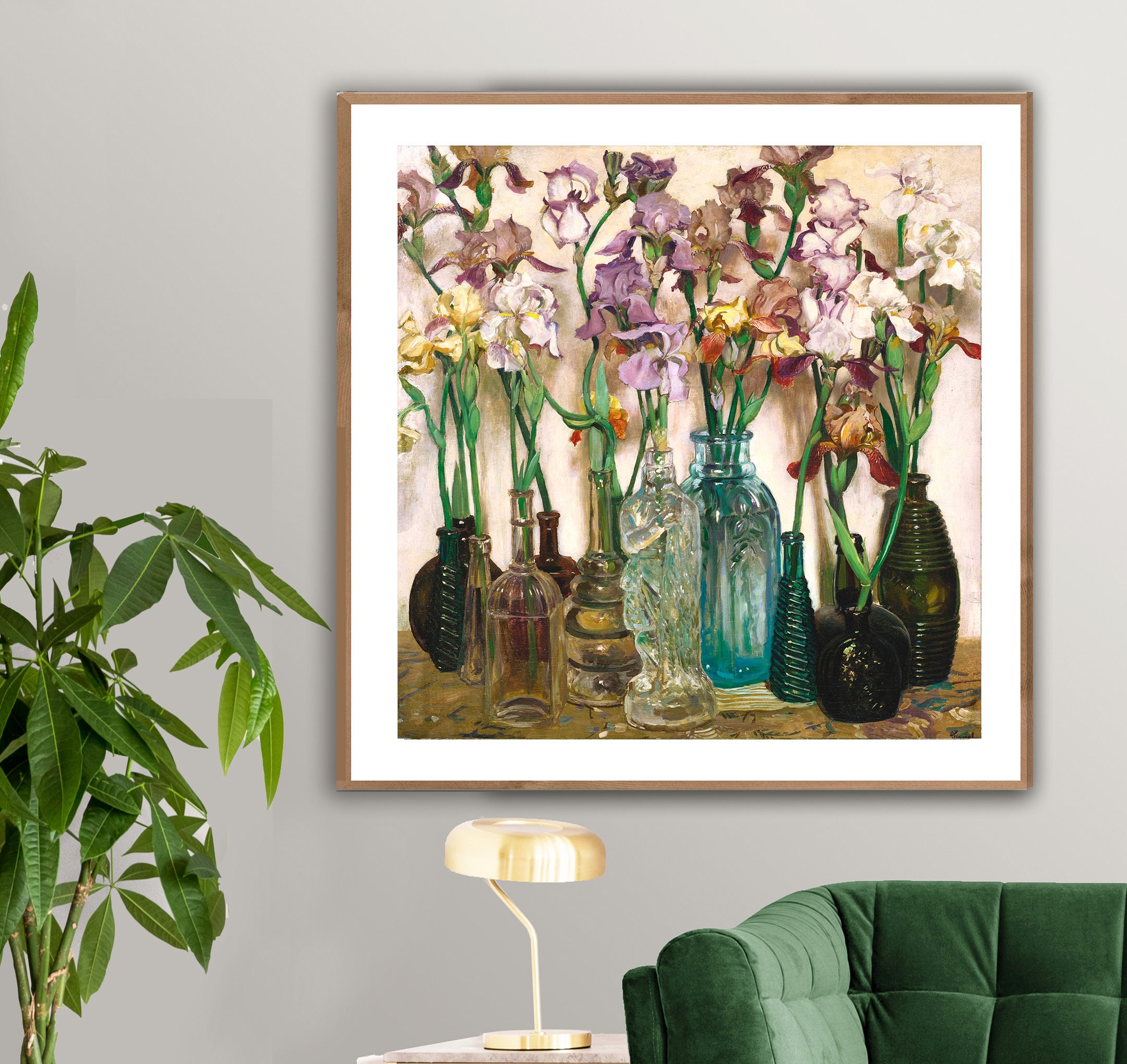 Frederick Judd Waugh Floral Art Print: Irises in Bottles (Poster or Canvas)