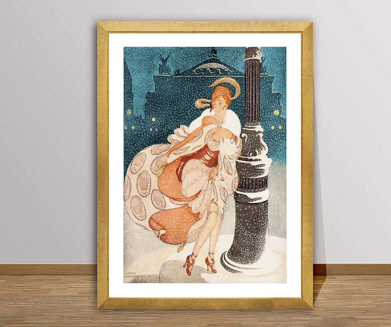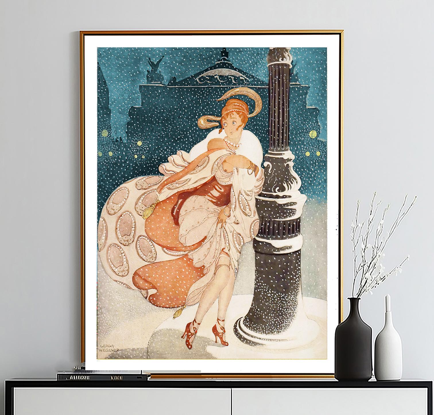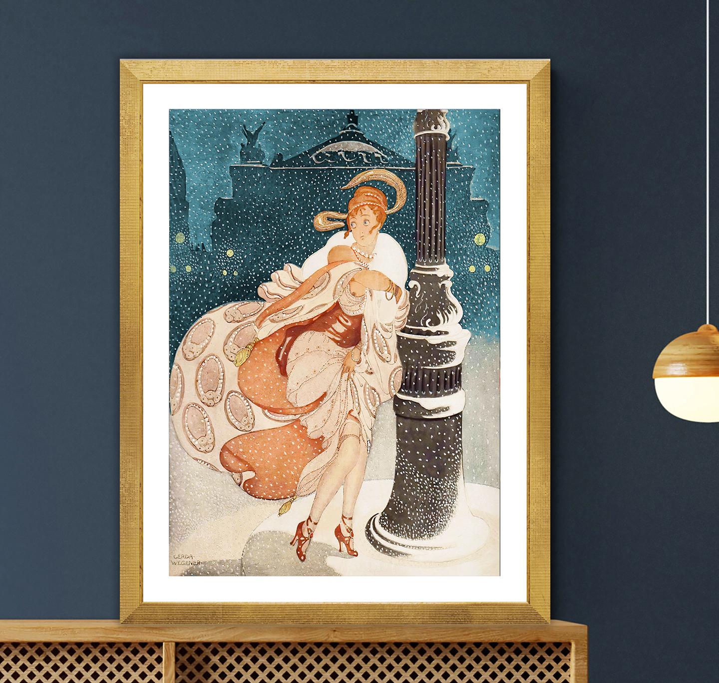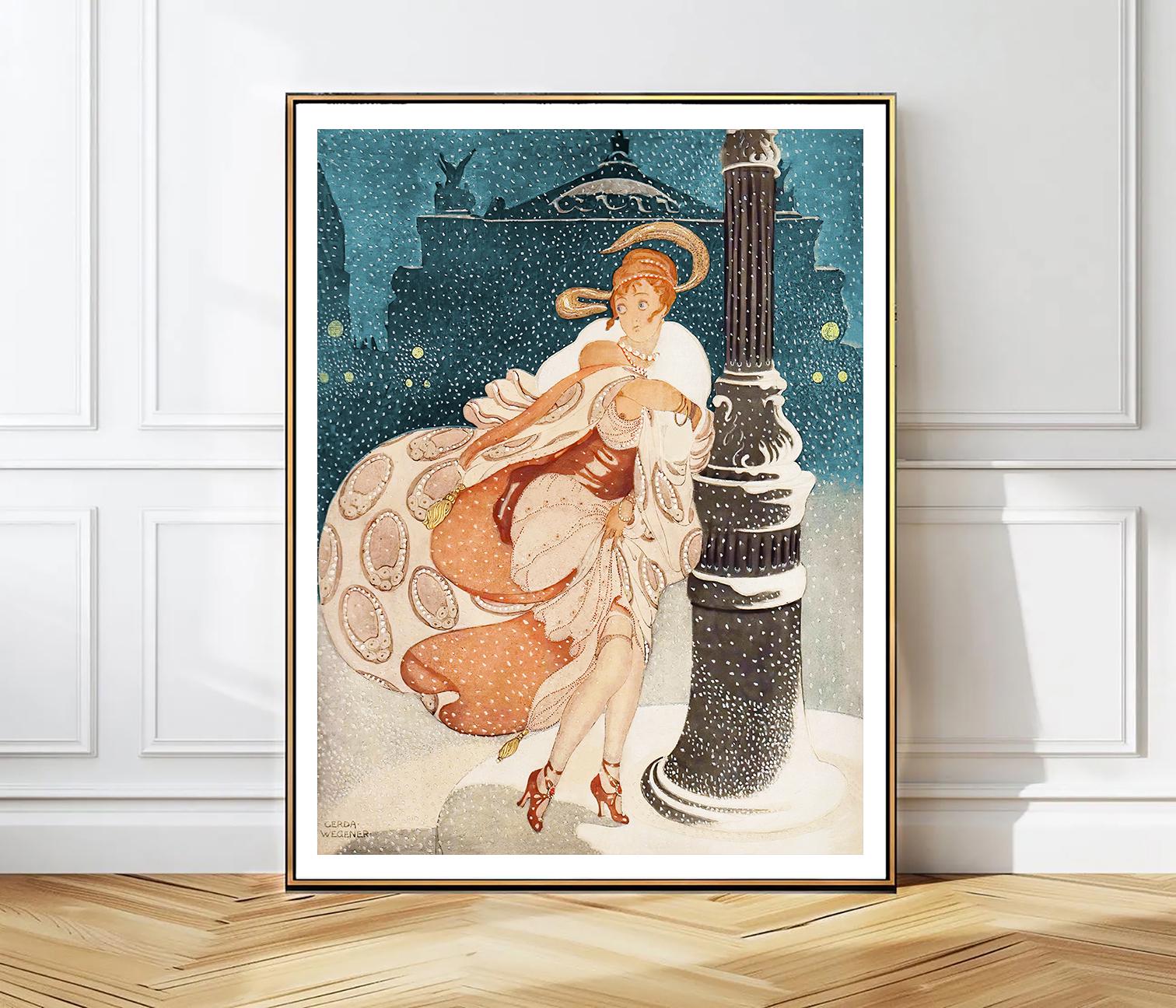 A Snowy Night At The Paris Opera, by Gerda Wegener Fine Art Poster, Art Nouveau Décor, French Woman Art, Illustration Print