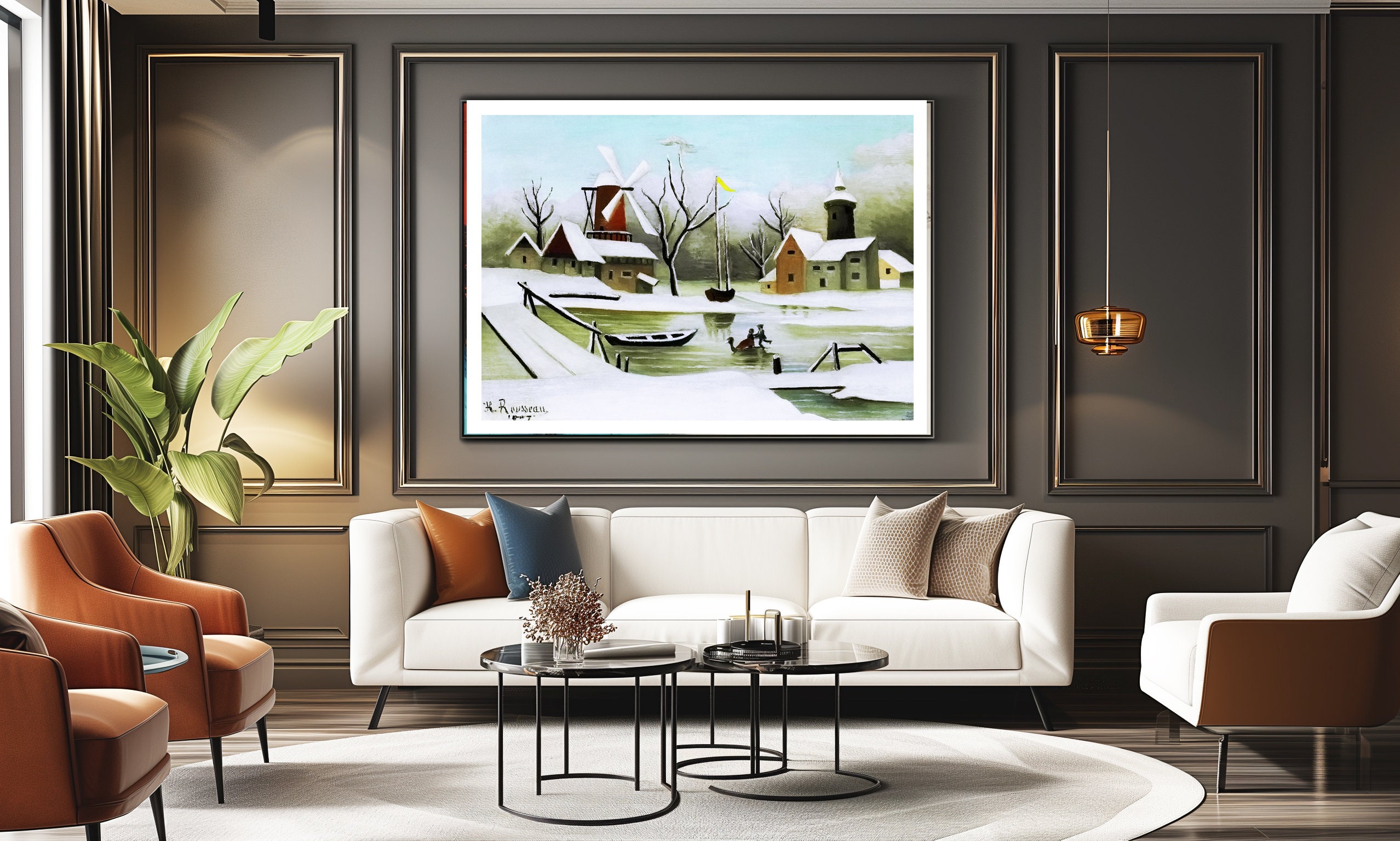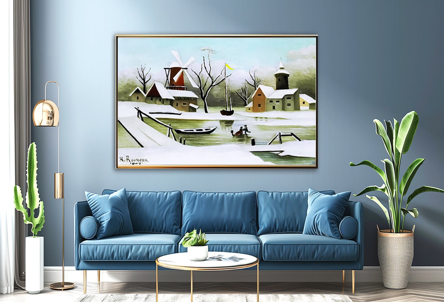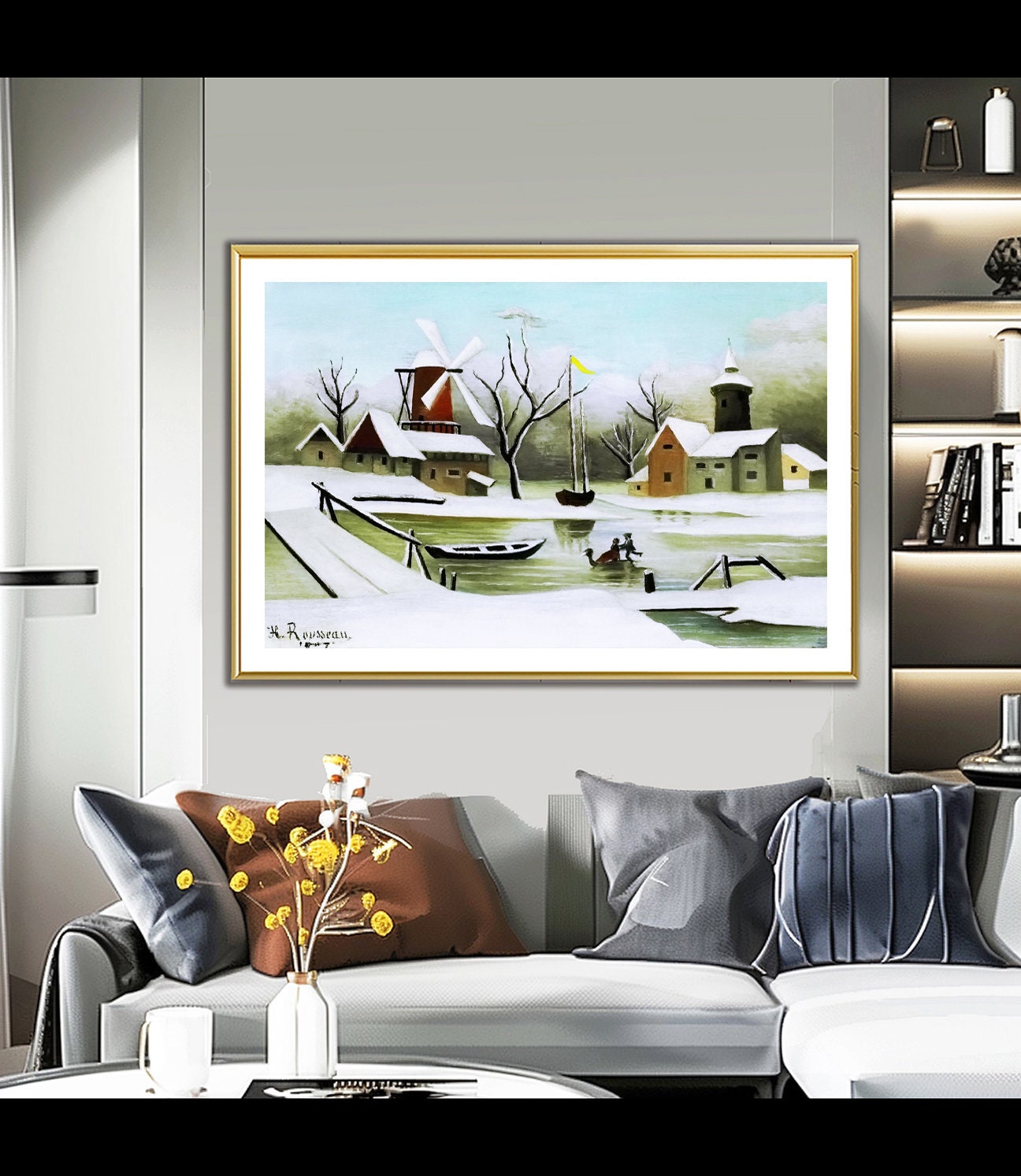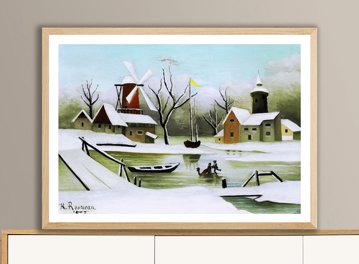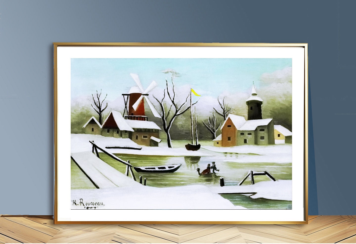 Hiver by Henri Rousseau, Fine Art Poster, Rustic Décor, Winter Wall Décor, Landscape Print, Windmill Painting, Seaside Artwork, Snow Poster