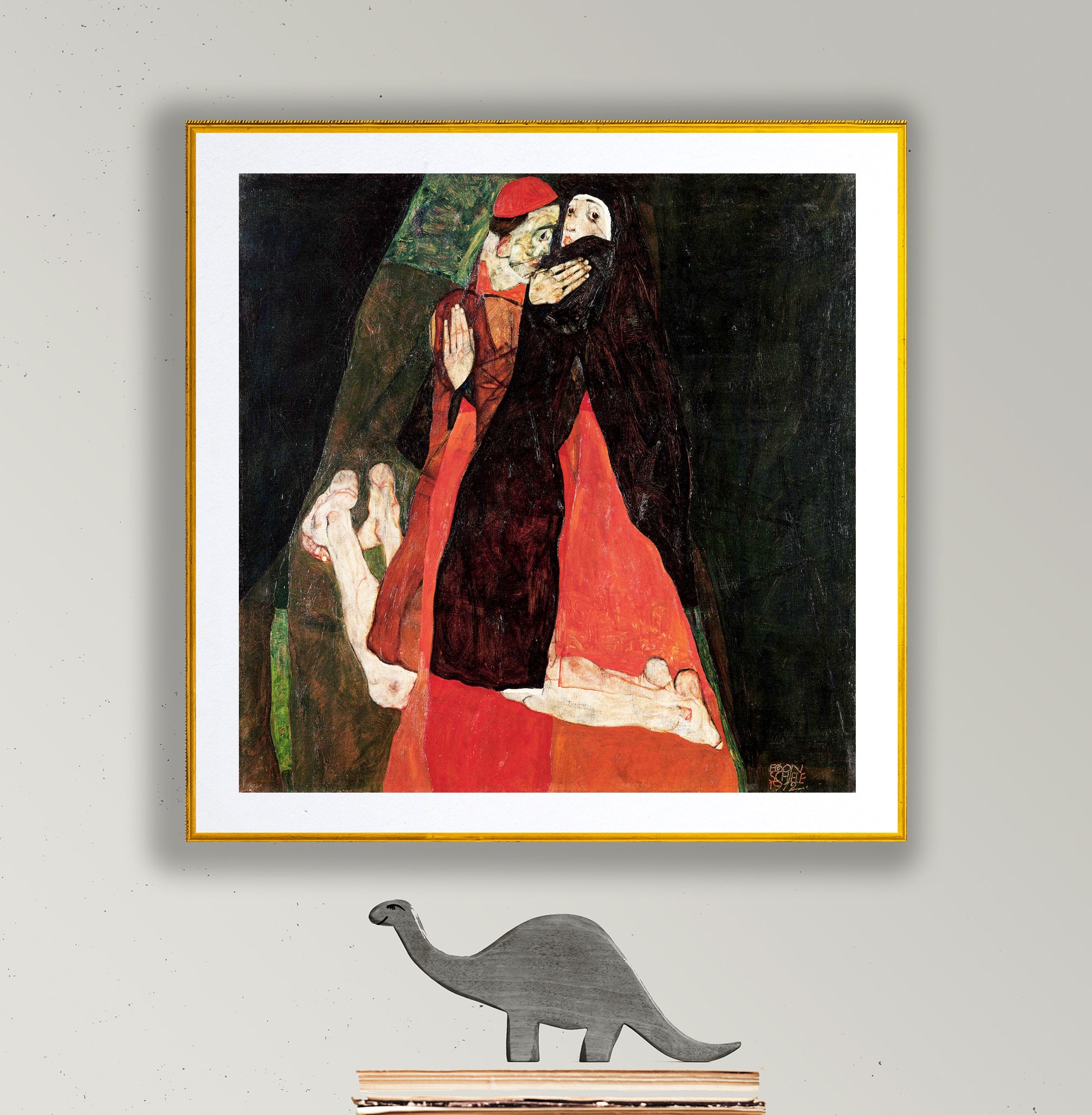Egon Schiele Print: Cardinal and Nun, Figurative Romantic Art