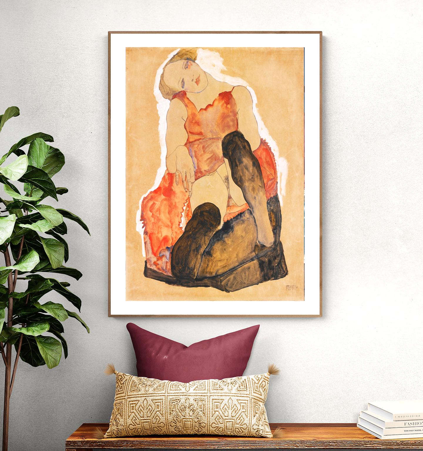 Egon Schiele Print: Girl with Black Stockings, Expressionist Art Poster