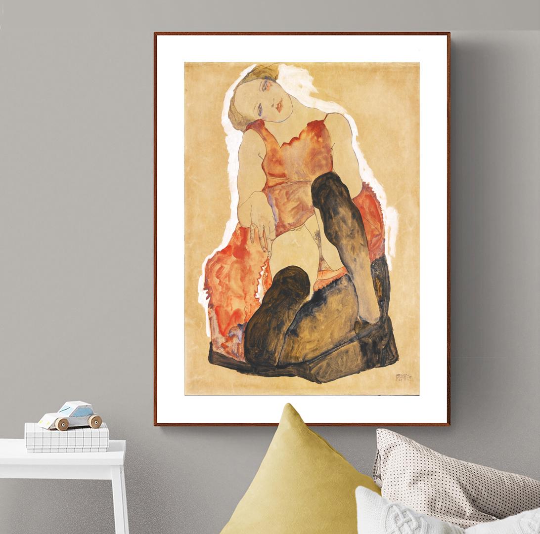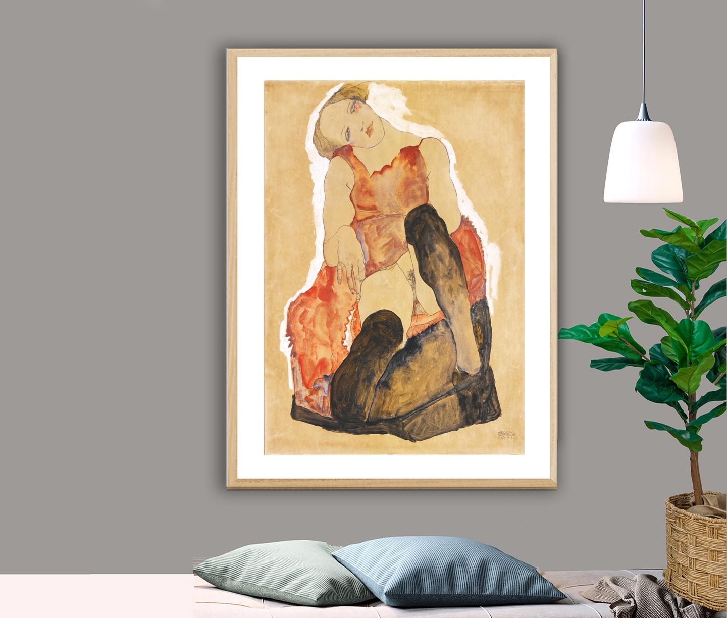 Girl with Black Stockings by Egon Schiele - Poster Paper or Canvas Print