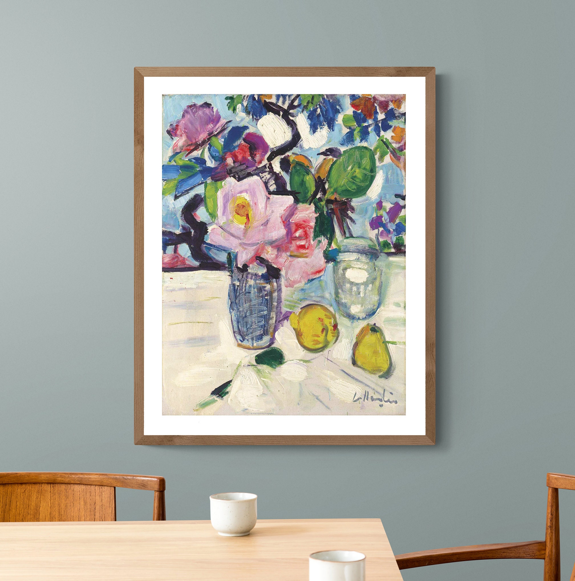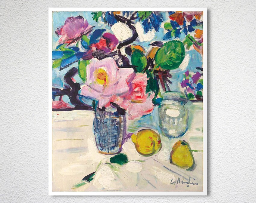 Still Life with Roses and Fruit by George Leslie Hunter Fine Art Print - Poster Paper or Canvas Print / Gift Idea