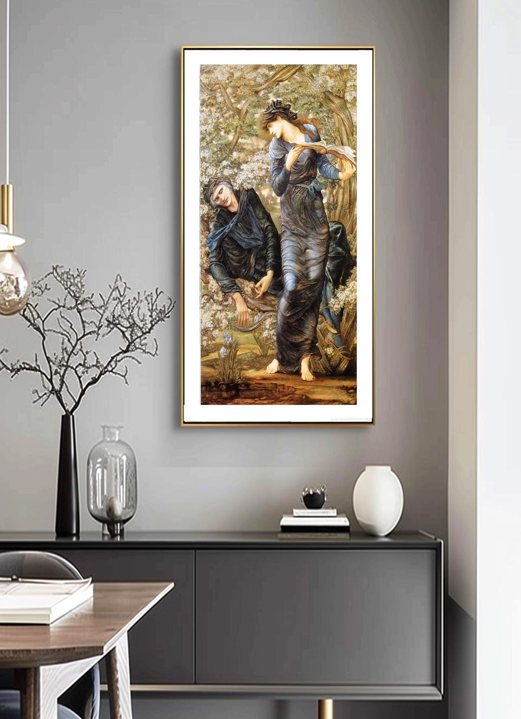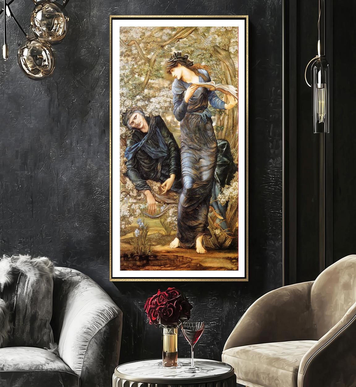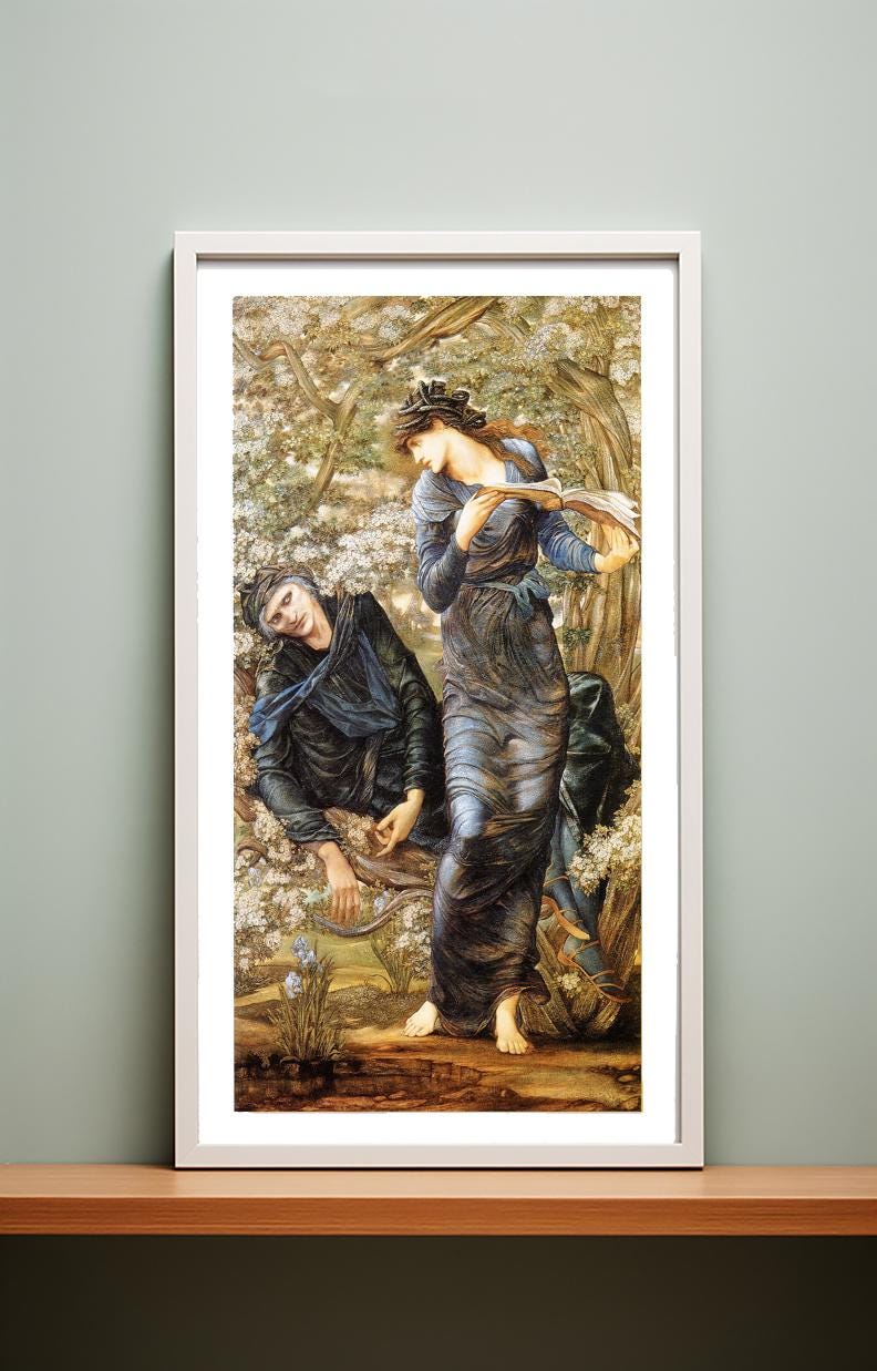Printed on high quality paper, cotton canvas or adhesive sticker paper. A high quality reproduction of painting by Edward Burne Jones. Professional packaging for safe shipping. Natural white border will be added to the image for mounting and framing.
