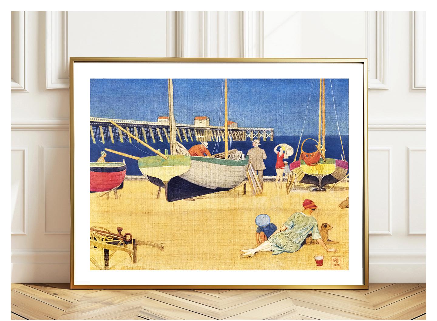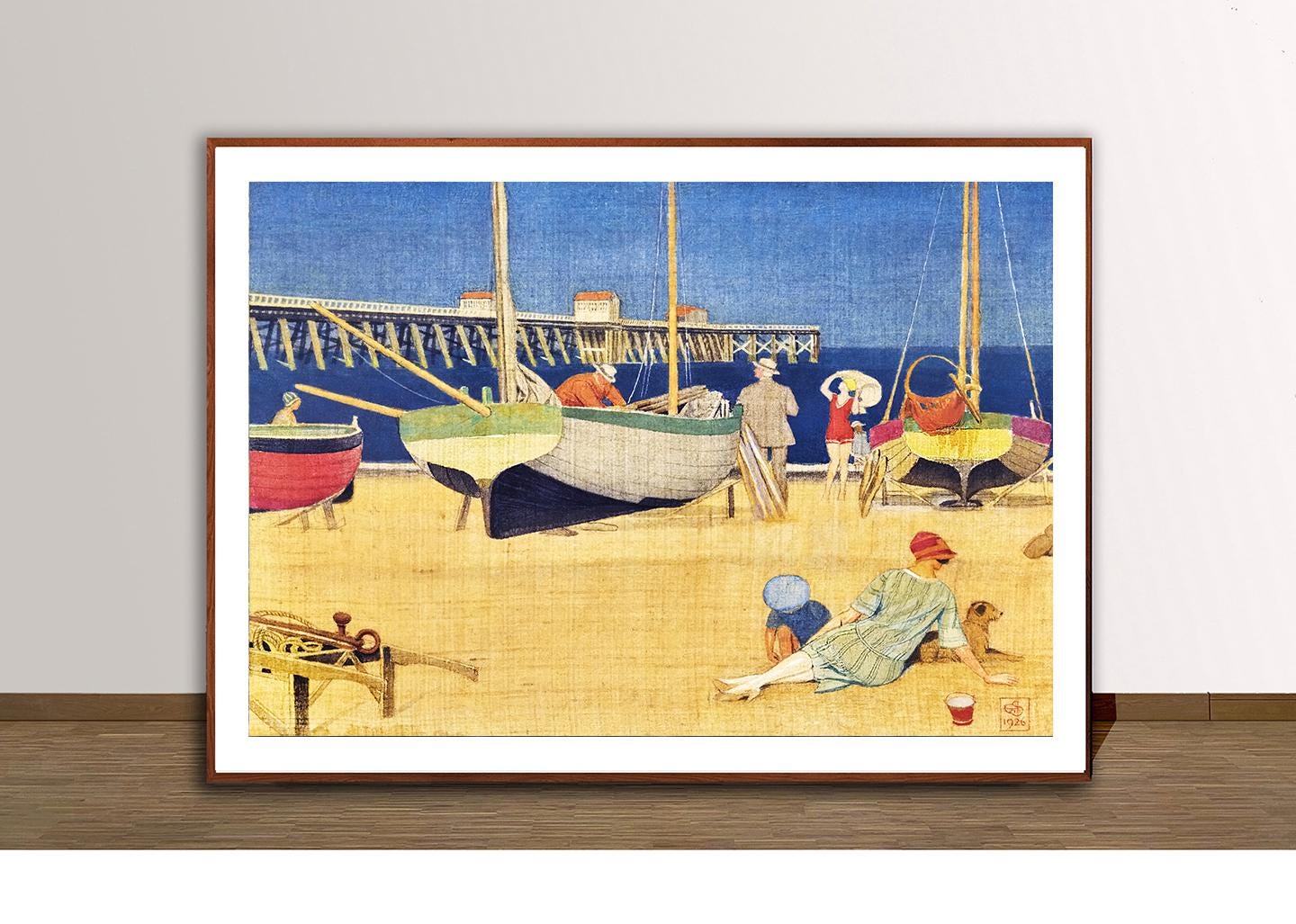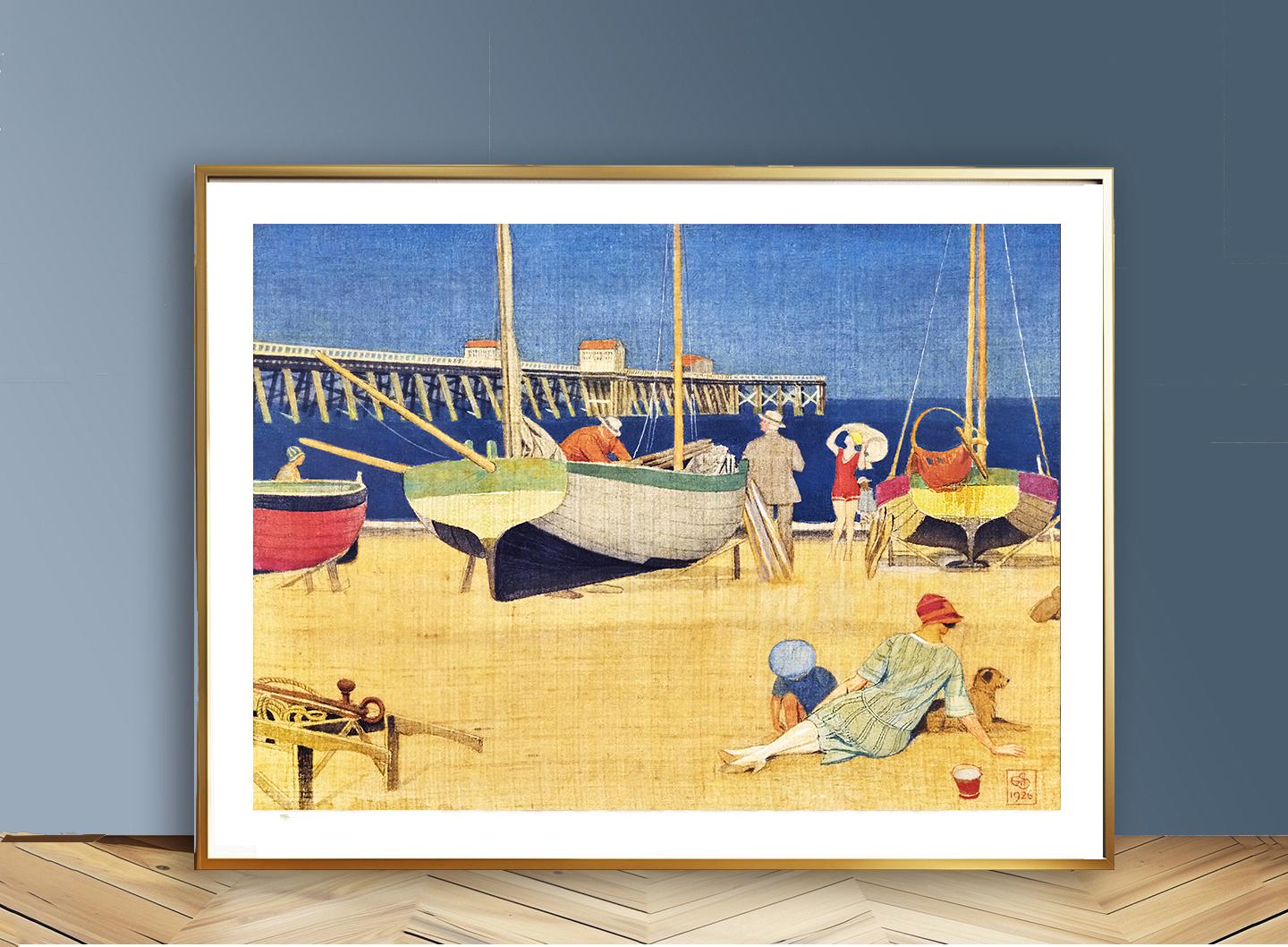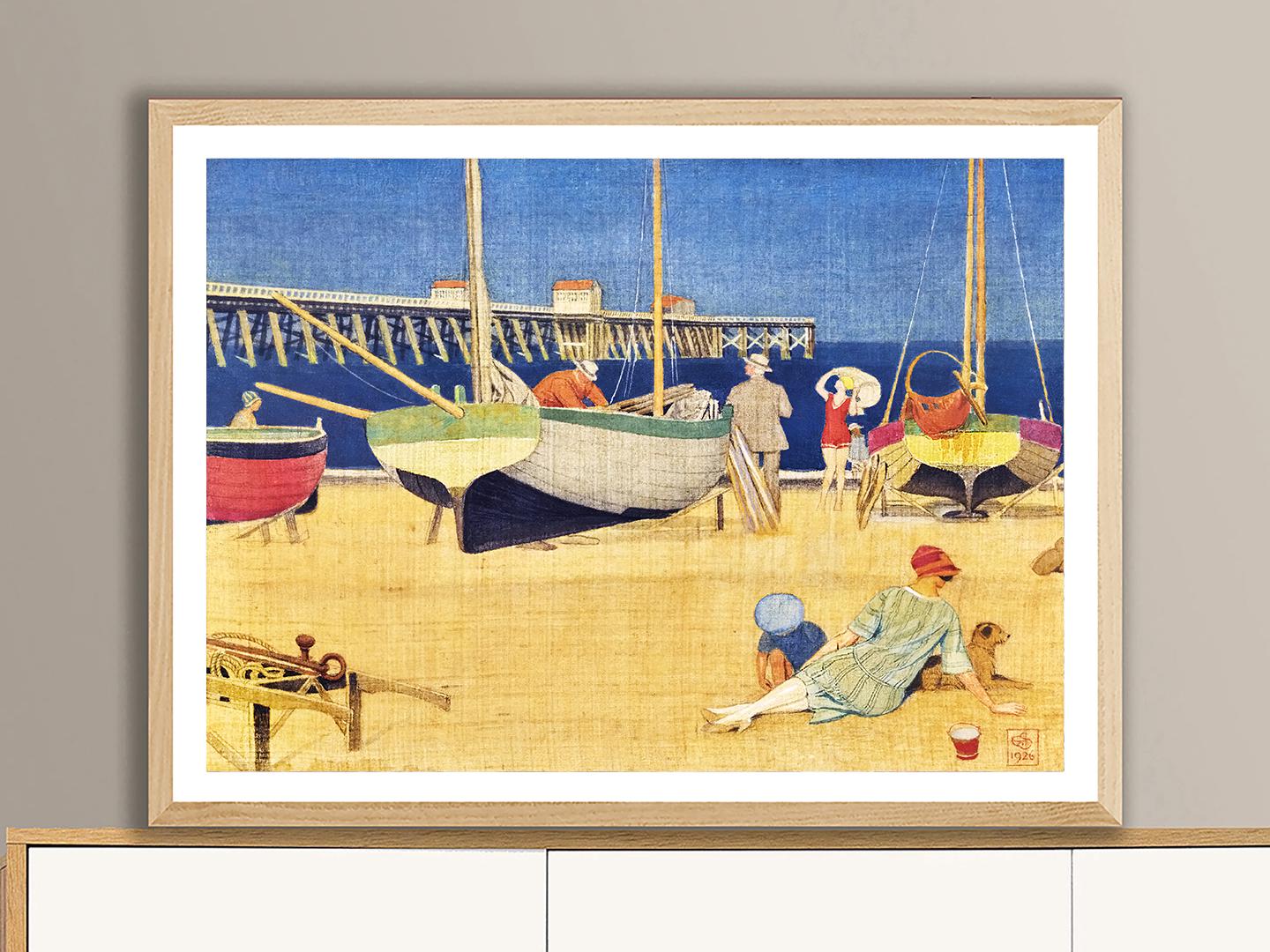 Joseph Edward Southall Print: Southwold Beach, Coastal Art