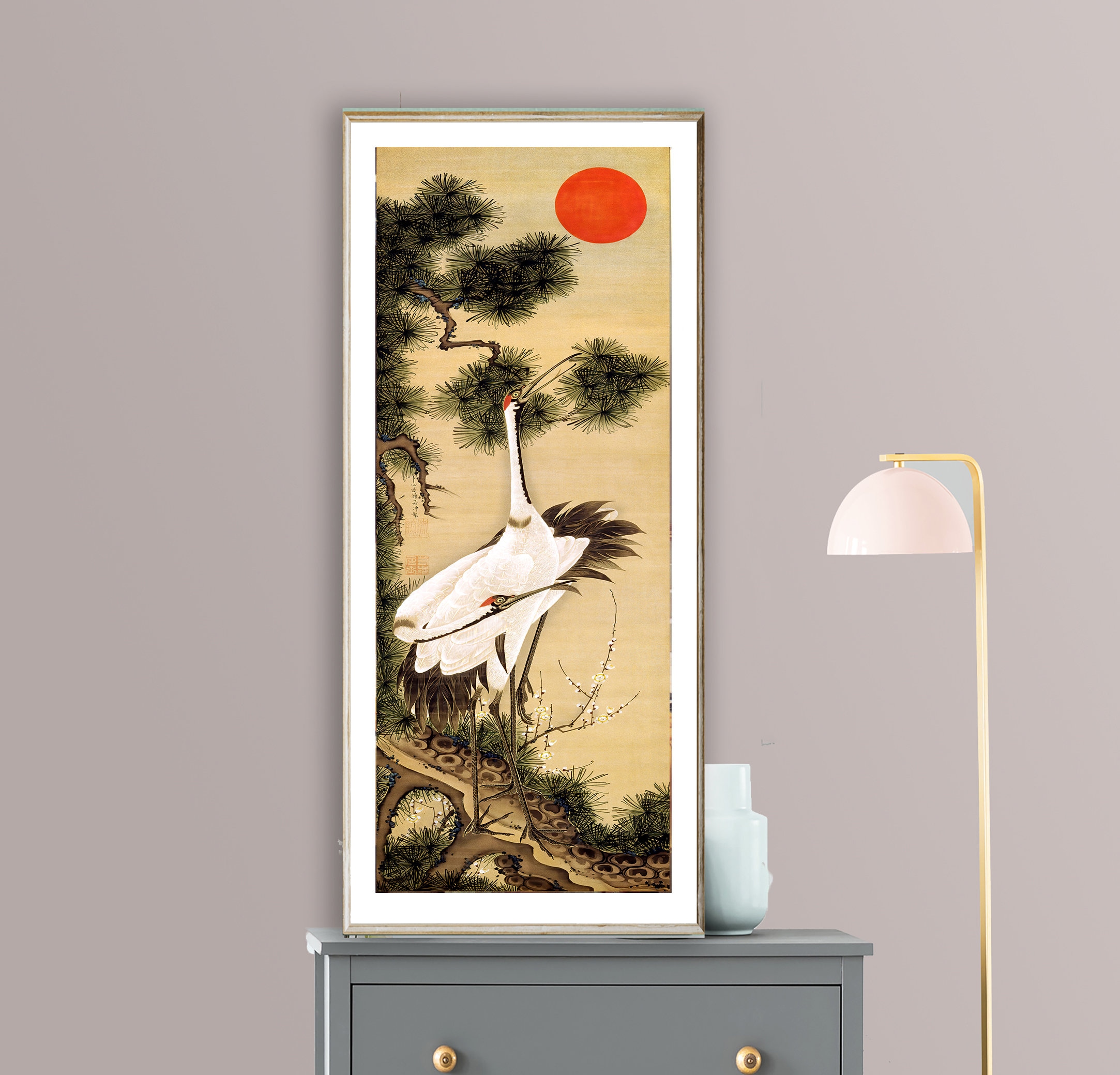 Pair of Cranes and the Morning Sun by Ito Jakuchu Fine Art Prints - Poster Paper or Canvas Print / Christmas Gift