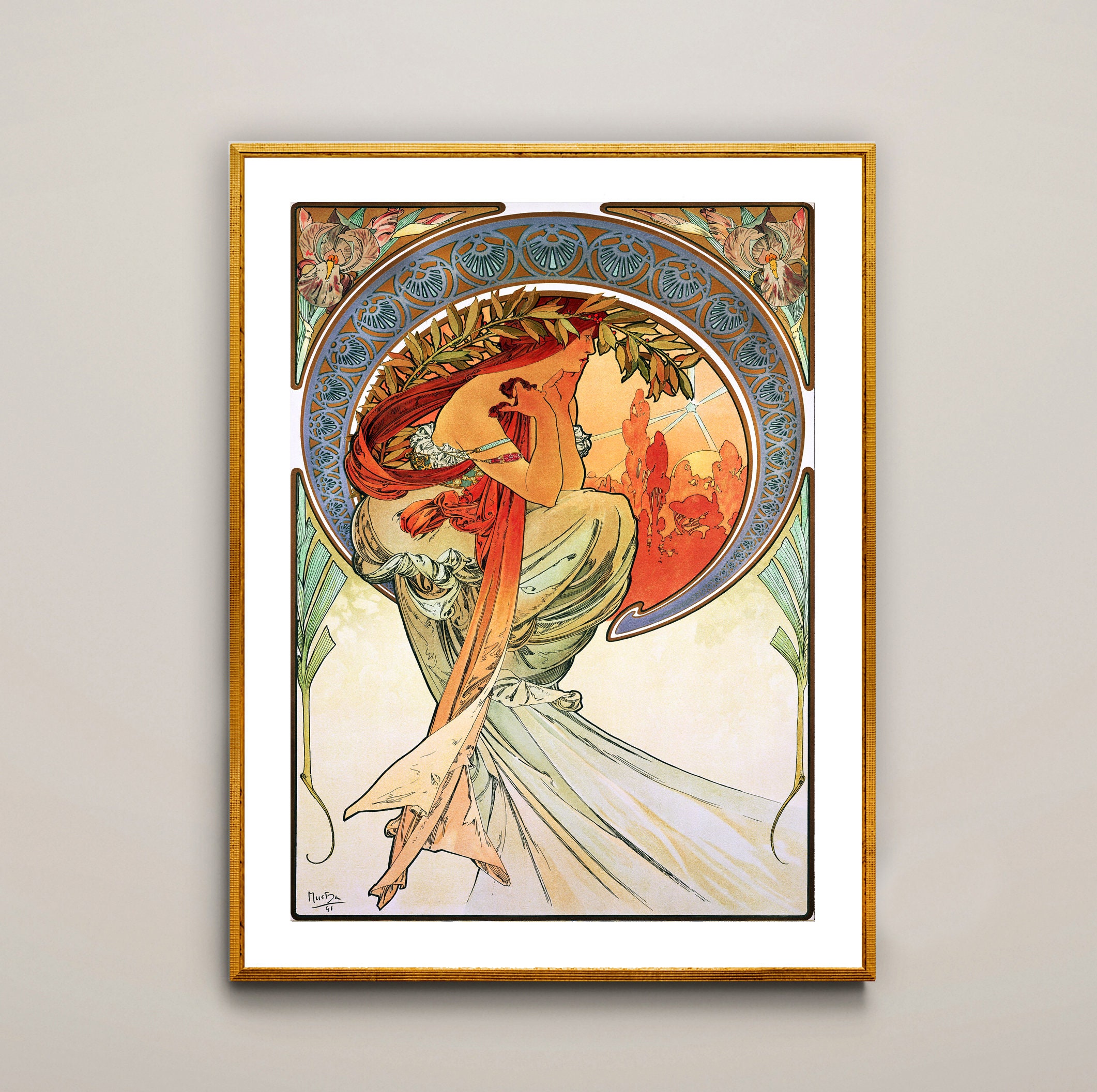 GICLEE printed on high quality paper, cotton canvas or adhesive sticker paper. A high quality reproduction of painting by Alphonse Mucha. Professional packaging for safe shipping. Natural white border will be added to the image for mounting and framing.