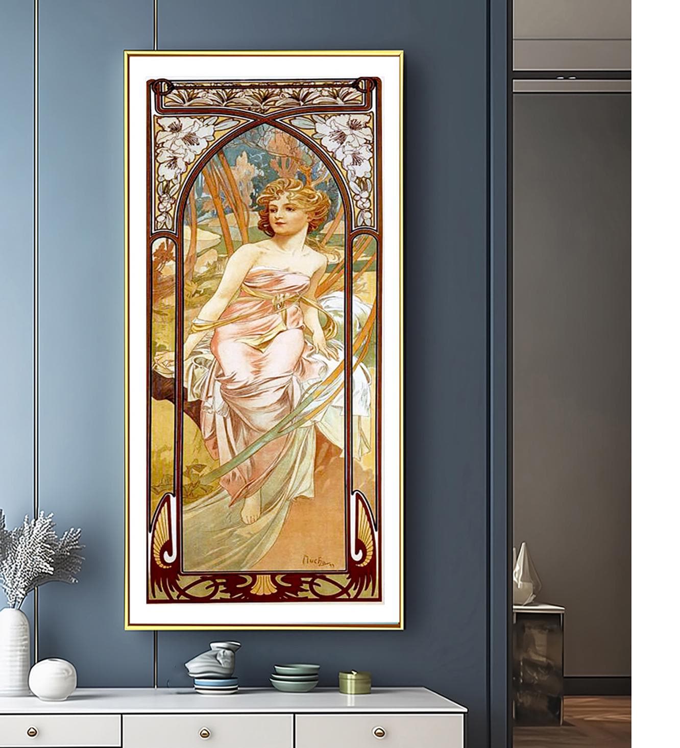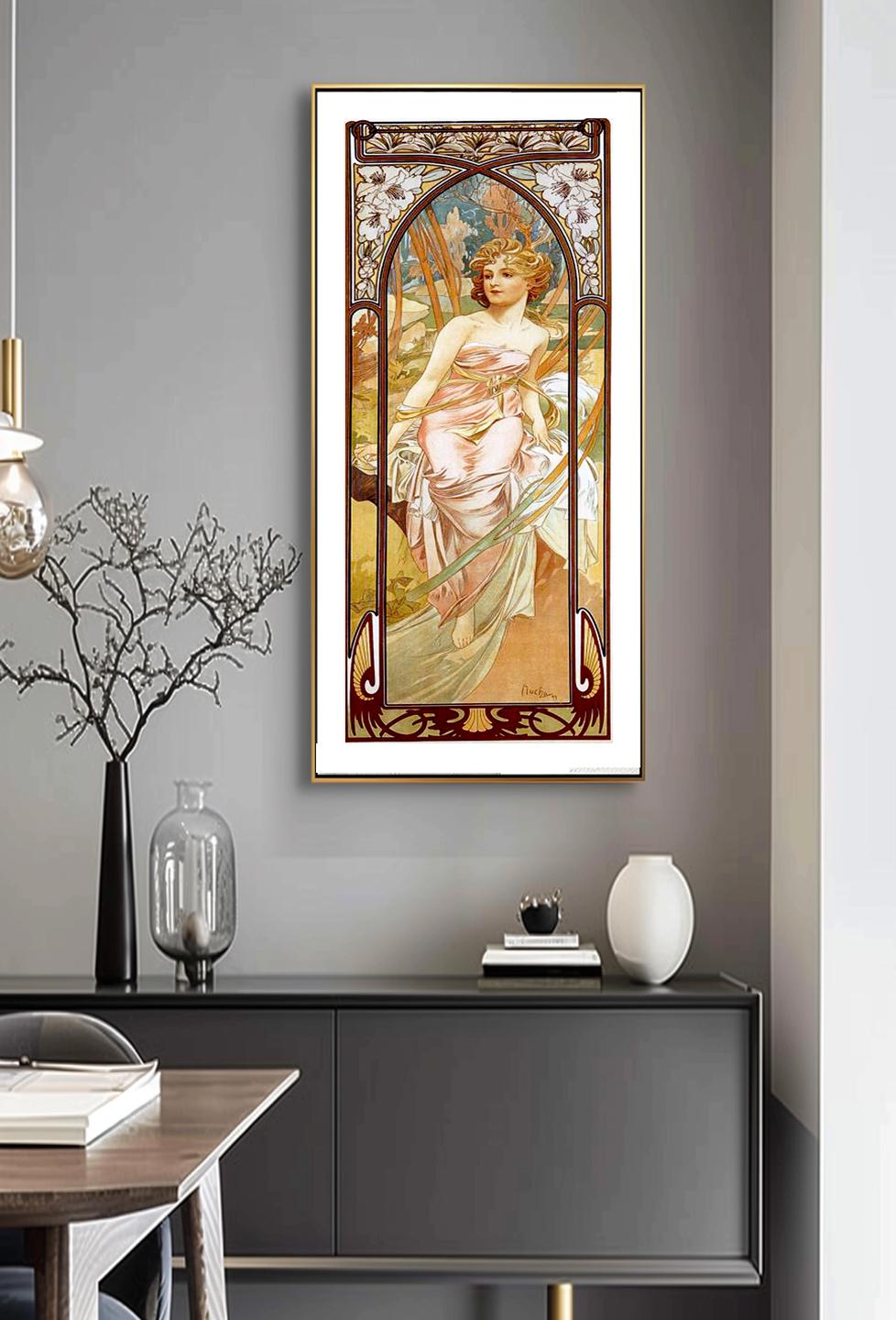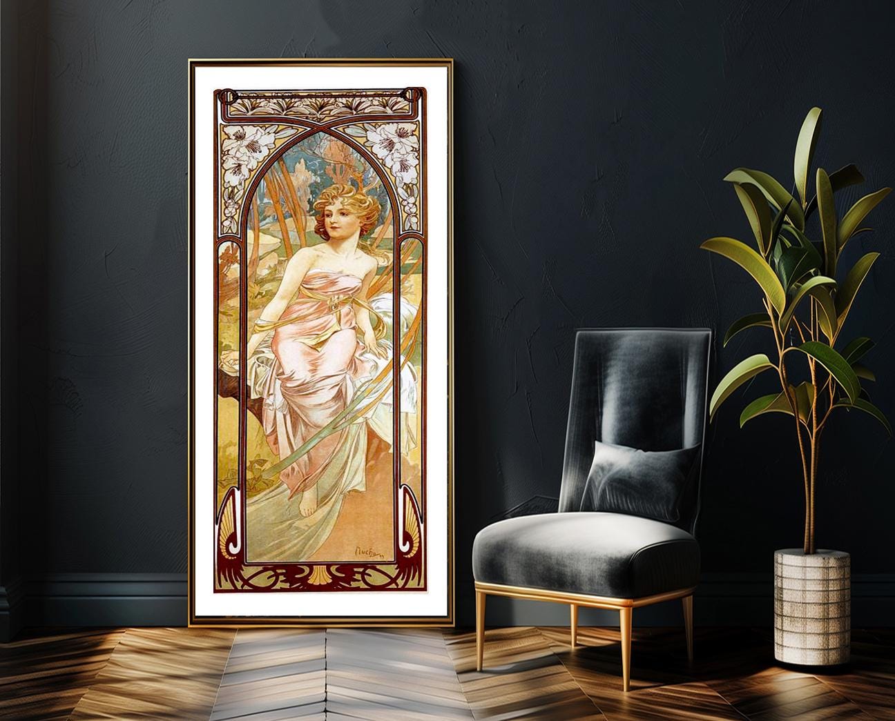 Printed on high quality paper, cotton canvas or adhesive sticker paper. A high quality reproduction of painting by Alphonse Mucha. Professional packaging for safe shipping. Natural white border will be added to the image for mounting and framing.