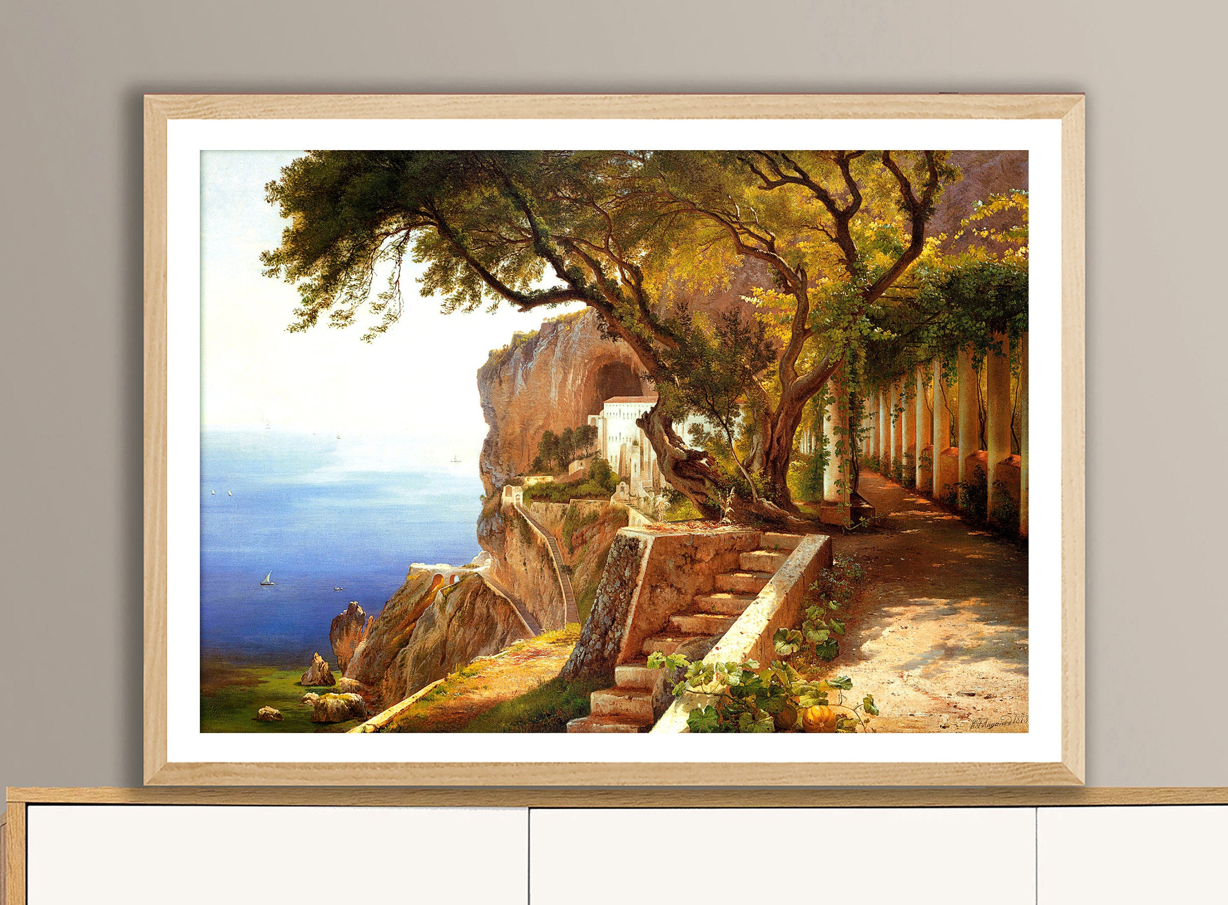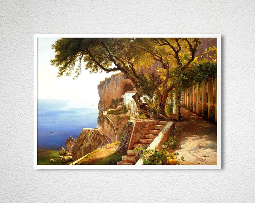 View of the Amalfi Coast by Carl Frederic Aagard Fine Art Print - Poster Paper or Canvas Print / Gift Idea