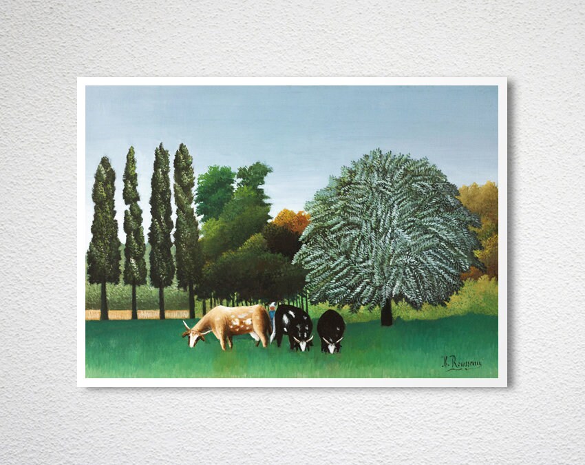 Giclee printed on high quality paper, cotton canvas or adhesive sticker paper. A high quality reproduction of painting by Henri Rousseau. Professional packaging for safe shipping. Natural white border will be added to the image for mounting and framing.
