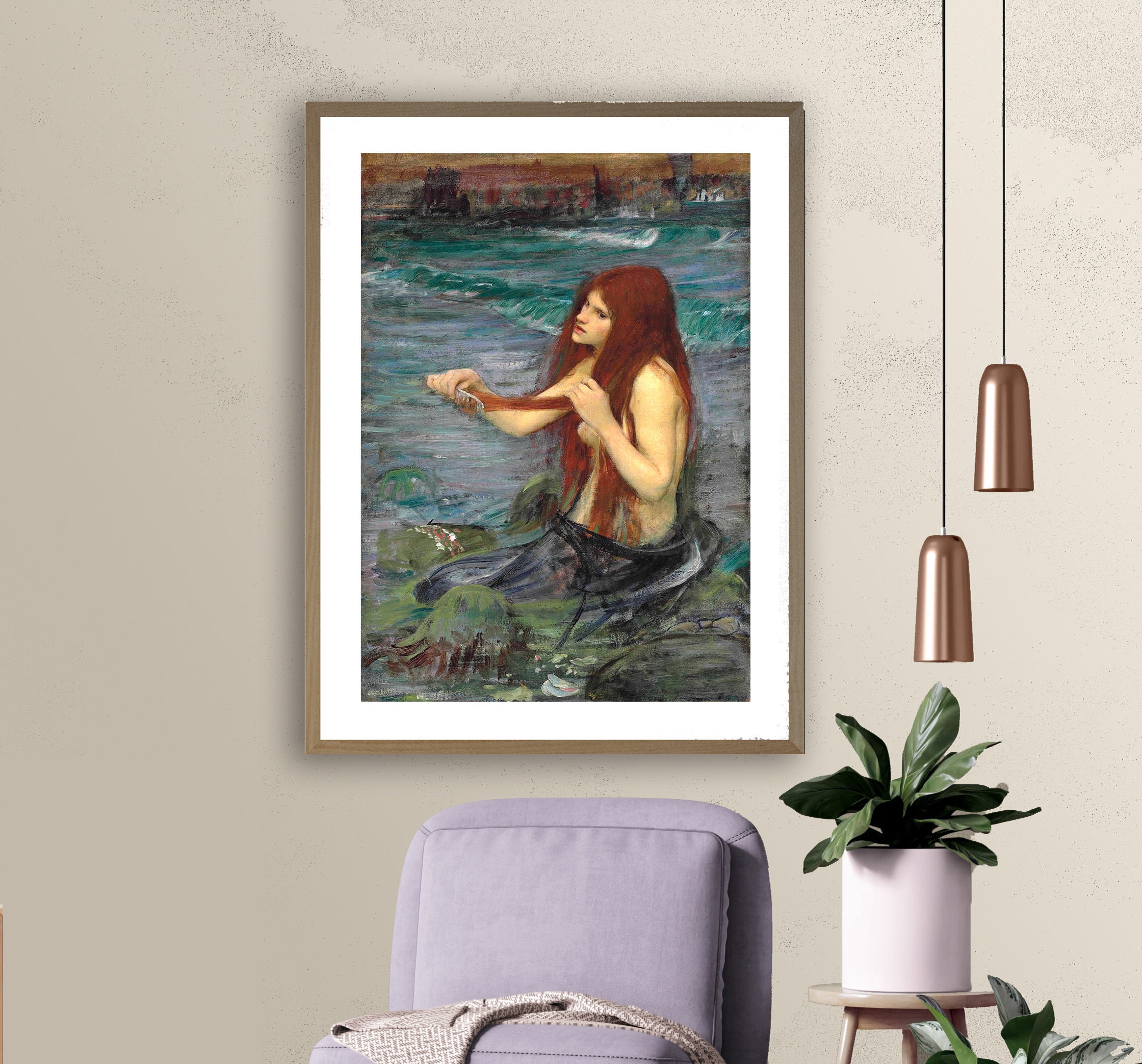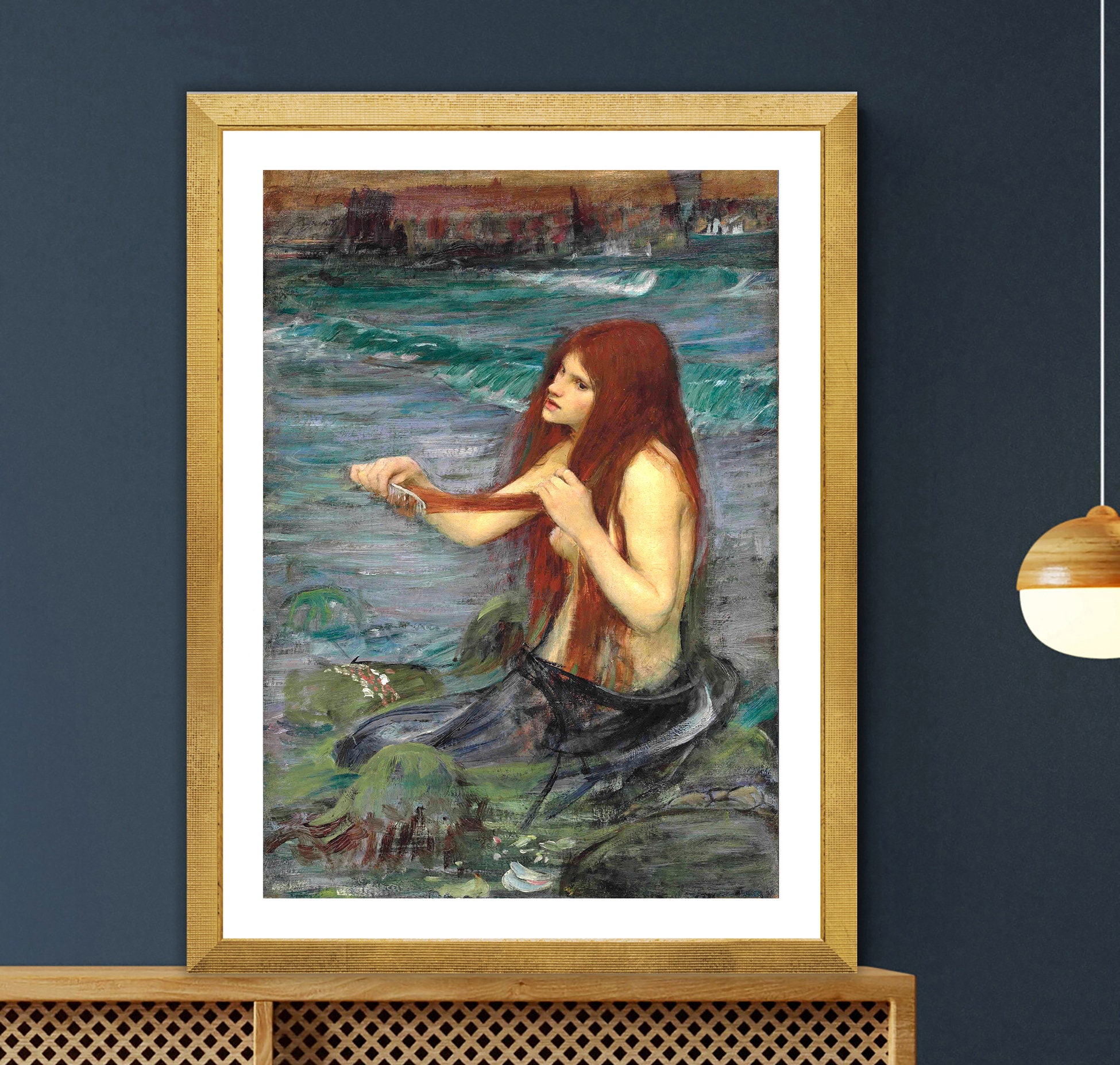 Mermaid Fine Art Print by John William Waterhouse - Mythological Wall Decor