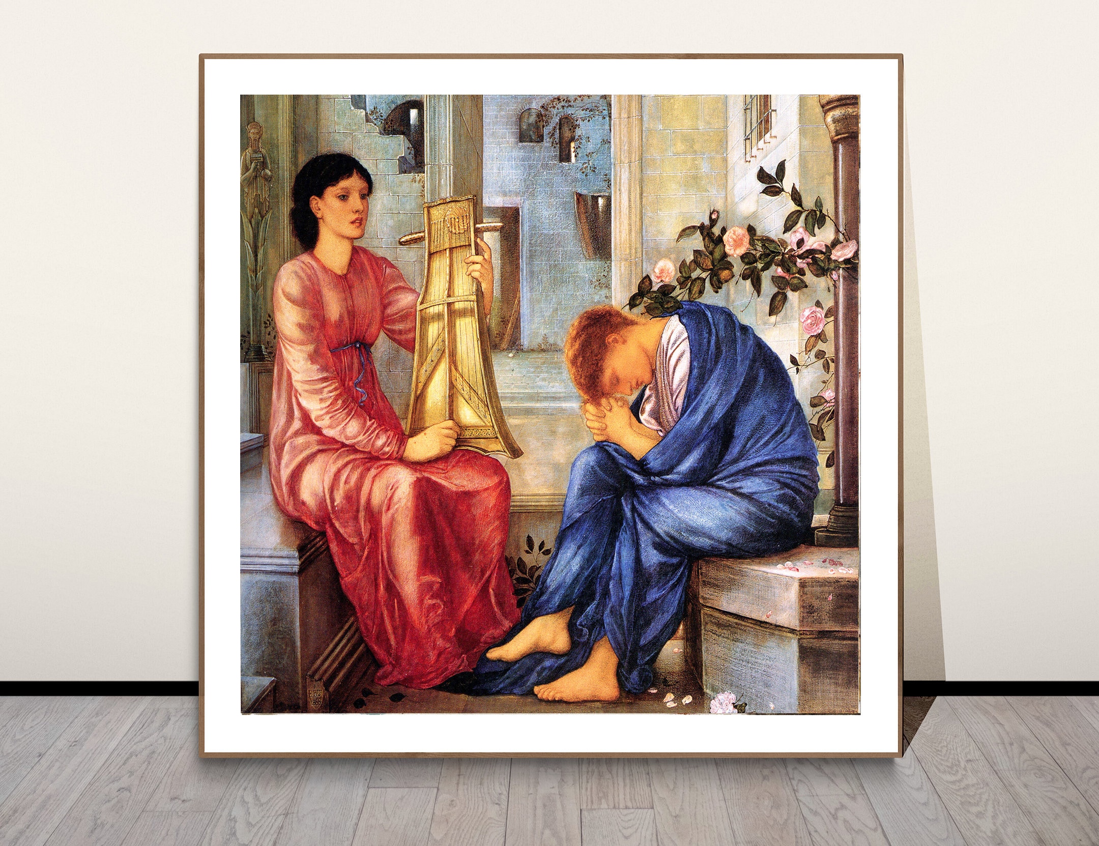 The Lament by Edward Burne Jones Fine Art Print - Romanticism Style, Classical Art, Musician Painting