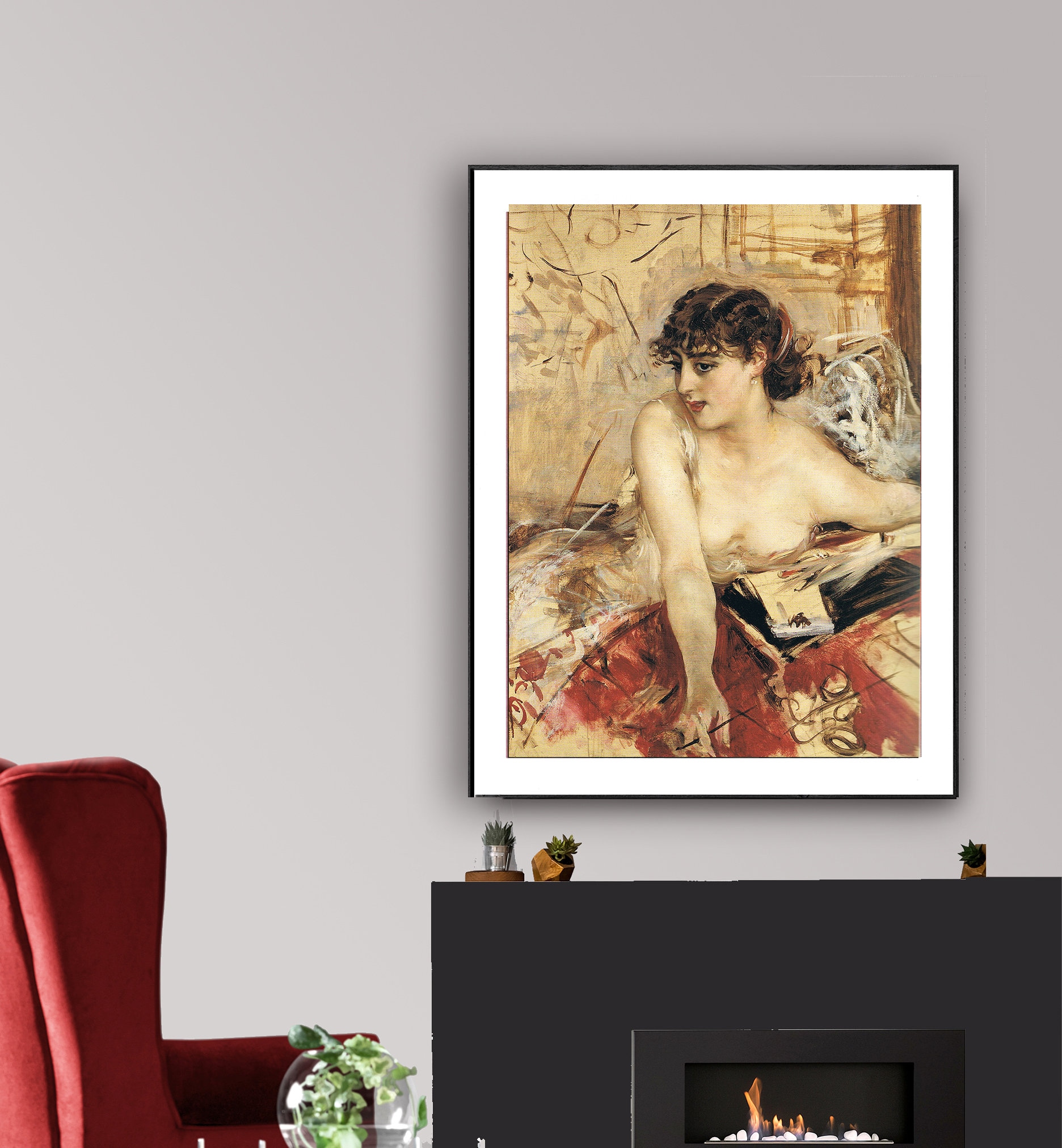 Giclee printed on high quality paper, cotton canvas or adhesive sticker paper. A high quality painting reproduction of painting by Giovanni Boldini. Professional packaging for safe shipping. Natural white border will be added to the image for mounting and framing.