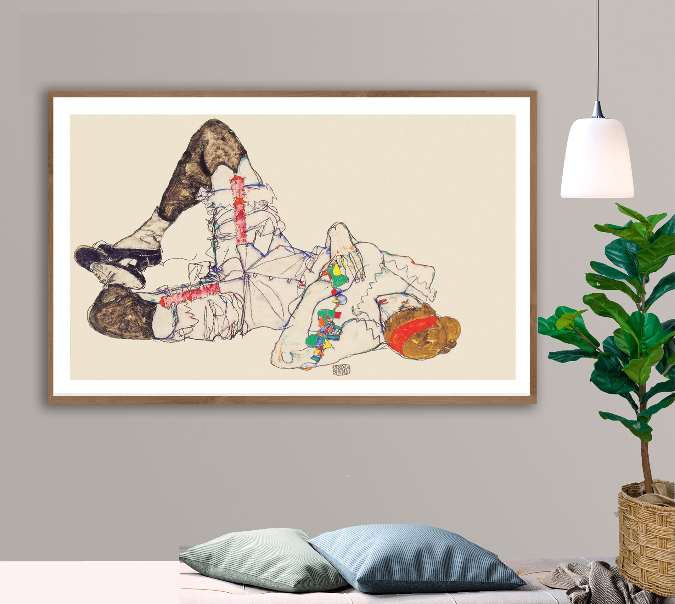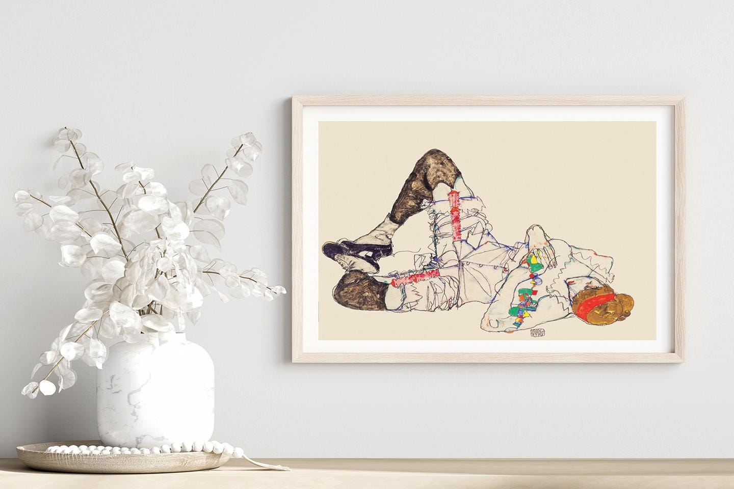 Auf dem Rücken Liegende Frau (Woman Lying on her Back) Egon Schiele Fine Art Print - Figurative Painting Nude Wall Art / Schiele Gift Ideas
