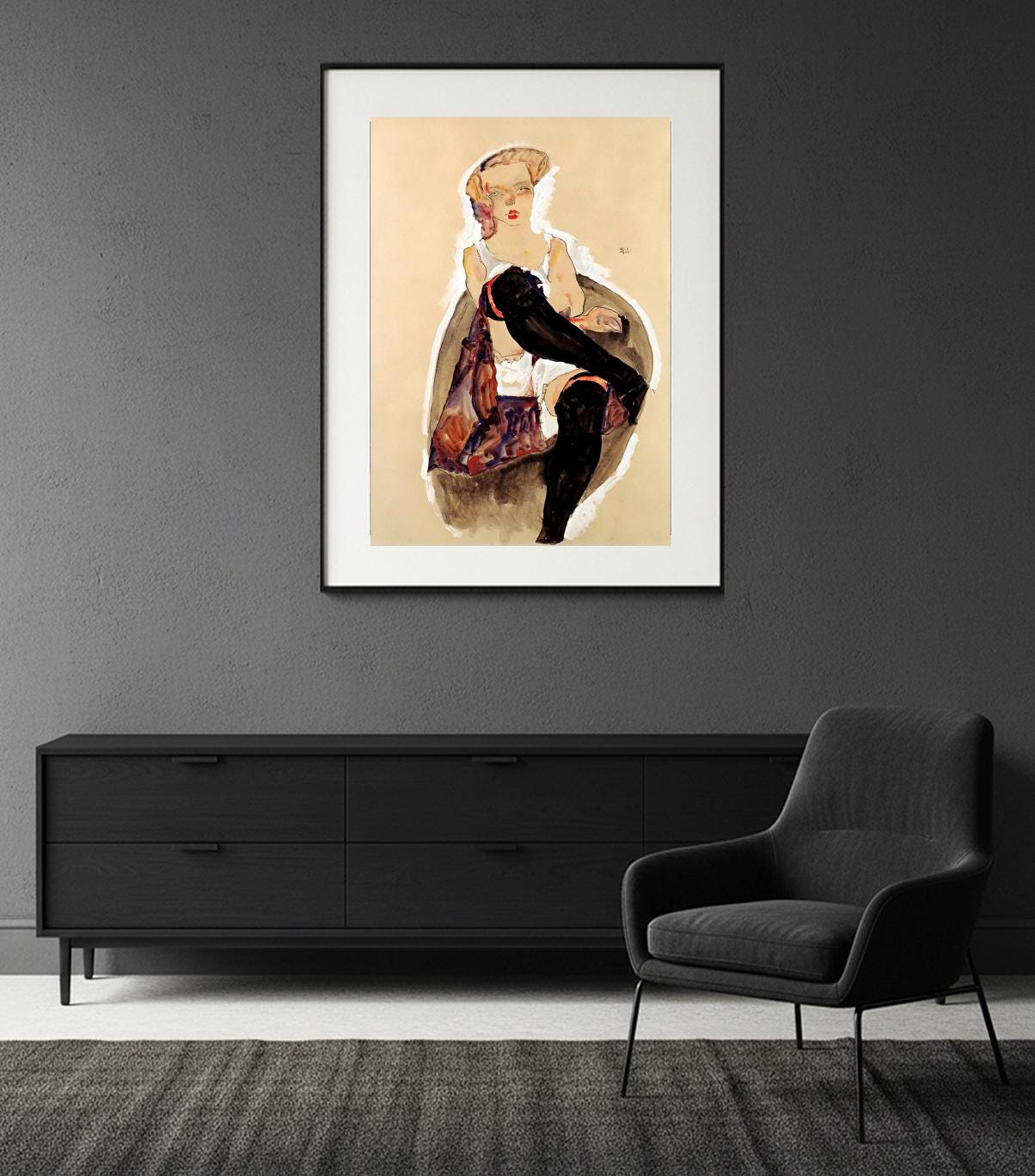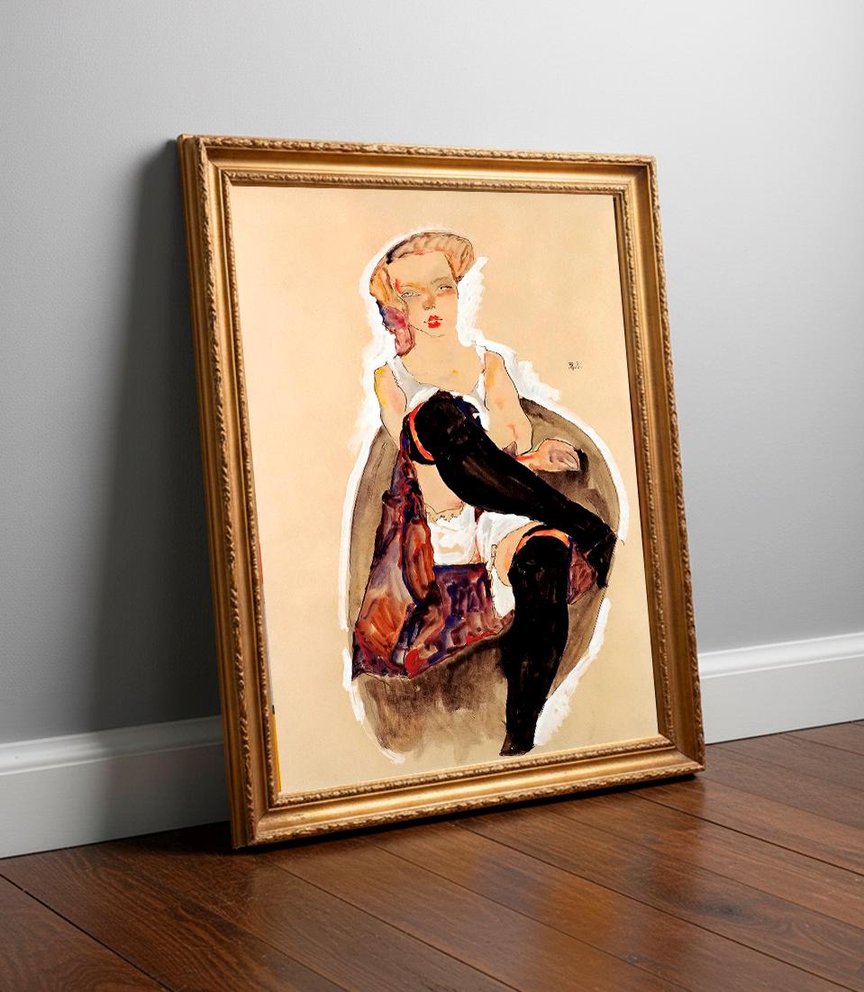Woman with Black Stockings by Egon Schiele by Fine Art Print - Poster Paper or Canvas Print / Gift Idea