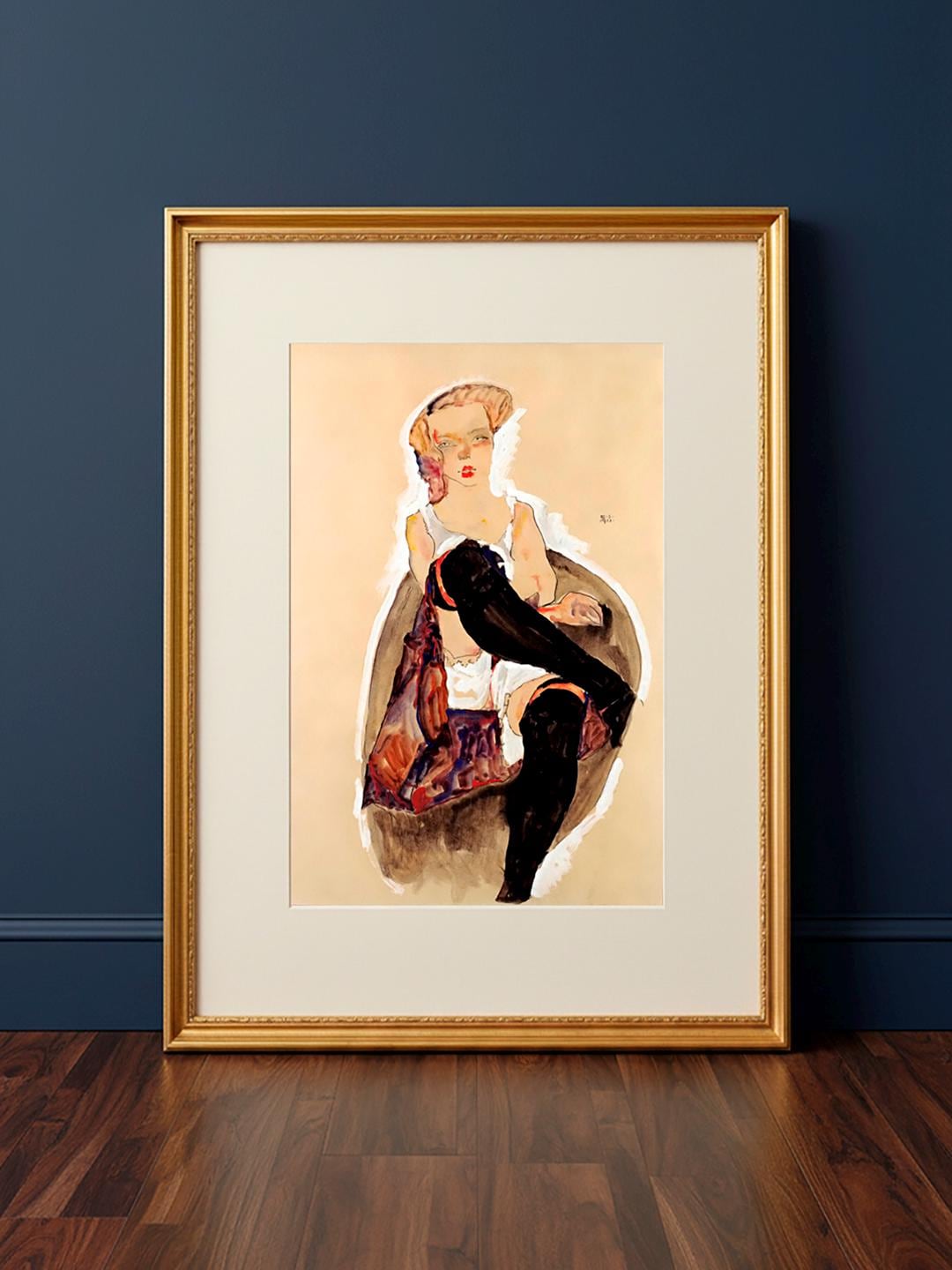 Egon Schiele Print: Woman with Black Stockings, Fine Art Poster