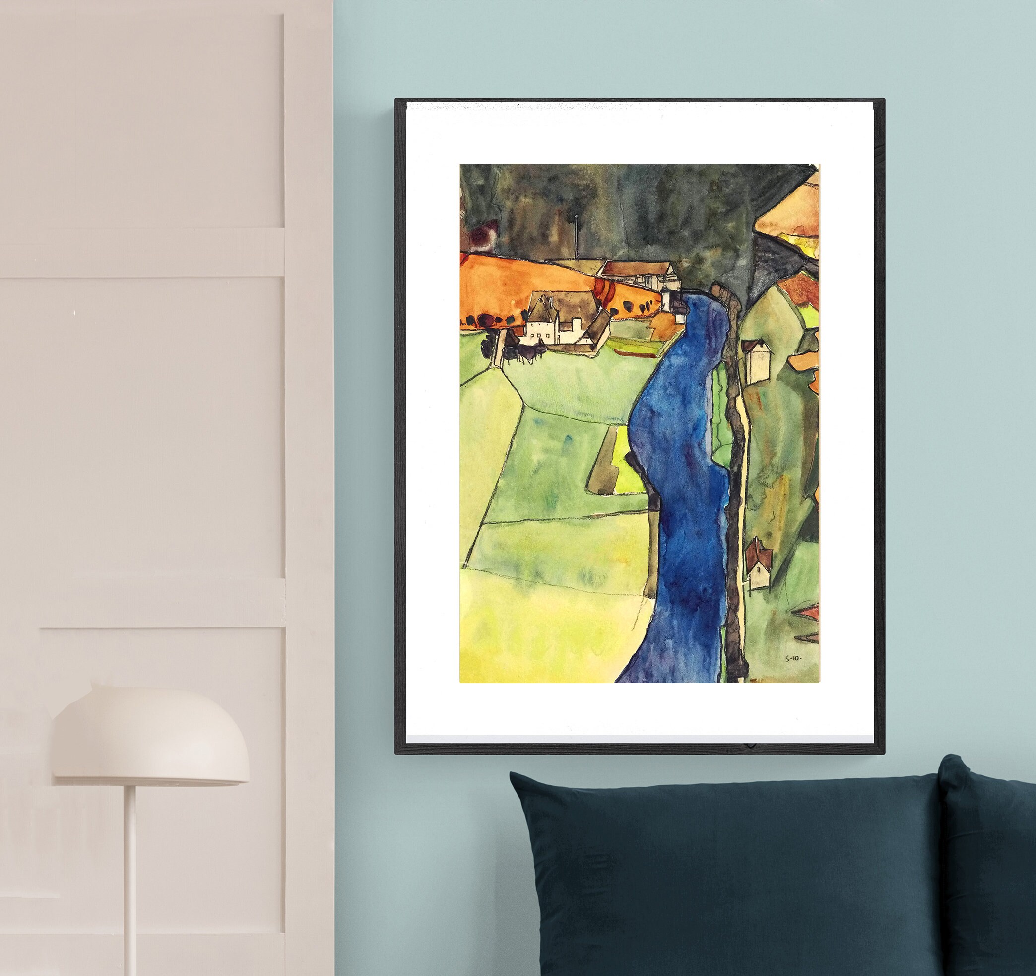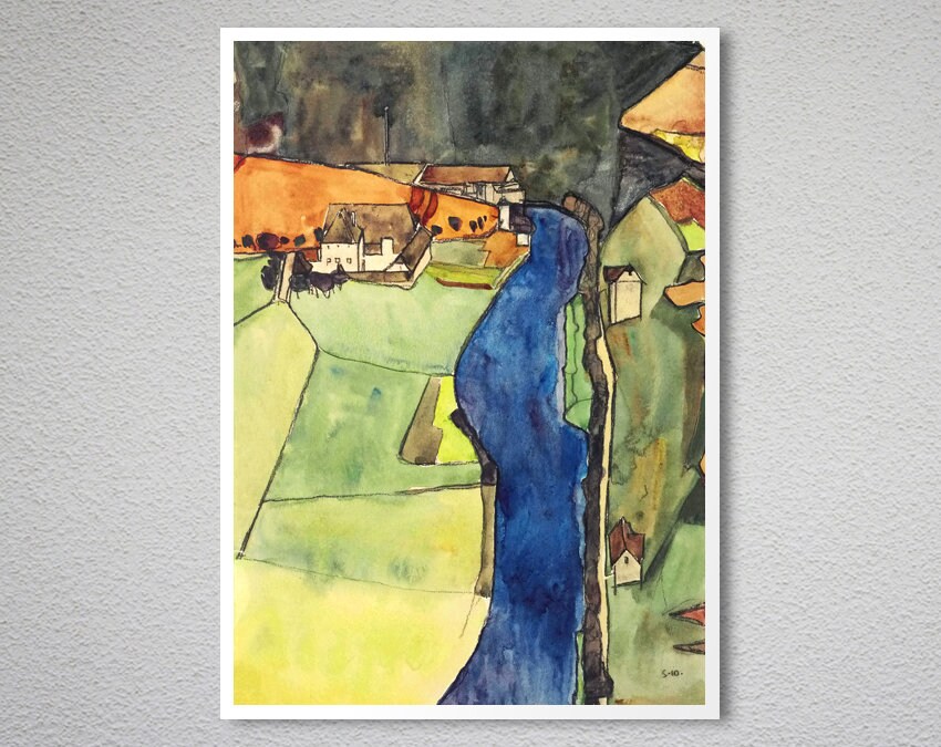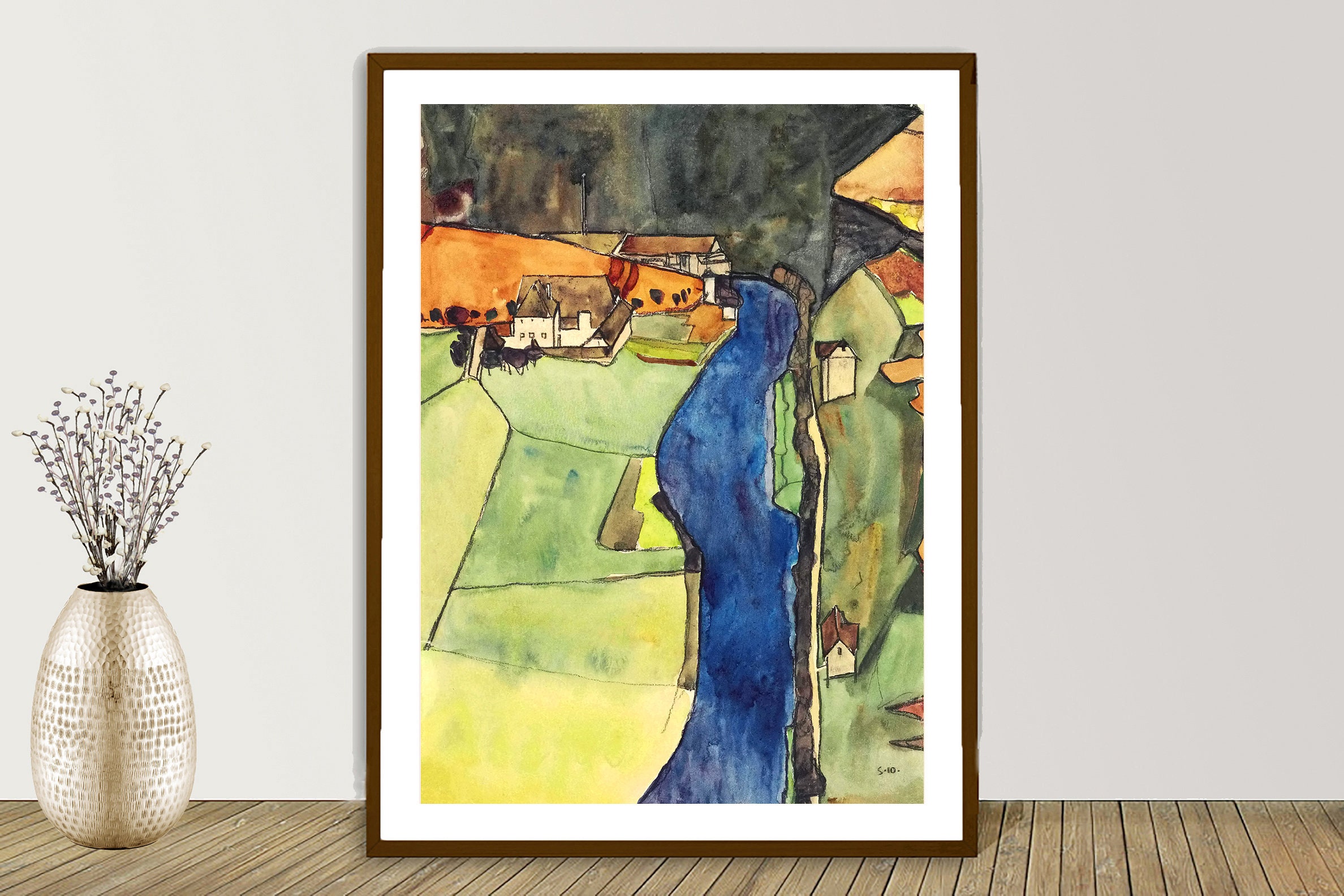 Stadt am blauen Fluss (Krumau) by Egon Schiele Fine Art Print - Poster Paper or Canvas Print