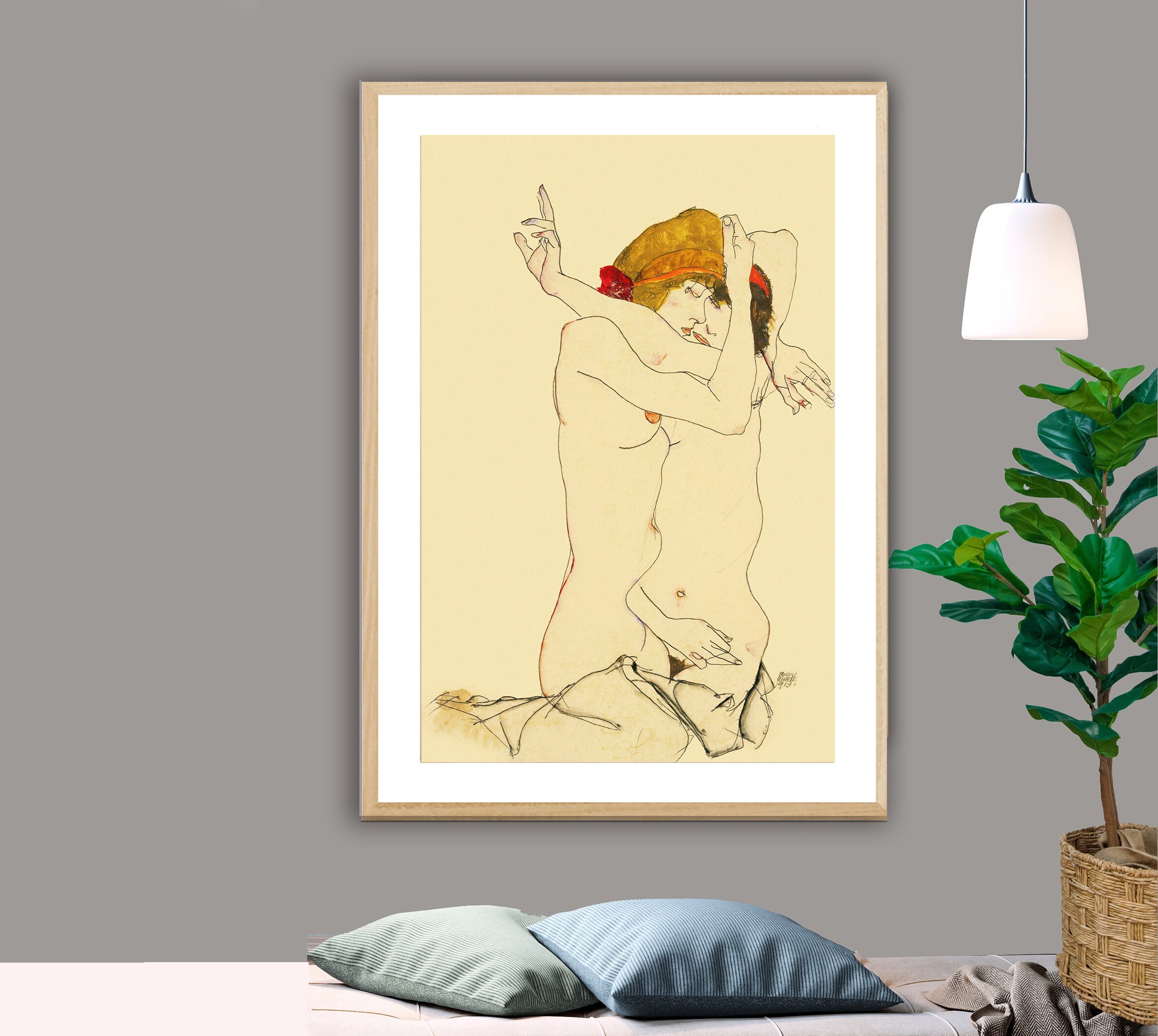 Two Women Embracing by Egon Schiele Fine Art Print - Poster Paper or Canvas Print / Gift Idea / Wall Art