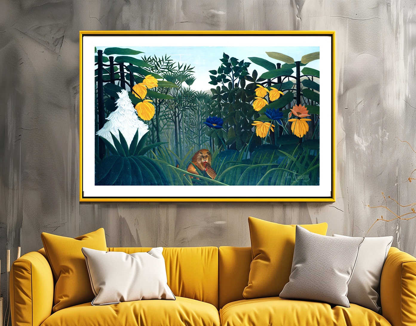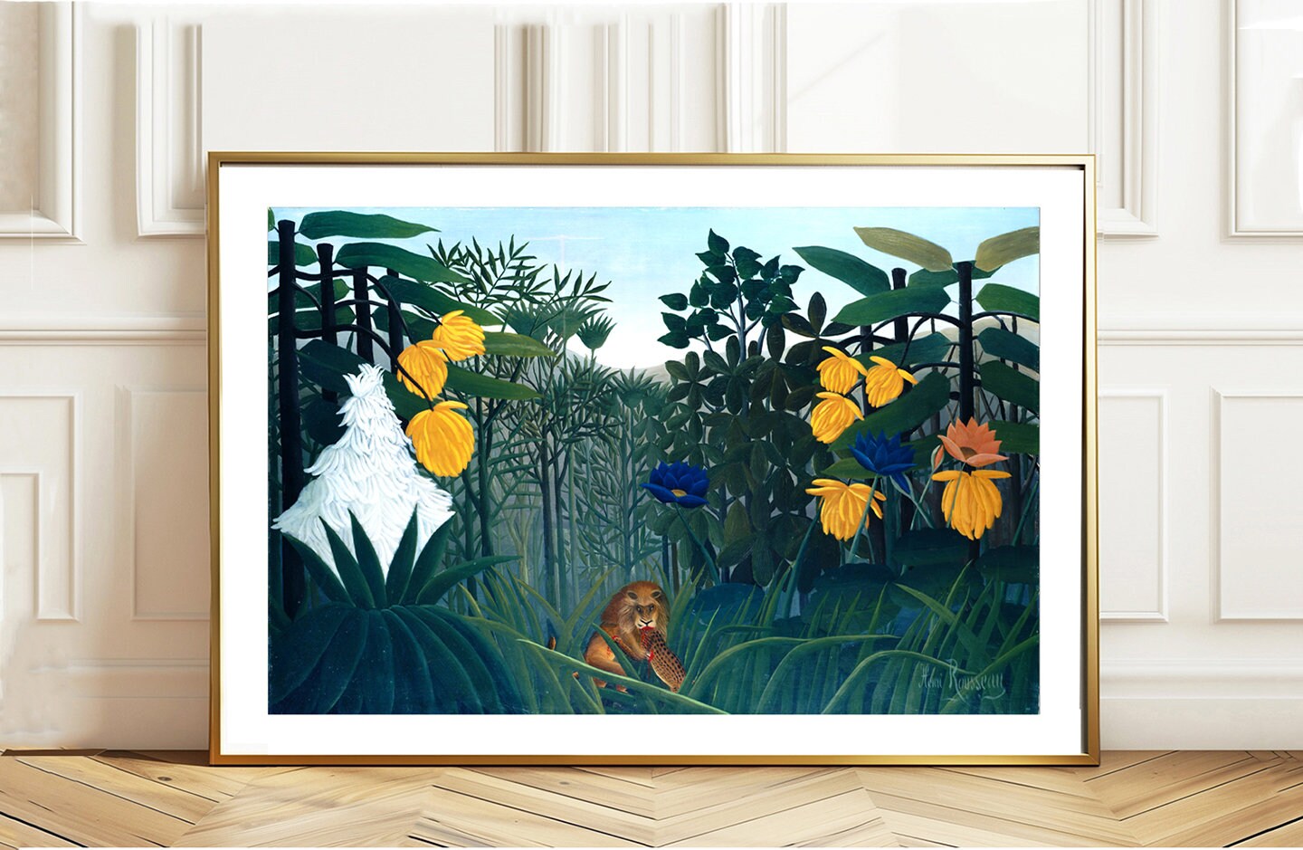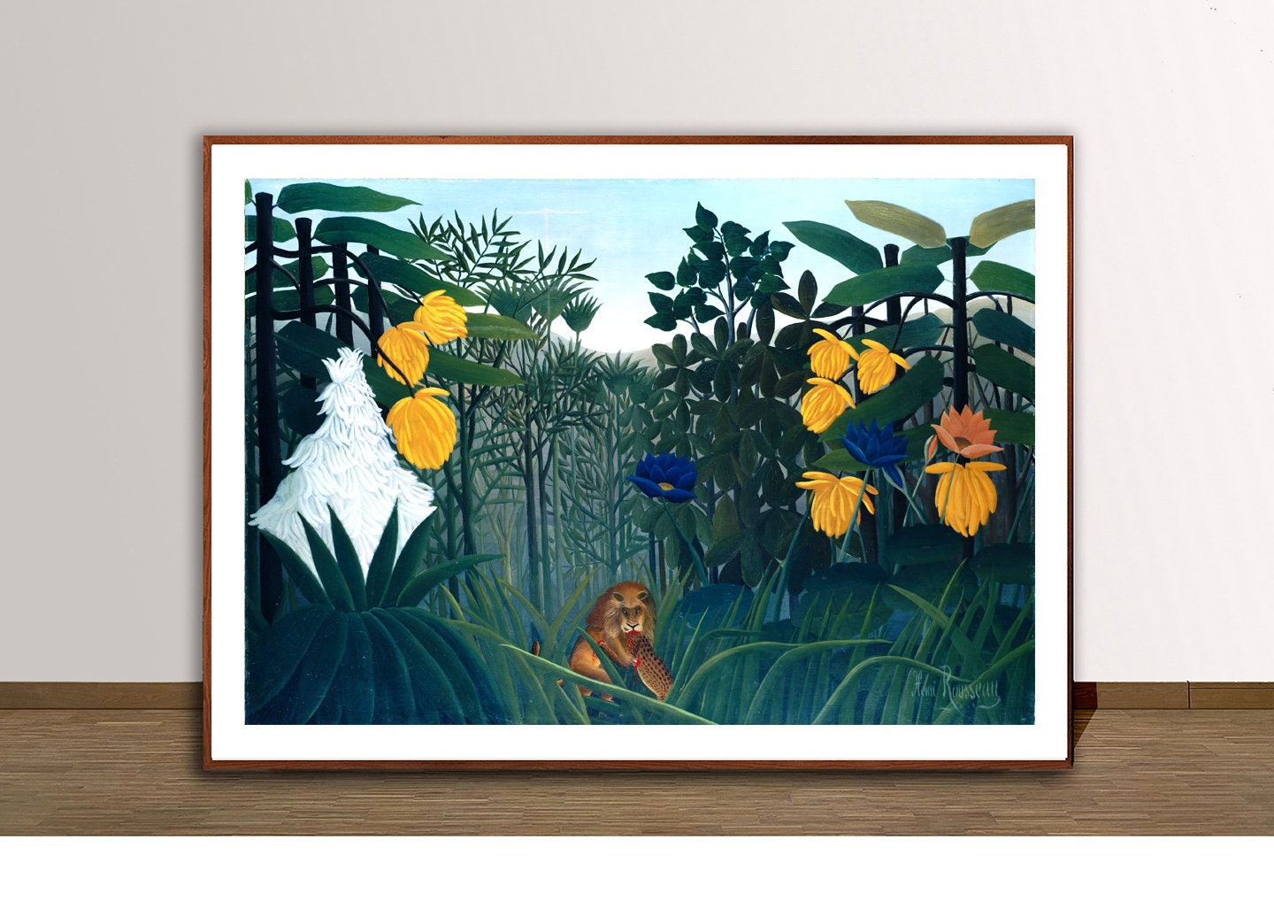 Henri Rousseau Lion Landscape Art Print: Jungle Wall Decor