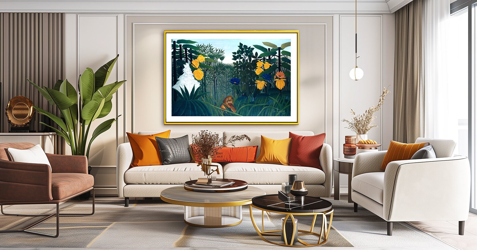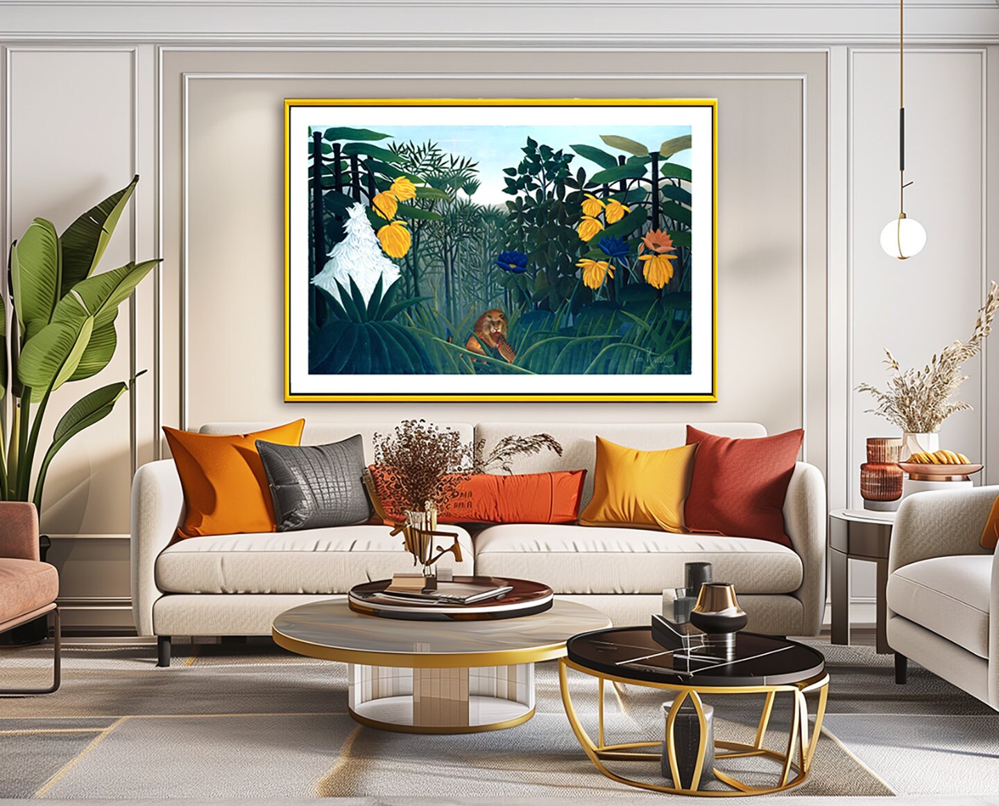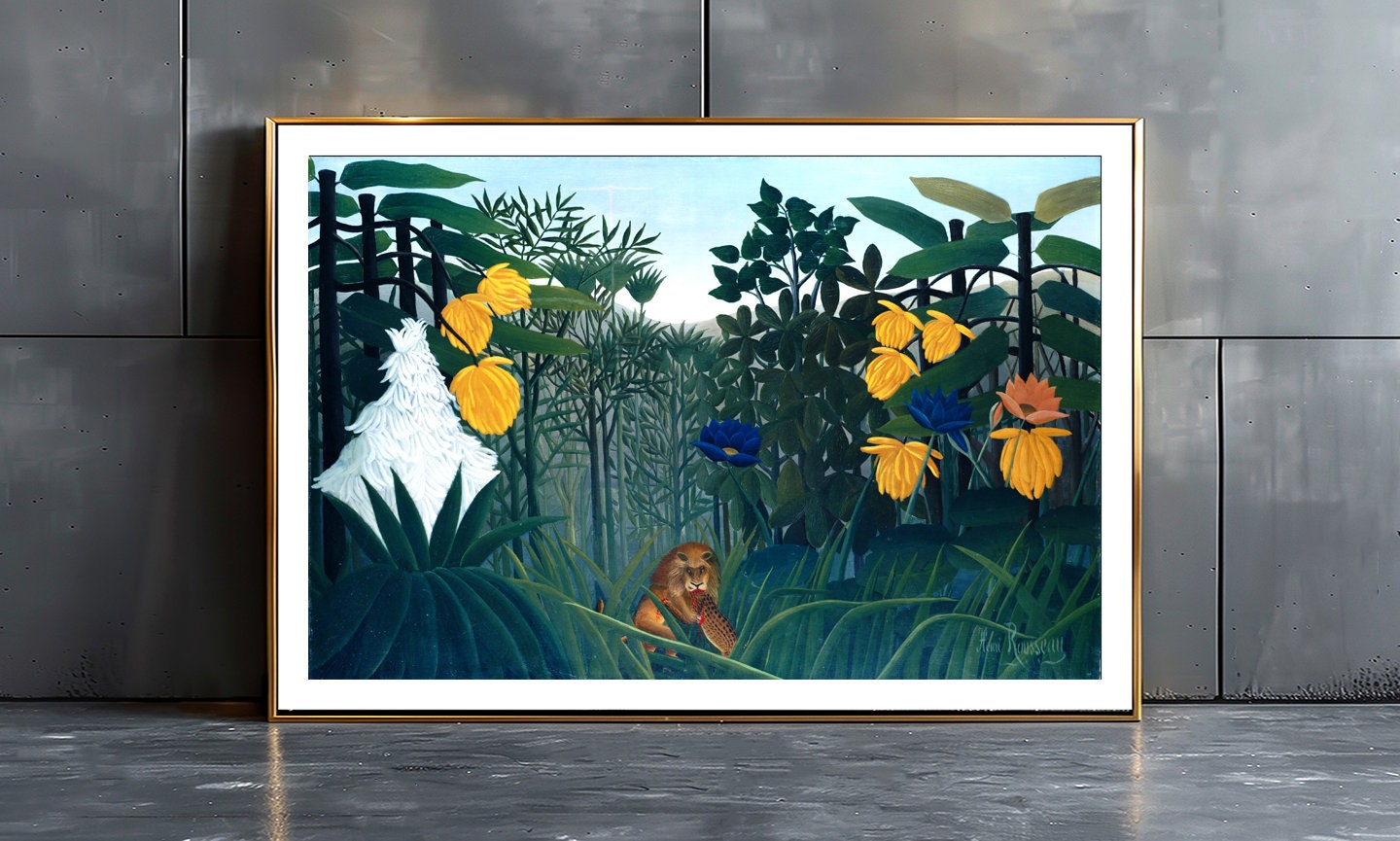 Henri Rousseau Lion Landscape Art Print: Jungle Wall Decor