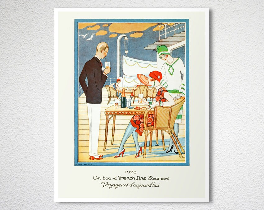 On Board French line Steamers by George Barbier Vintage Poster - Poster Paper or Canvas Print / Wall Decor